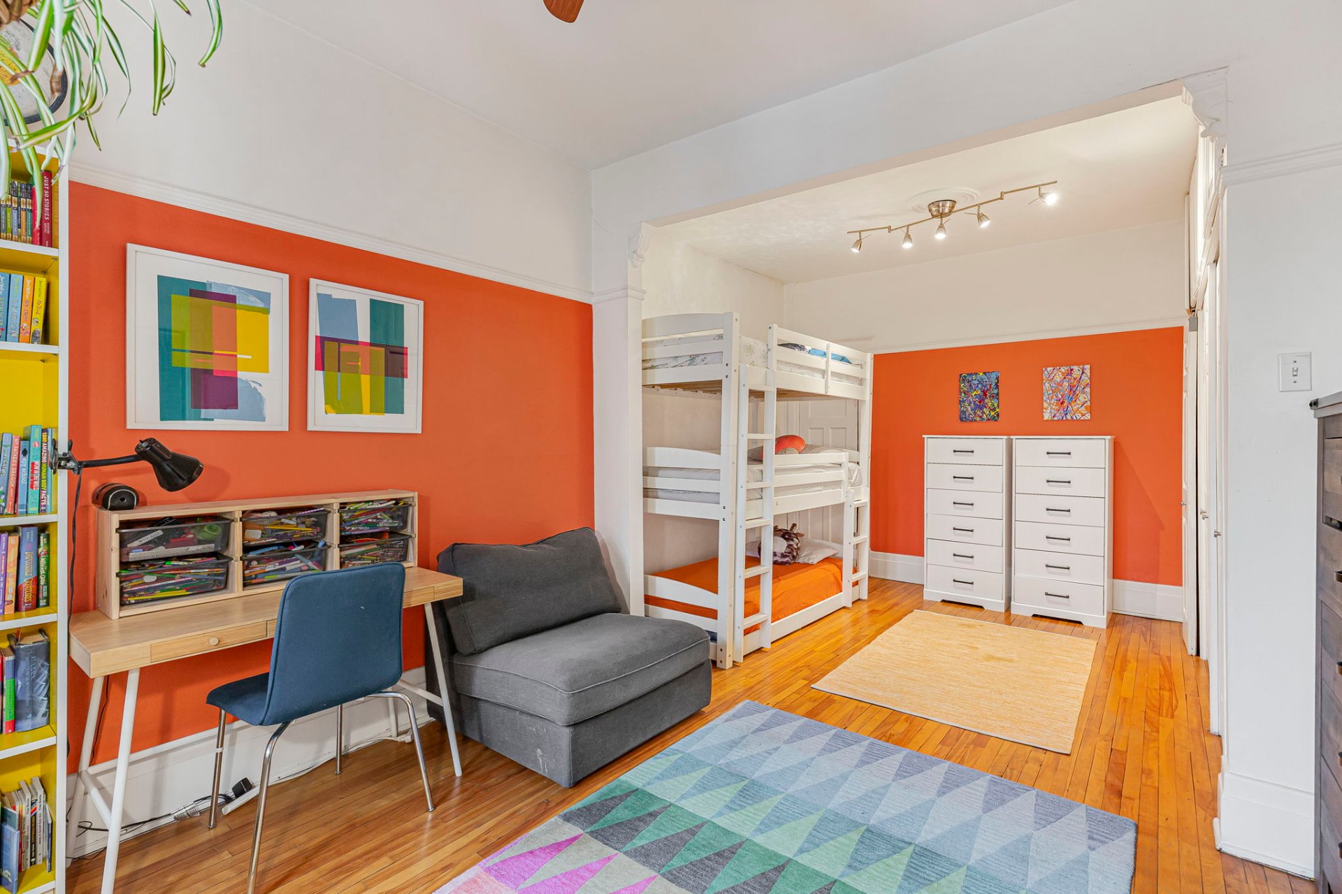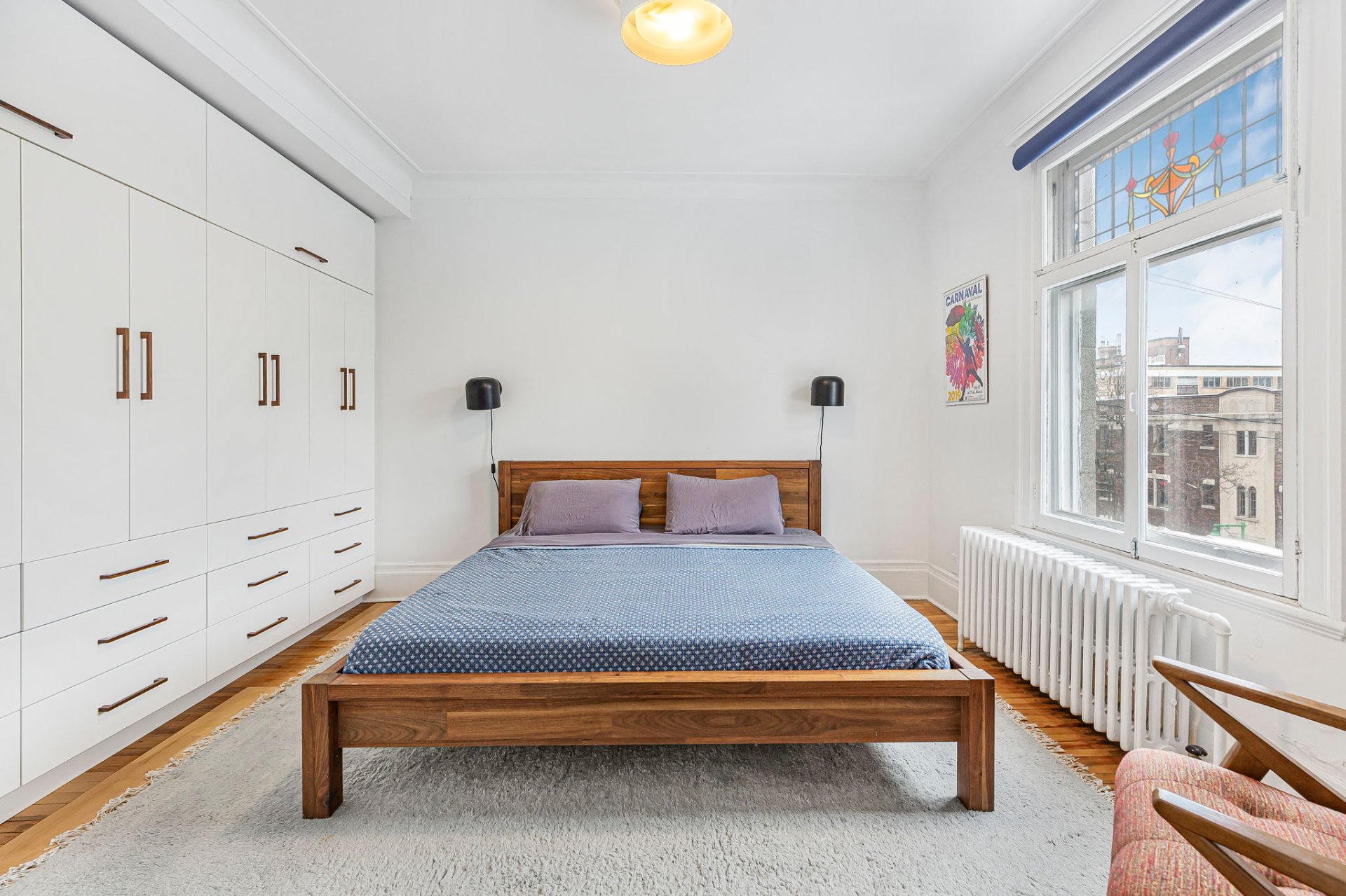 CHAMBRES-Chambre principale avec rangements sur mesure pleine hauteur, conçus pour maximiser l'espace-Deux chambres additionnelles offrant une grande polyvalence (famille, invités ou bureau à domicile)-Salle de bain complète avec tuiles marocaines au sol et tuiles italiennes dans la douche