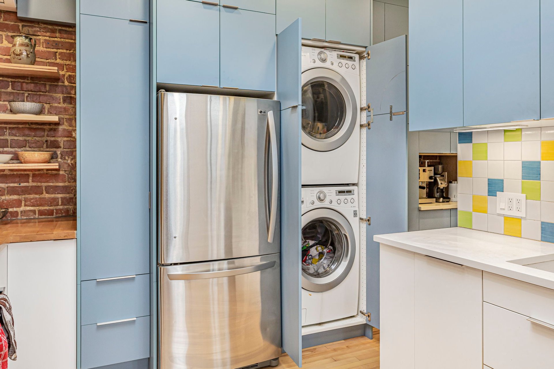 2.Rénové avec amour (2022)Des améliorations réfléchies et soignées à travers tout l'appartement, mariant savoir-faire et influences de design internationales, des tuiles du dosseret inspirées de la côte amalfitaine aux finitions marocaines et italiennes de la salle de bain, le tout réalisé avec intention et souci du détail: