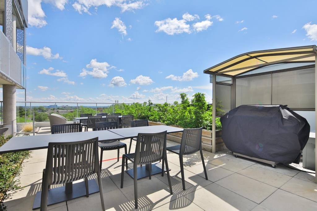 -Immeuble écoresponsable avec services complets:Piscine intérieure, sauna, gym, chalet urbain, terrasse commune avec BBQ, jardin extérieur, espaces de lavage pour voitures et animaux, ainsi qu'un système de gestion des déchets, recyclage et compost réfrigéré.