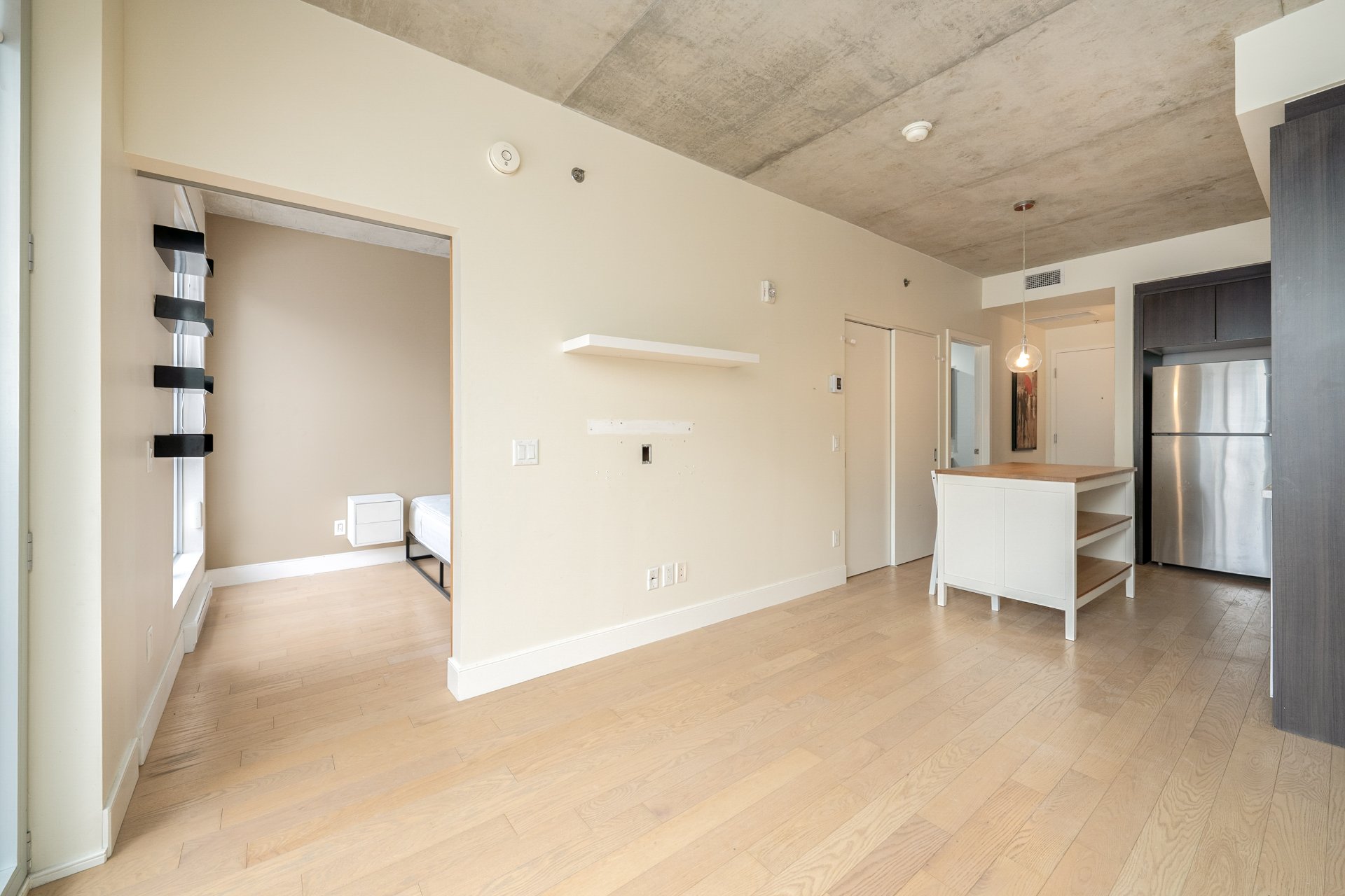 -Aire de vie lumineuse à aire ouverte-Plafond de béton au style industriel-Cuisine fonctionnelle avec îlot et généreux espace de rangement-Balcon privé attenant au salon-Chambre fermée avec walk-in-Salle de bains avec bain et douche vitrée indépendante-Laveuse/sécheuse superposées discrètement intégrées à l'entrée-Échangeur d'air avec chauffage et climatisation-Espace de rangement et espace pour vélo