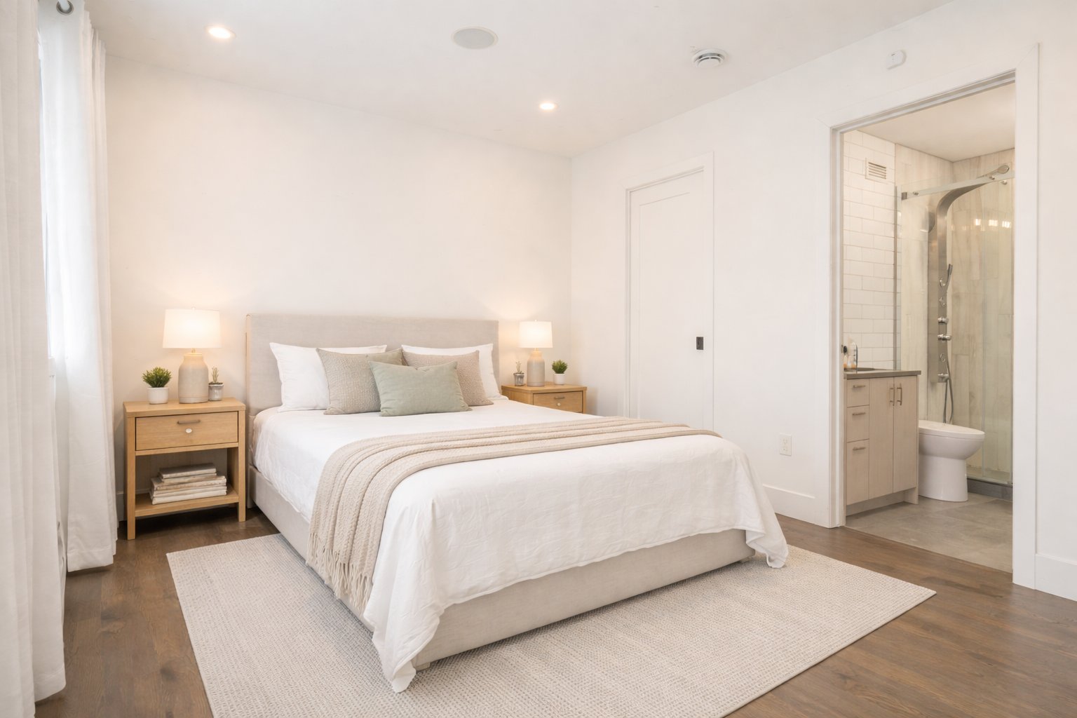 DEUXIÈME ÉTAGE--Trois chambres de bonnes dimensions avec grandes fenêtres--Salle de bain complète avec planchers chauffants--Circulation efficace, idéale pour une vie familiale ou les invités