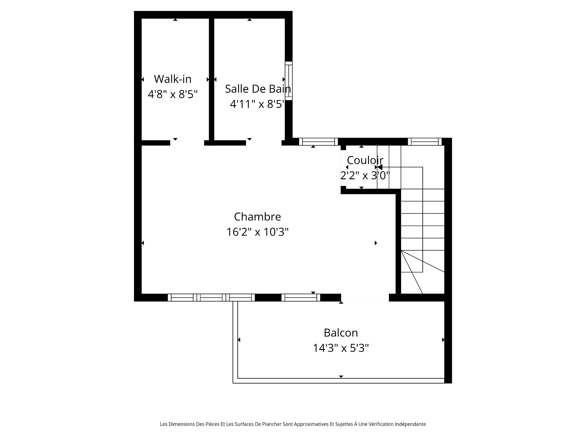 | Chambre à coucher principale | 16.2x10.3 P | Bois | Accès au balcon |