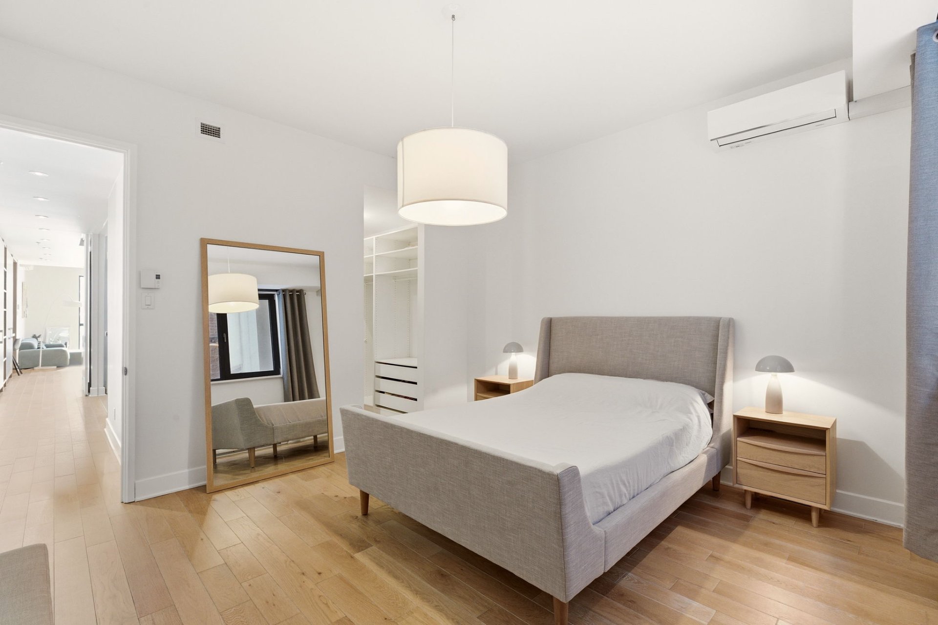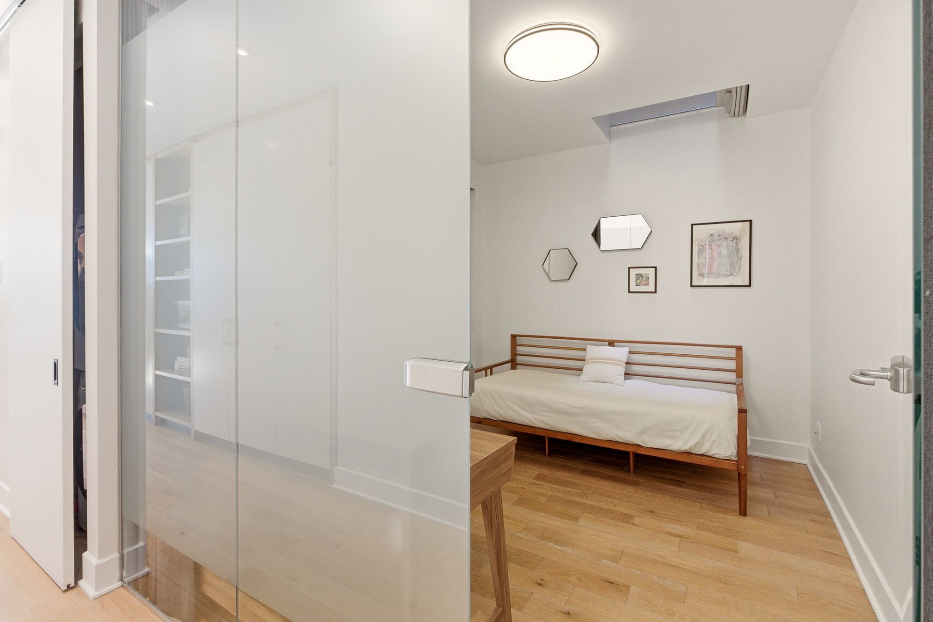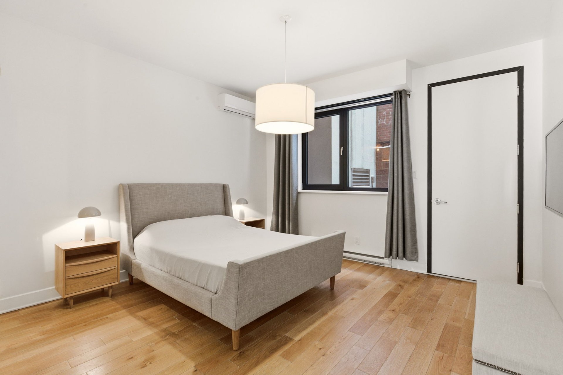 Superbe unité de 1 224 pi² avec hauts plafonds, entrée privée et terrasse sur le toit offrant une vue imprenable sur le fleuve et la ville. Offrant 2 chambres + un bureau et 2 salles de bains, l'espace allie chaleur et design moderne avec planchers de bois, grandes fenêtres et cuisine élégante avec îlot. Insonorisation exceptionnelle et grande intimité. Située au coeur du Vieux-Montréal, à deux pas du bord de l'eau, des cafés et des parcs, avec accès rapide aux autoroutes. Garage inclus avec borne électrique.