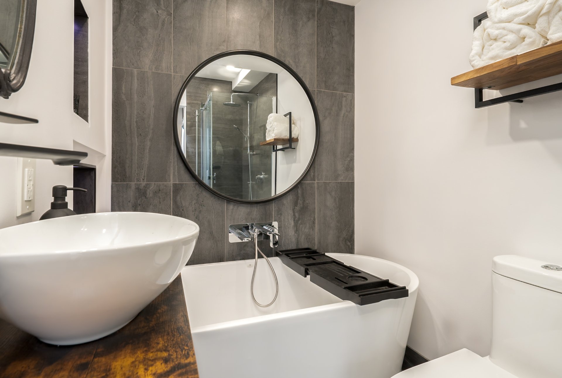 Turnkey pied-à-terre in the heart of Montreal, fully renovated and soundproofed with a loft-hotel feel. Bright and fully furnished, all you need are your personal belongings. Open living space with exposed brick wall, sleek linear kitchen, electric fireplace and two balconies, including a large rear balcony overlooking your parking space. Renovated bathroom with heated floors. Located on the quiet section of Rue des Écores, steps from Parc Molson, Cinema Beaubien, cafés, restaurants and the metro, in a calm and secure environment. Heating, electricity and internet included.