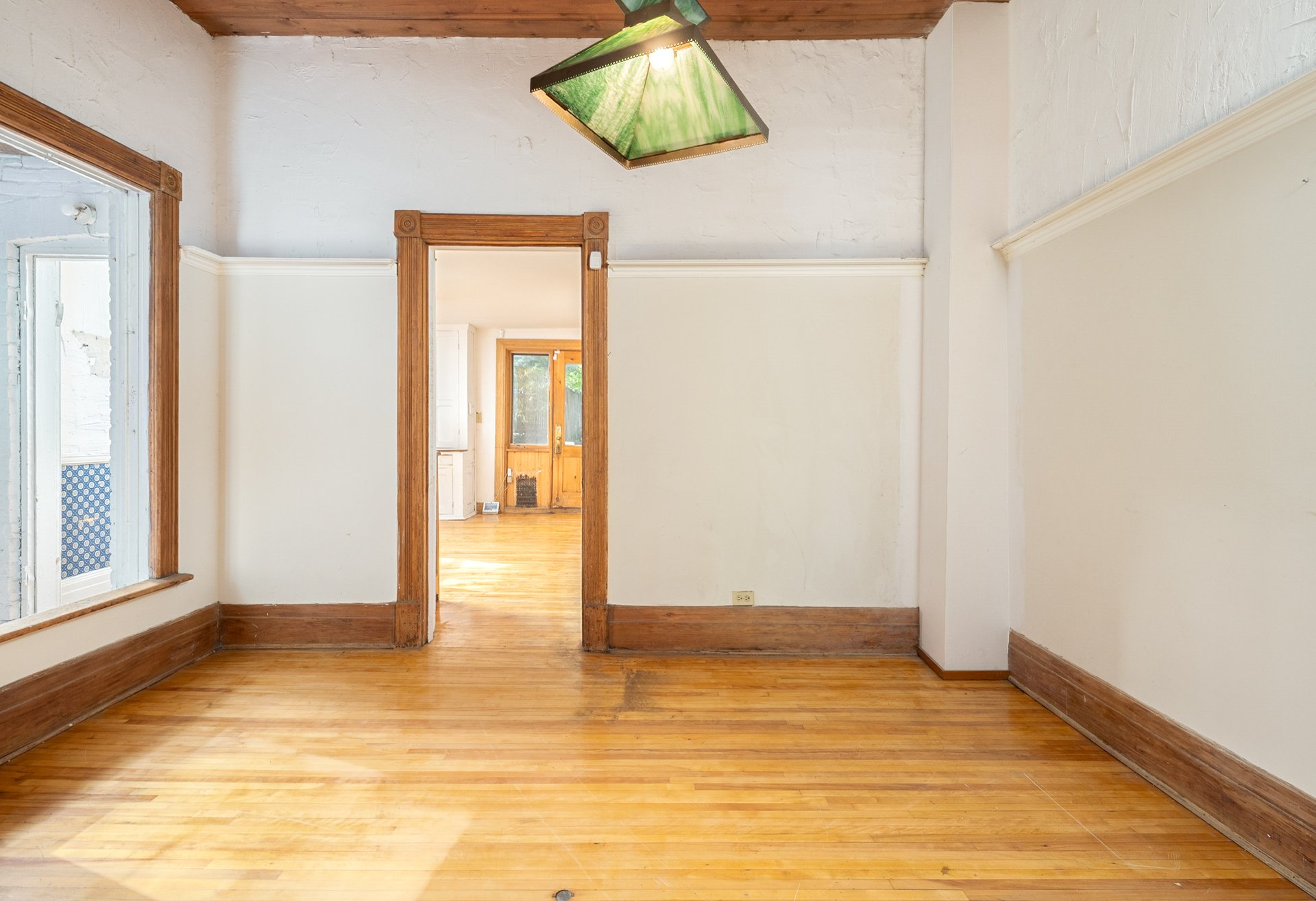 UPPER LEVEL (8' ceilings)-Three bedrooms plus a large family room featuring wood accents -Wood-beam ceilings add warmth and continuity throughout-Balcony with treetop views of Stayner Park-Renovated bathroom with a soaking tub and separate glass shower