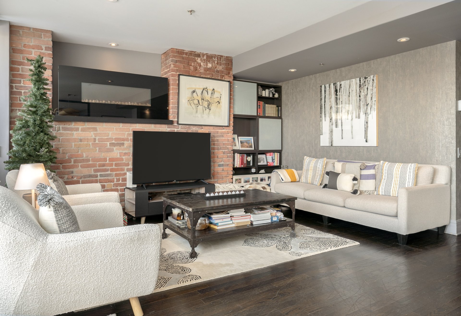 Located on the 5th and top floor, this expansive 1,048 sq.ft. condo offers 2 bedrooms, 2 bathrooms and a rare, oversized private terrace with open views over Old Montreal, an exceptional extension of the living space and the true highlight of the property. The open-concept layout combines clean, contemporary finishes with warm character details, including exposed brick. Ideally positioned in the heart of Old Montreal, steps from the waterfront, Old Port promenade, restaurants, cafés and Champ-de-Mars metro.