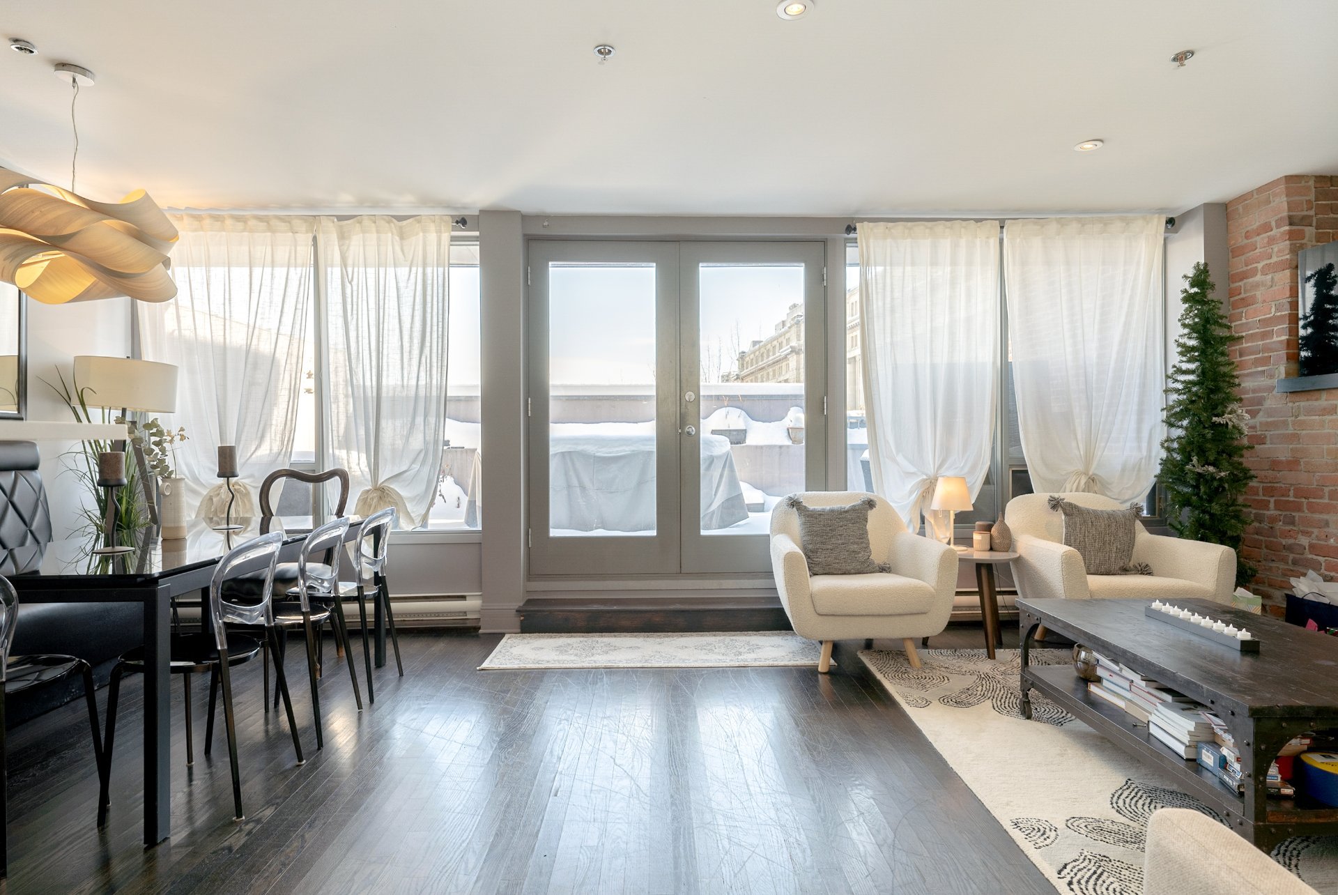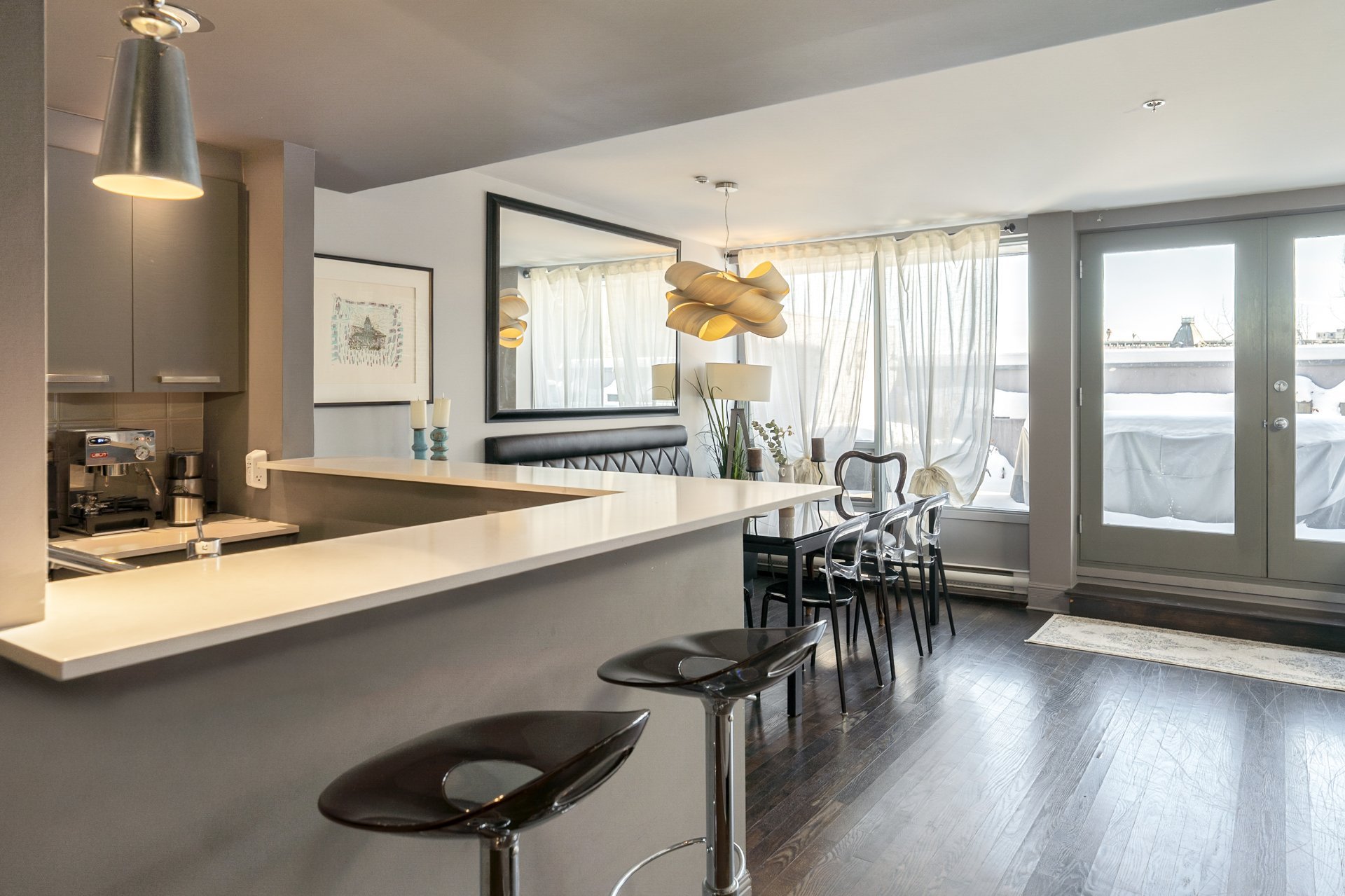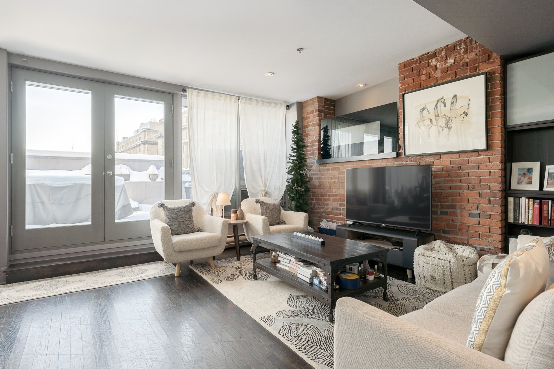 OUR TOP 3 FEATURES-Exceptional private terrace: Rare, oversized outdoor space with open views over Old Montreal, offering ample room for dining, lounging and entertaining, an extension of the living area.