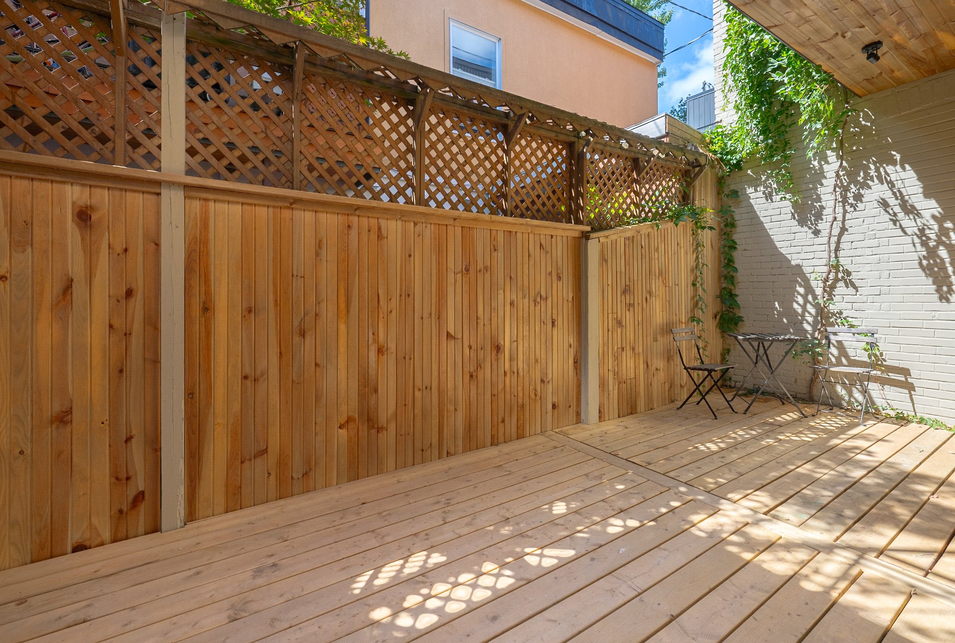 Private rear access leads directly to the alley, and exterior improvements include pressure-treated deck, natural gas hookup for BBQ, painted brick, and refreshed façade with repointing and acid wash.