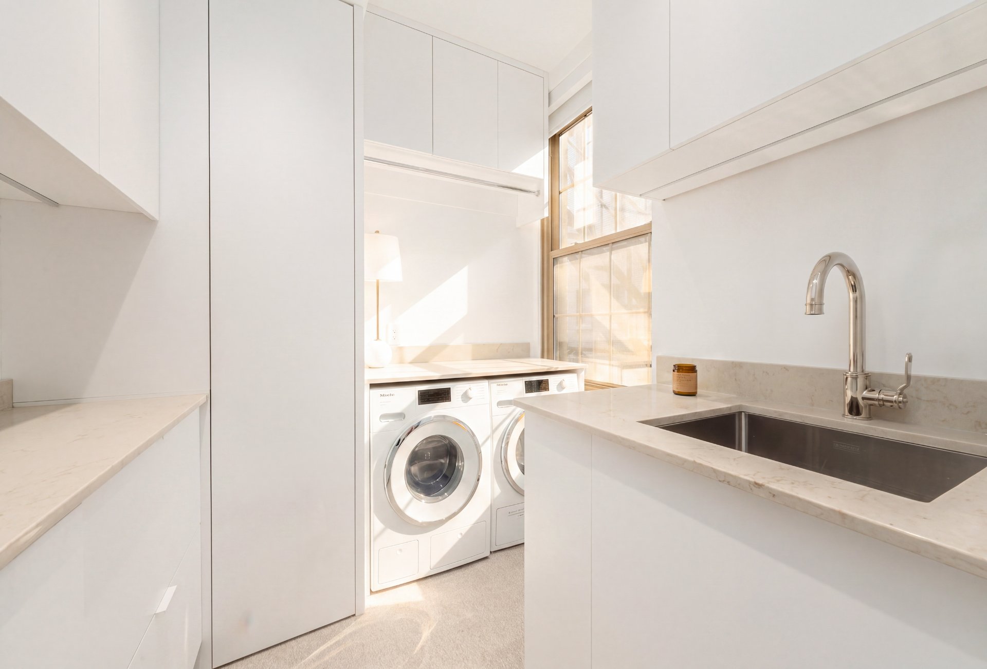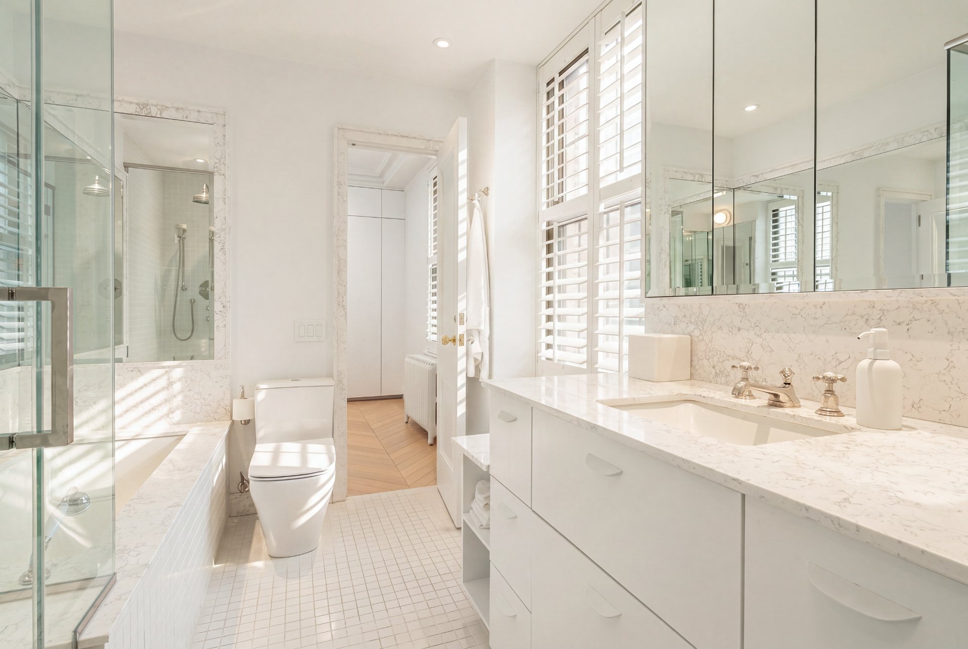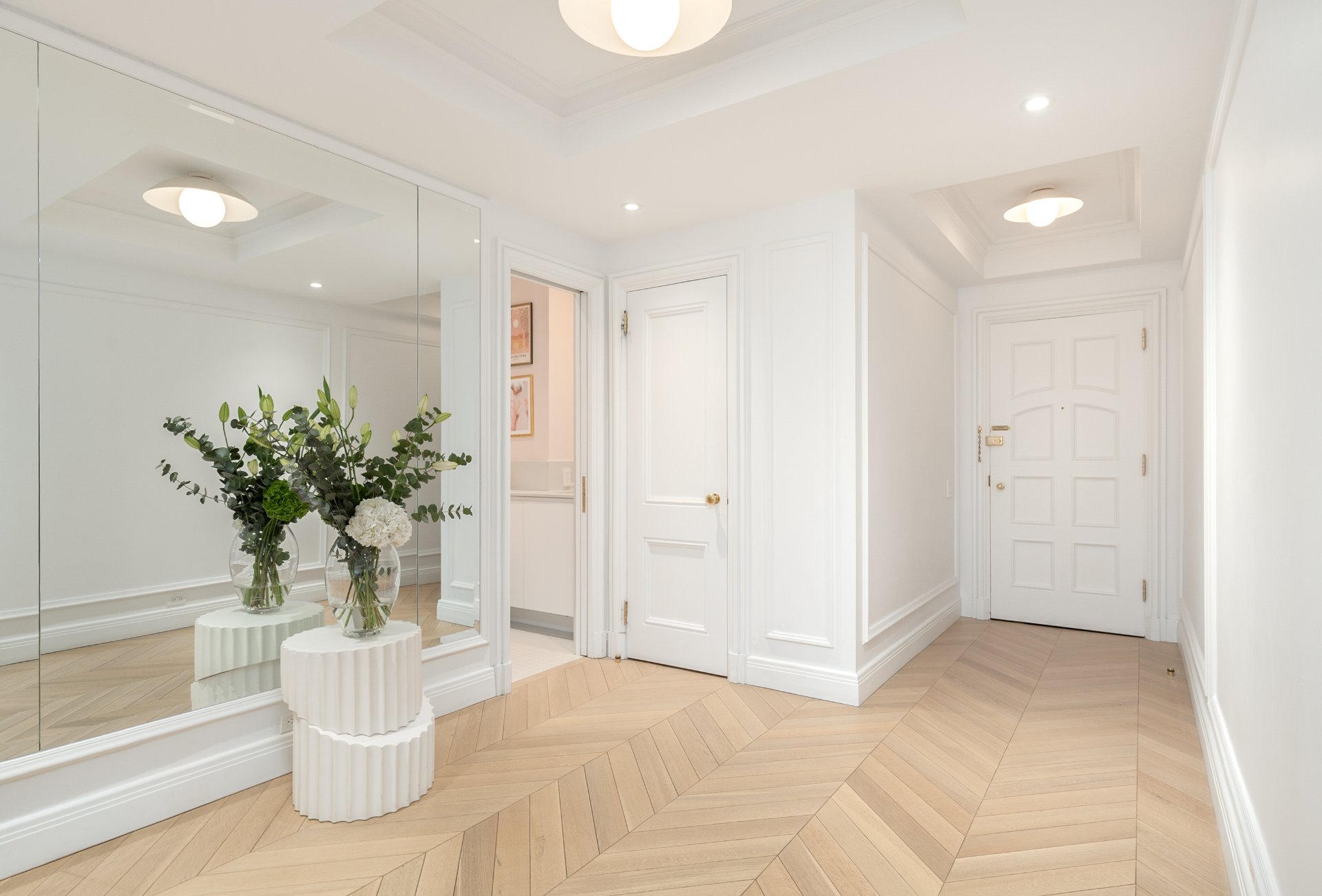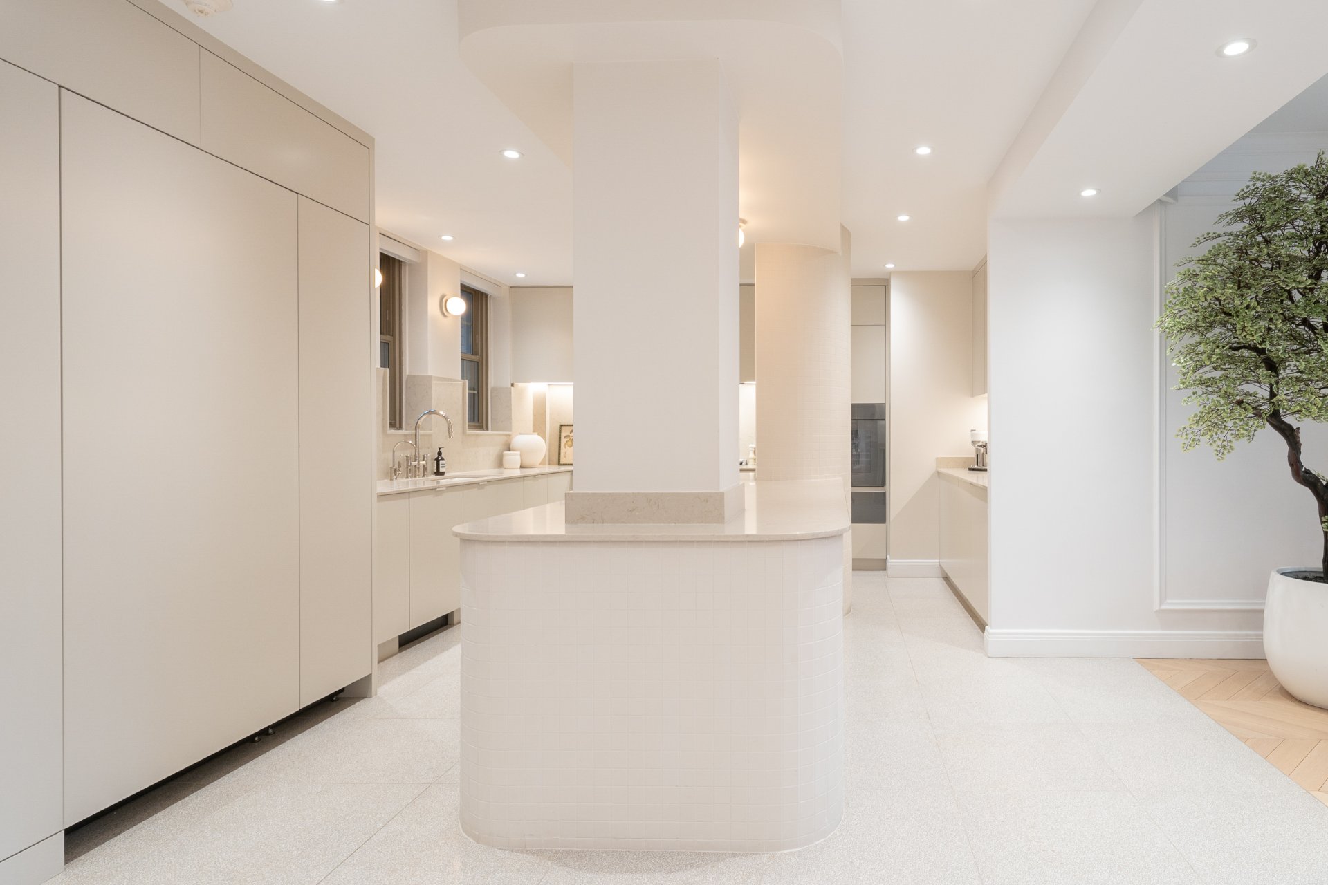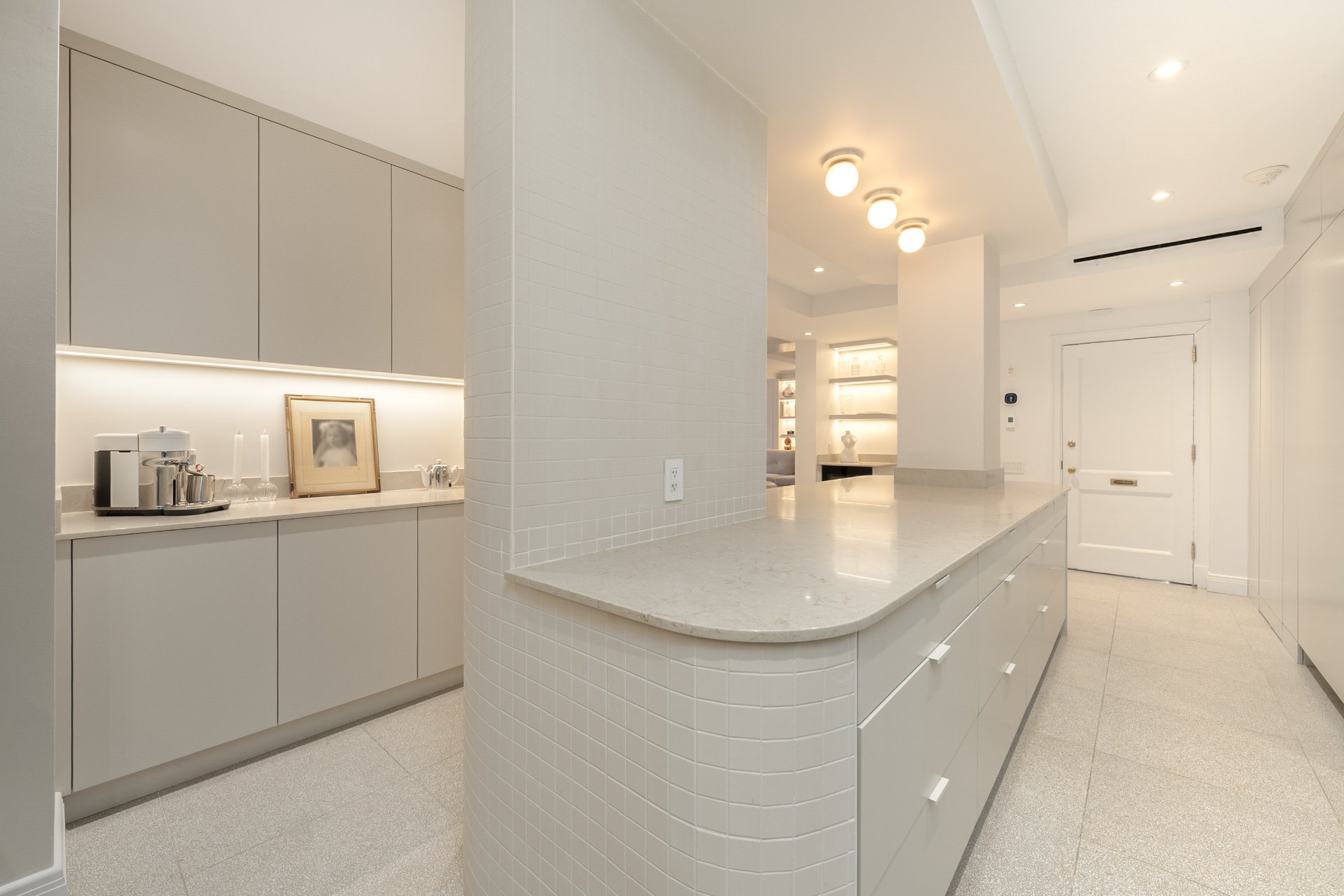 CONDO HIGHLIGHTS-High ceilings and generous room proportions-Large reconfigured layout optimizing every square foot-Expansive living room with preserved fireplace mantel-Open dining area designed for entertaining-Custom kitchen with central island and integrated Miele appliances-White oak herringbone flooring throughout main living spaces-Primary bedroom with walk-in and built-in storage-Second bedroom with custom storage-Main bathroom with quartz finishes, glass shower and bathtub-Powder room with distinctive design and refined materials-Separate laundry room with built-ins and workspace-Extensive custom cabinetry and storage throughout-Integrated sound system across the unit-Completely redone air conditioning system-Timeless architectural details blended with modern interventions-Parking in garage #1A3 (common portion for restricted use)