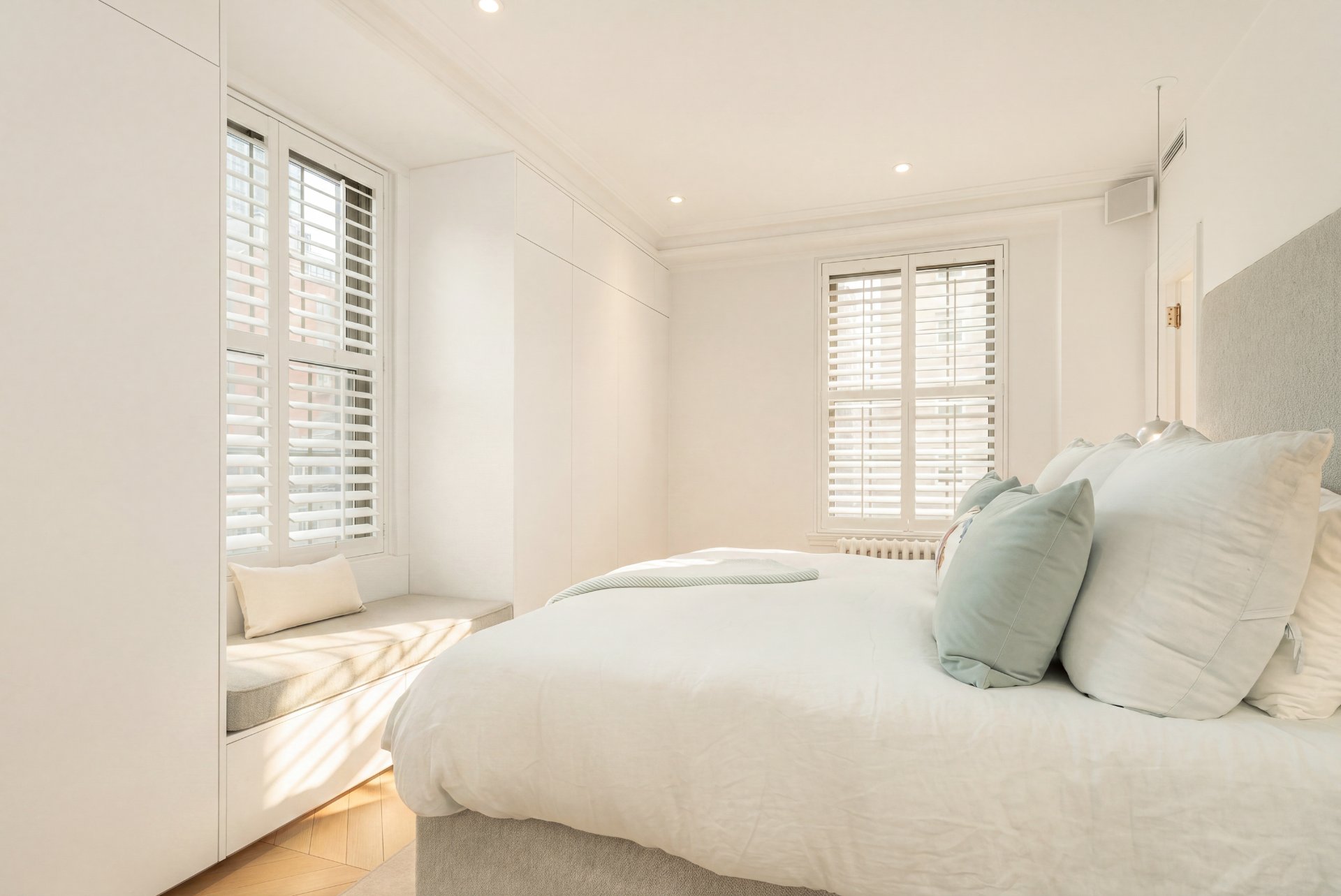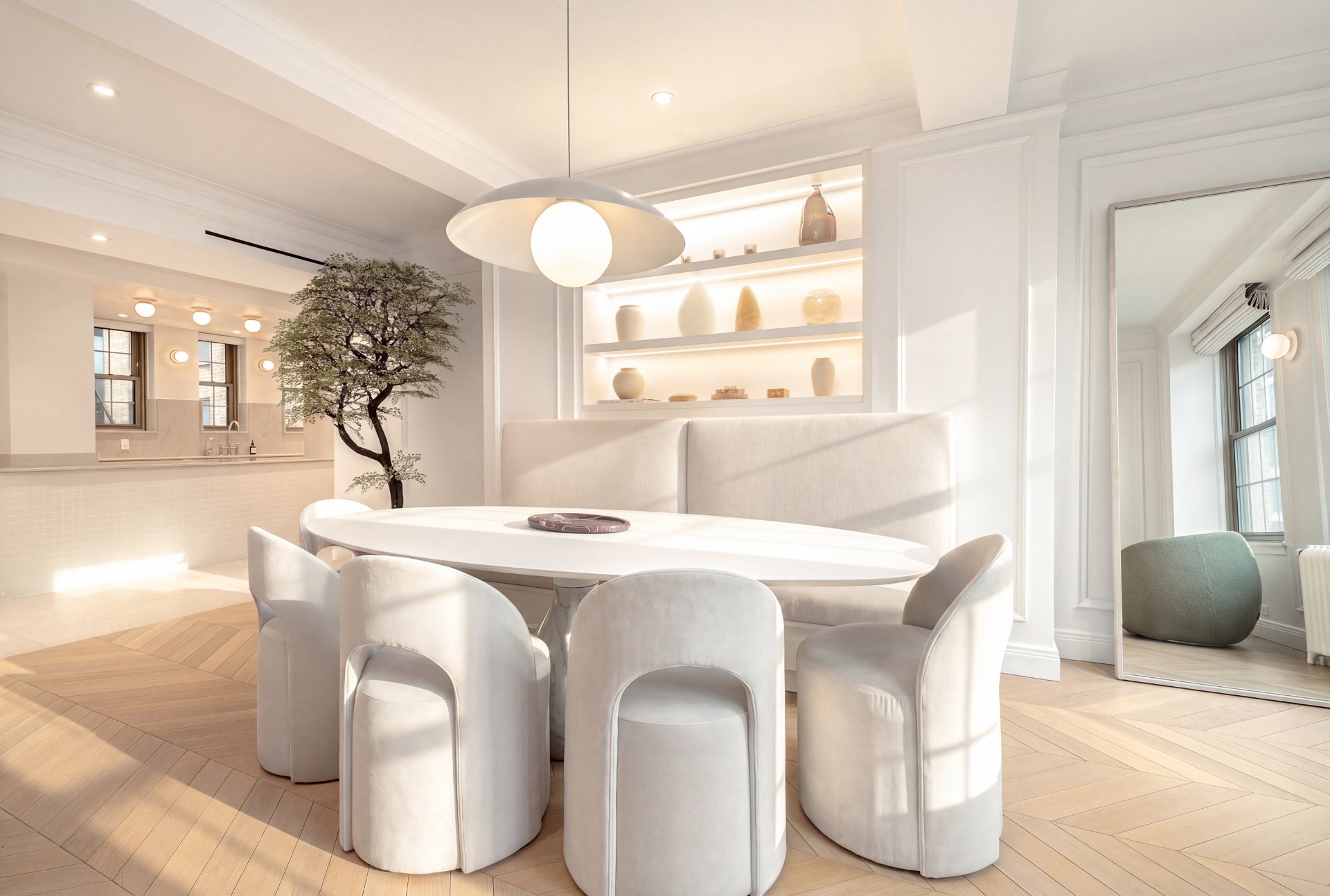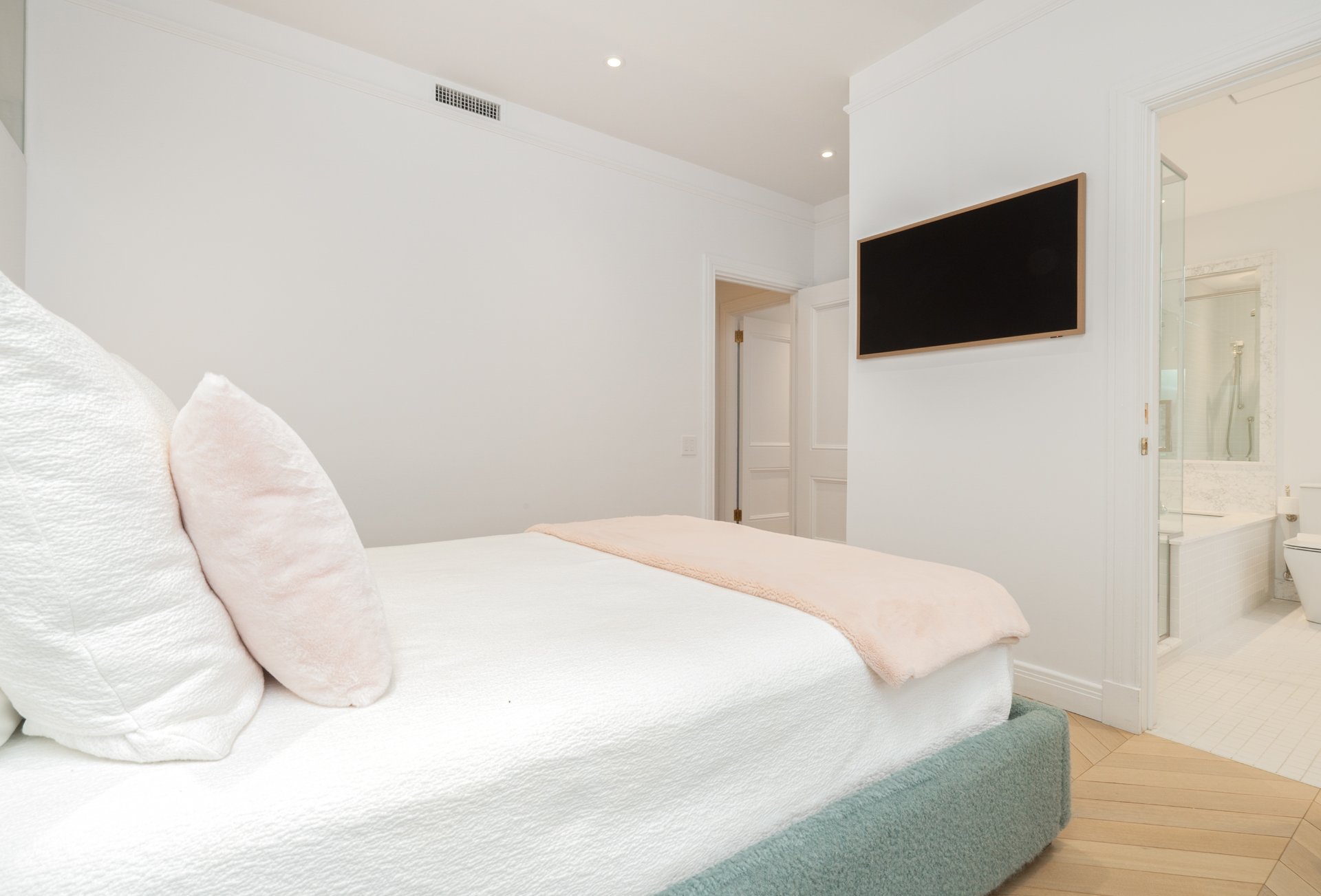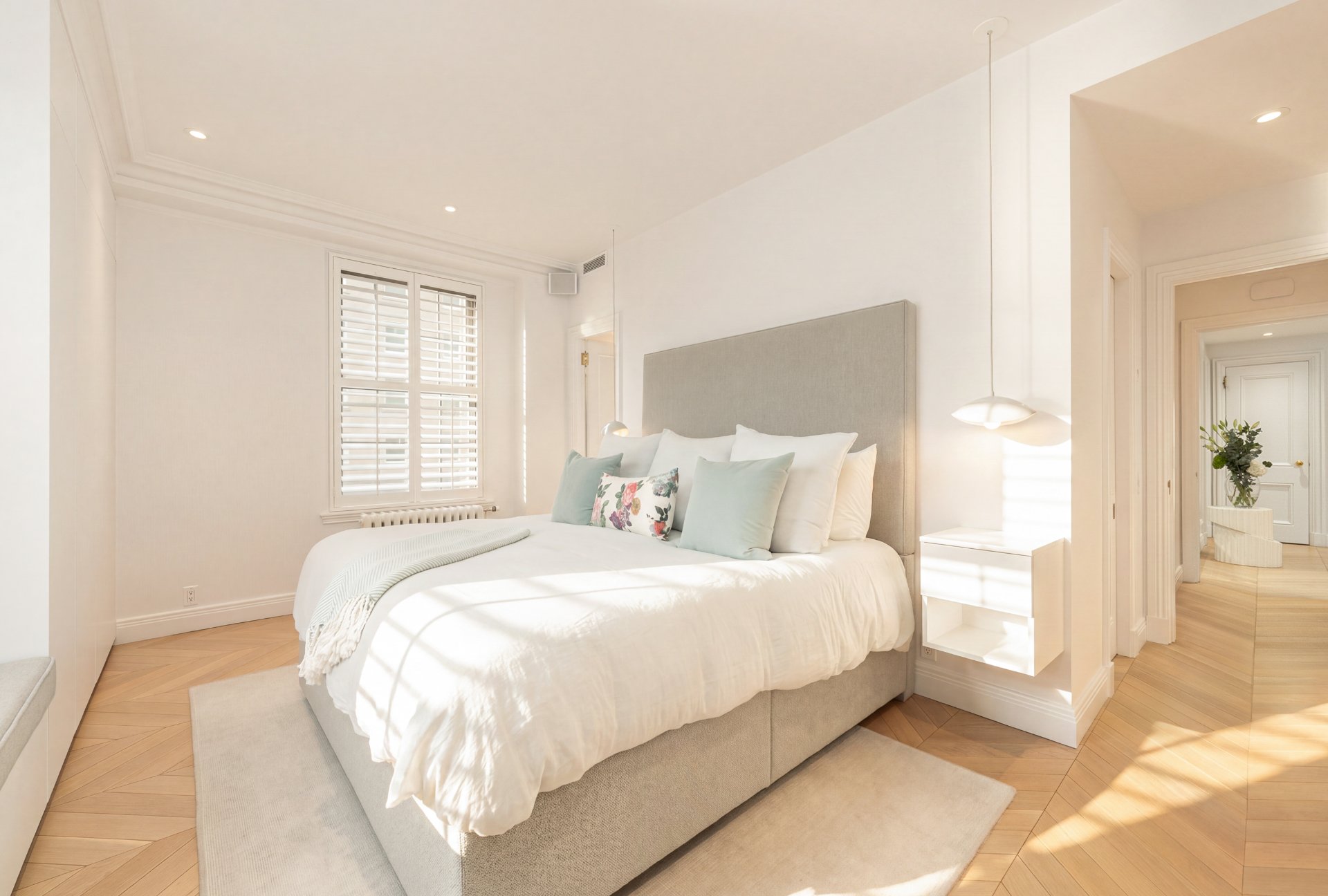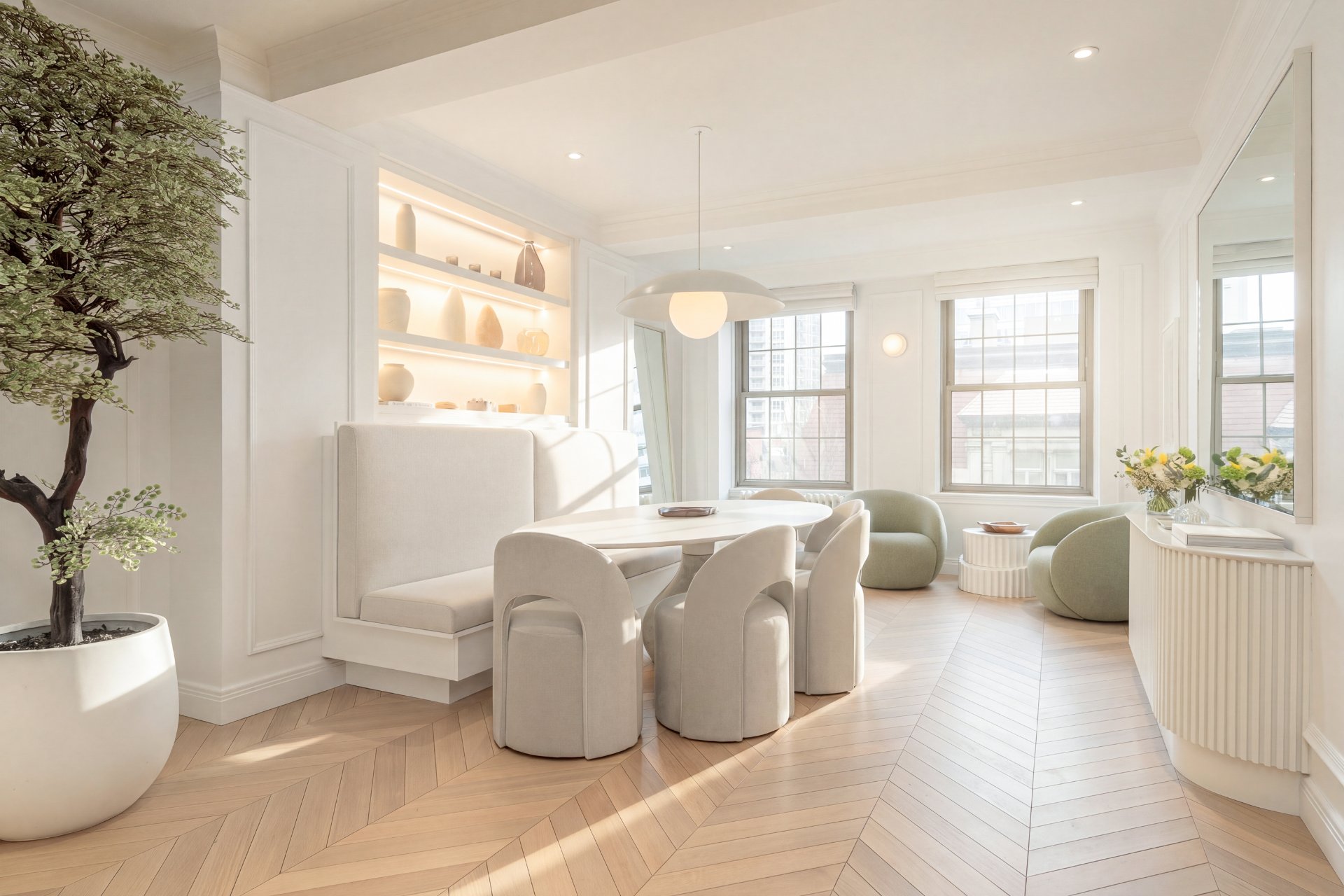Refined residence at The Acadia, where 1925 architecture meets a full-scale redesign with elevated contemporary finishes. This reconfigured unit offers generous volumes and seamless living spaces, complemented by the building's full-service lifestyle with 24/7 doorman and concierge and a peaceful landscaped courtyard. White oak herringbone floors, curated lighting and custom built-ins define the interior, while the kitchen anchors the home with its sculptural island and integrated Miele appliances. Two well-appointed bedrooms, refined bathrooms and modernized systems complete this turnkey offering in a prestigious Golden Square Mile address.