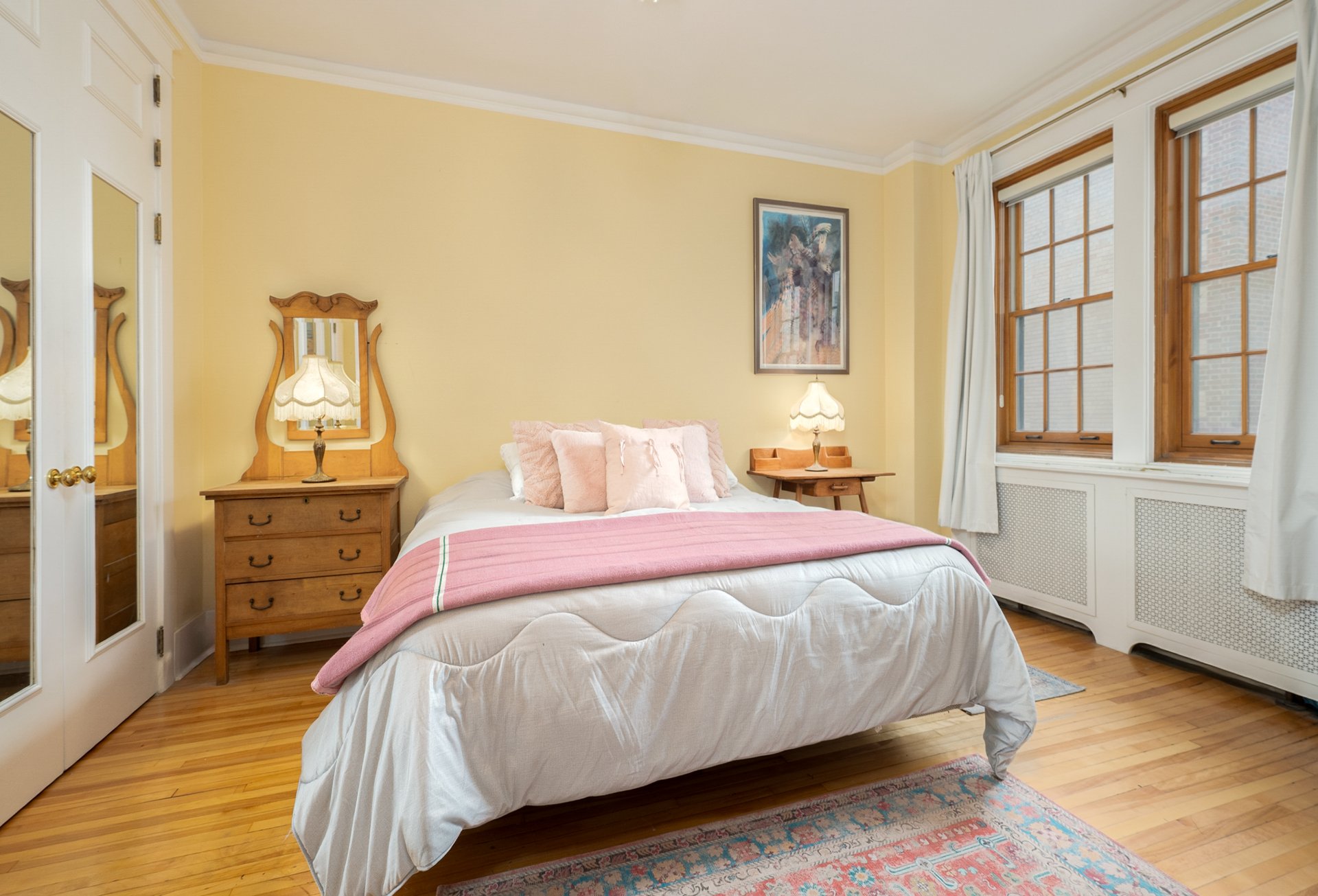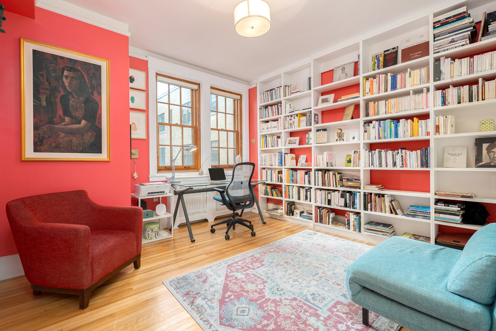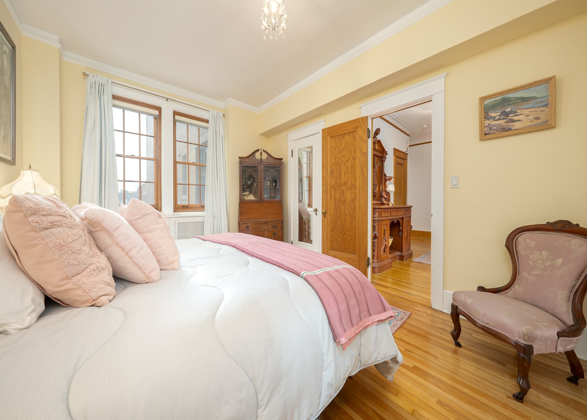 A sun-filled living room welcomes you with a wood-burning fireplace, integrated bookcases, and an inviting bay-window reading nook overlooking the park. The generous primary bedroom provides two wardrobes, one of which is clad in cedar.The office with custom built-ins offers the perfect space as is or as a library, den or optional second bedroom. The spacious dining room is ideal for entertaining, while the updated kitchen boasts a central island, gas cook-top, stainless-steel appliances, and storage.A powder room with washer/dryer enhances convenience.