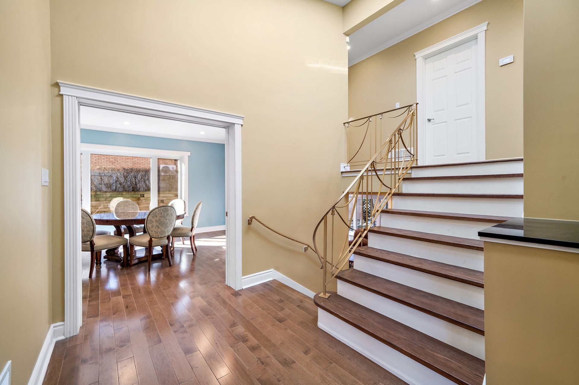 The upper floor offers 3 bedrooms and 2 bathrooms. The primary suite includes a custom walk-in closet, heated bathroom floors, and double vanity. The basement provides two additional bedrooms, two bathrooms, a gym, and a spacious laundry room with heated floors.