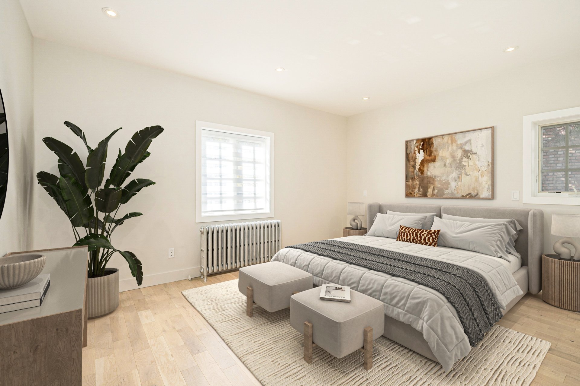 OUR TOP 3 FEATURES:- Fully renovated from A to Z with exceptional attention to detail: white oak flooring, custom millwork, designer bathrooms with heated floors, modern staircases, and new air-conditioning units / heat pumps throughout.- Spacious multi-level layout: open-concept living on the main floor, three large bedrooms with a primary suite on the 2nd level, a versatile family/office loft on the 3rd, and a finished basement with oversized family room, laundry/bathroom, and guest bedroom.- Unbeatable location: walk to McGill, downtown offices, the Museum of Fine Arts, Mount Royal Park, Concordia University, Peel and Guy-Concordia metros, and the city's best dining and shopping.