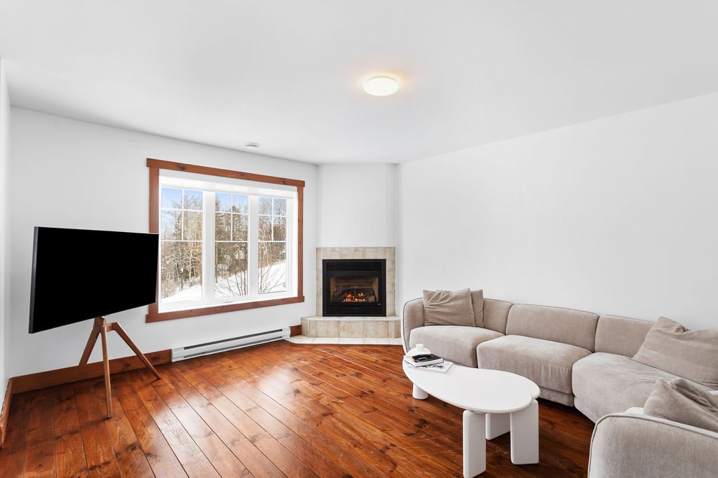 Discover this elegant semi-detached house just minutes from the village of Saint-Sauveur. The open-concept living space and modern kitchen with an island seamlessly blend style and convenience. This property features three bedrooms, two bathrooms, a propane fireplace, a family room, a spacious balcony, a garage plus generous driveway. Many renovations and improvements done since 2022 see detailed sheet for more information. Nestled in a prime location, it offers the perfect balance of tranquility and accessibility. Don't miss the chance to experience this exceptional home -- schedule your visit today!