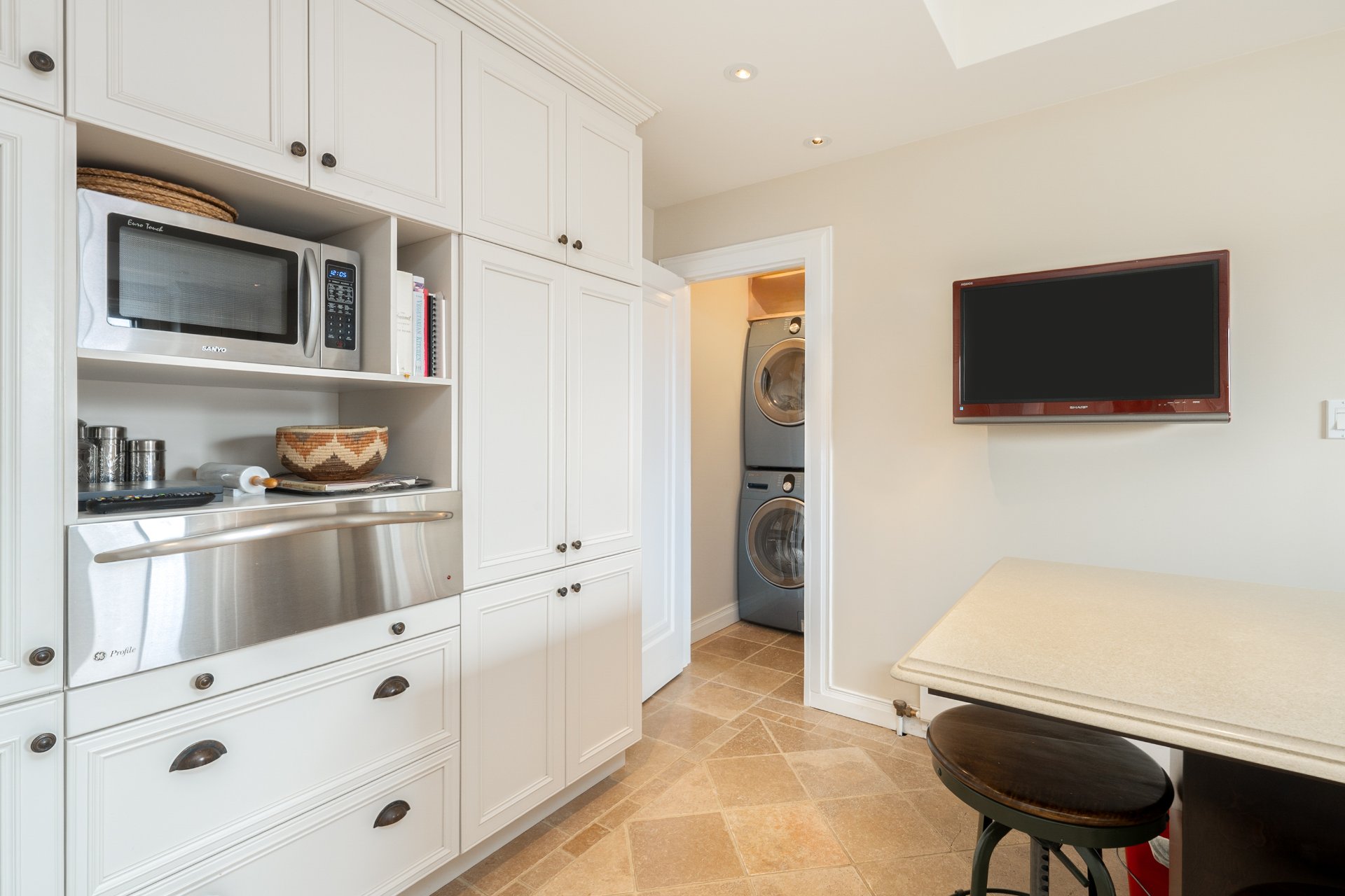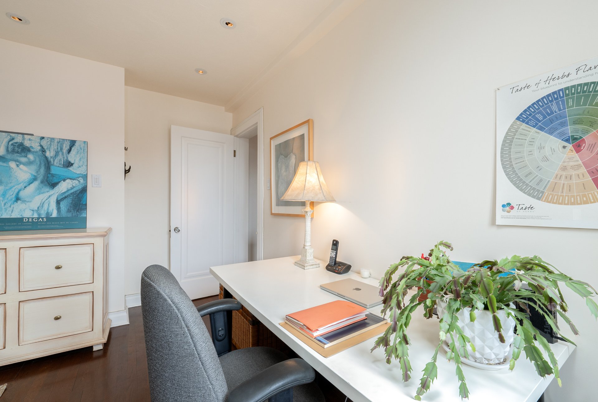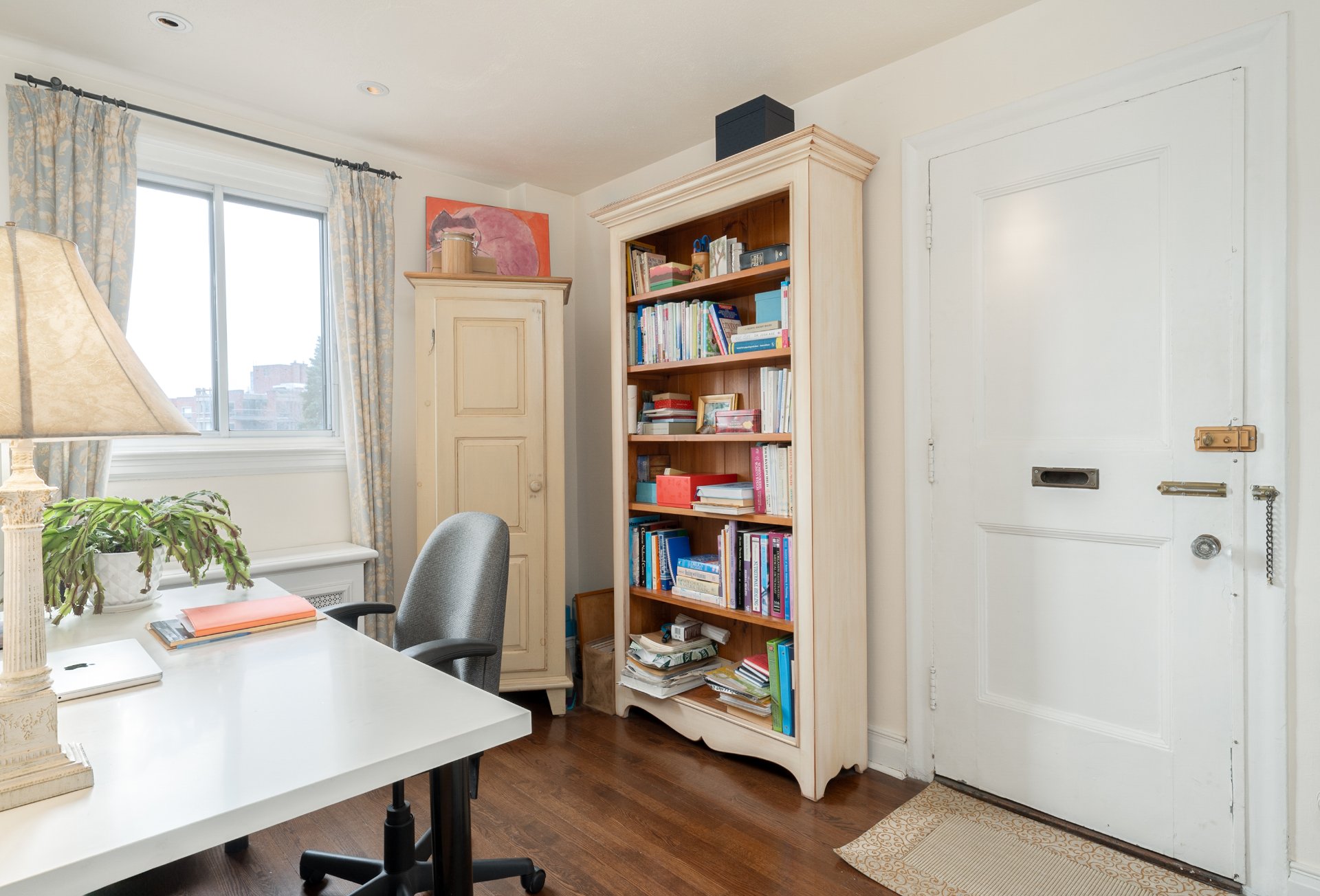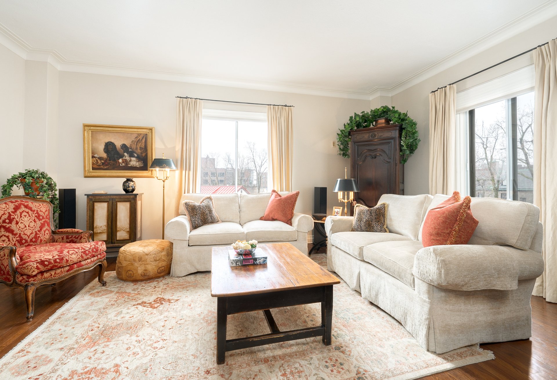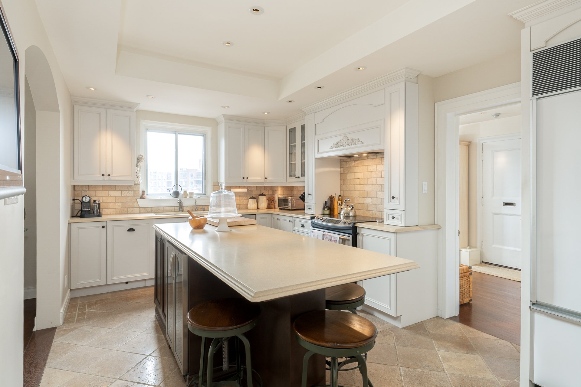 CONDO HIGHLIGHTS:-Generous living room with fireplace and separate dining room -Refined kitchen with island seating, ample cabinetry and adjacent laundry room-Two large bedrooms including a spacious primary with ensuite bathroom-Dedicated office/den with built-ins, perfect for work from home-Second full bathroom-High ceilings, hardwood floors and classic detailing throughout-In-unit laundry for everyday convenience-1 garage parking space #3 + 1 driveway spot-Storage locker included #15-Well-maintained building with gym-Condo fees: 2800.45$/month and include: 24h doorman, municipal and school taxes, heating, hot water, building maintenance, building insurance, snow removal, landscaping and the contingency fund.