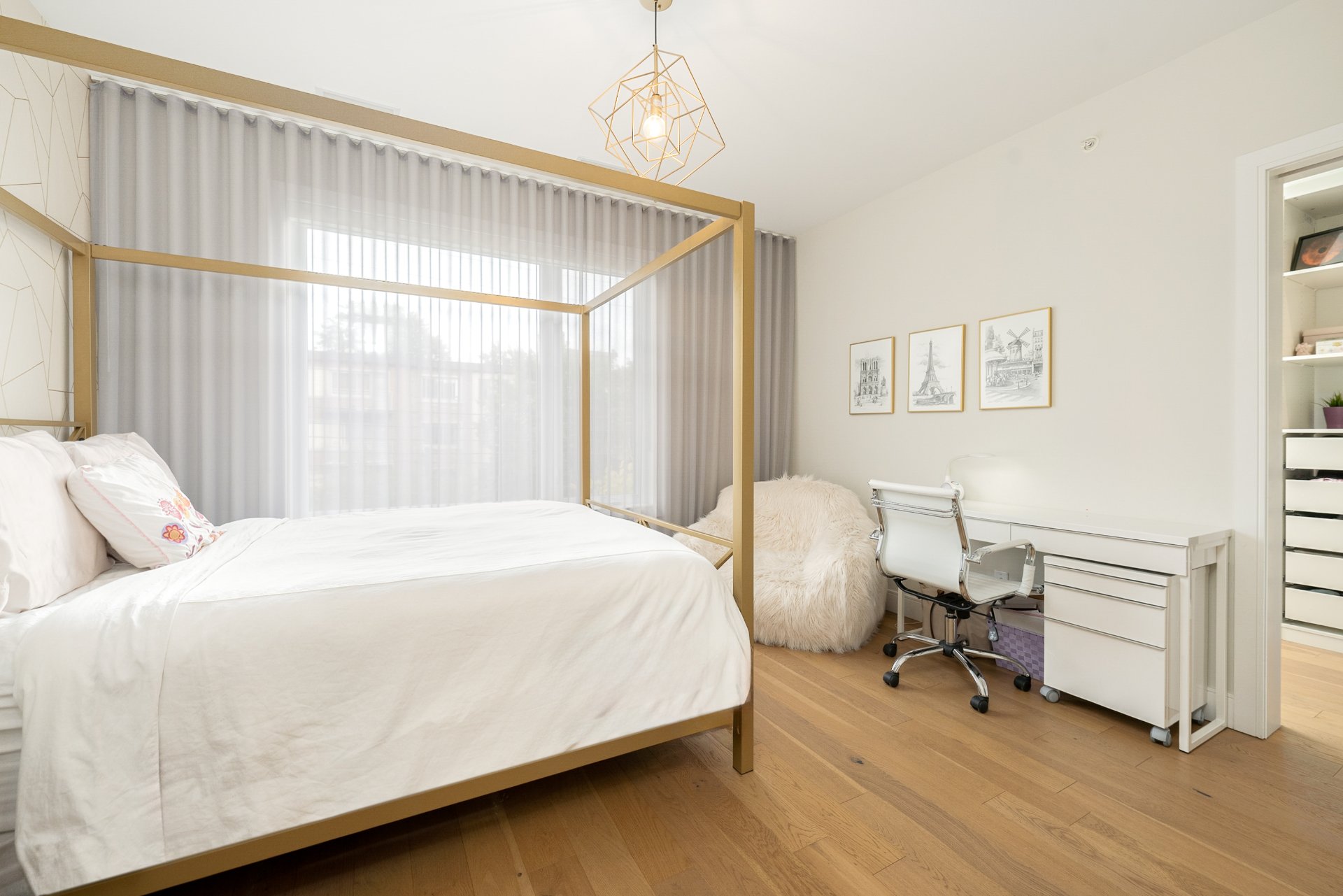 -Secluded top-floor retreat featuring a sun-filled primary suite with its own terrace, oversized walk-in, and spa-inspired ensuite with tub, glass shower, and double vanity.