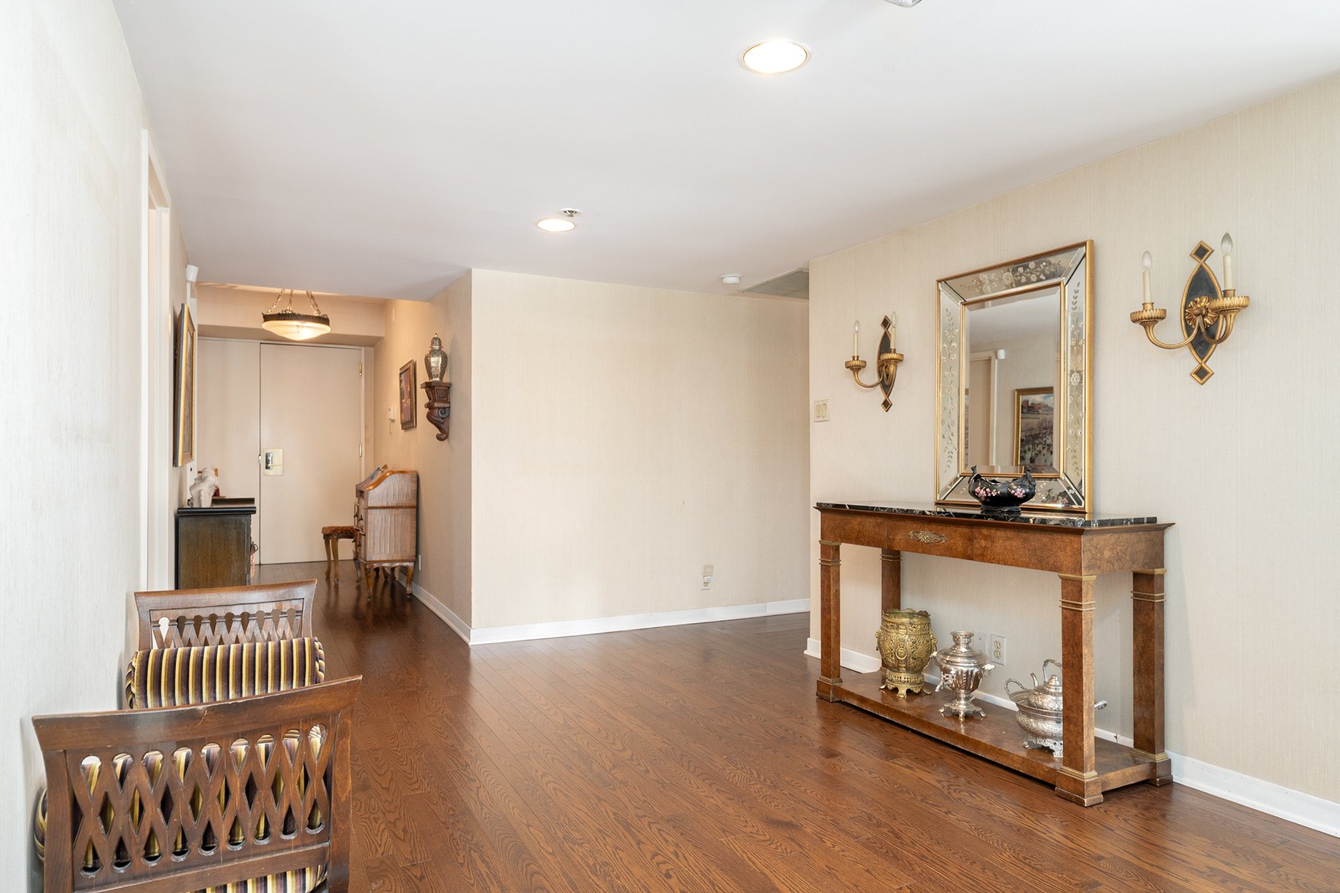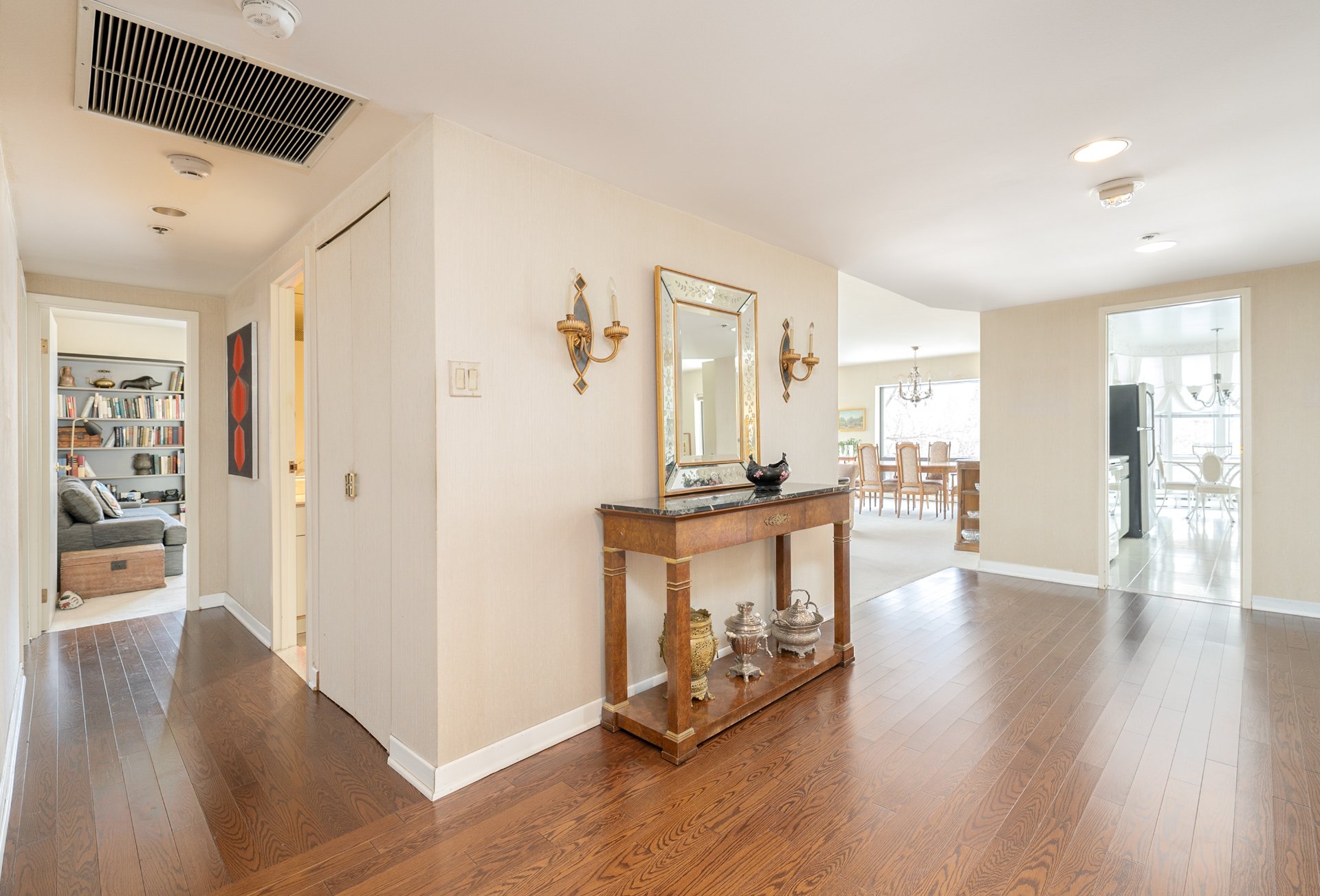 CONDO HIGHLIGHTS :-Impressive 1,977 sq.ft. layout-Large entrance hall with generous proportions and wood flooring-Expansive living room opening to balcony with wall-to-wall windows-Curved balcony offering a pleasant outdoor extension of the living area with unobstructed views -Formal dining room adjacent to the living space-Bright eat-in kitchen with bay window breakfast area-Comfortable family room with built-ins and sliding mirrored doors-Spacious primary bedroom with two walk-in closets-Ensuite bathroom with double vanity and bathtub-Second bedroom with excellent dimensions-Additional full bathroom-Powder room near entrance for guests-Laundry room-Mechanical/storage room-Long hallway connecting the bedroom wing to living spaces, creating a practical separation of areas