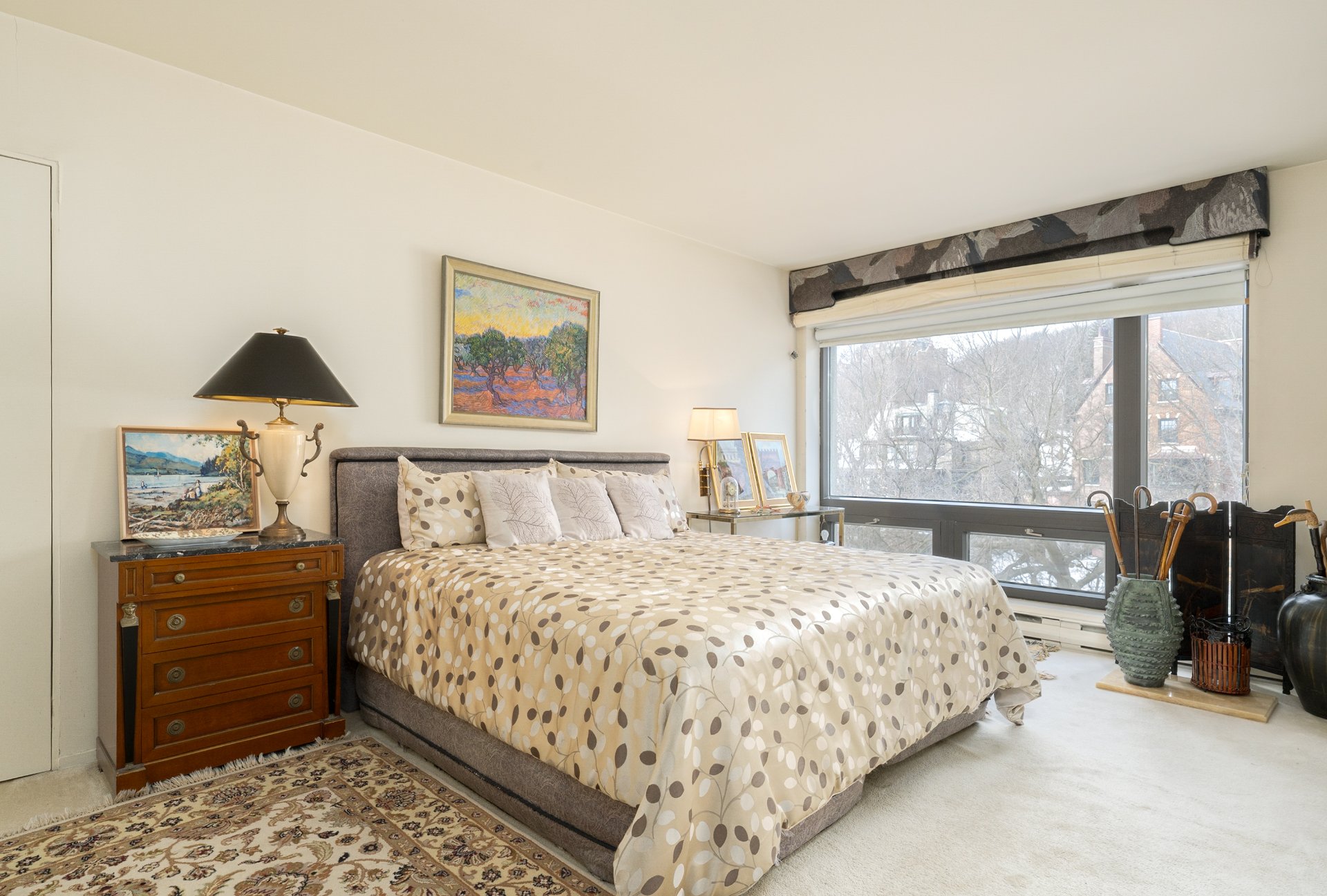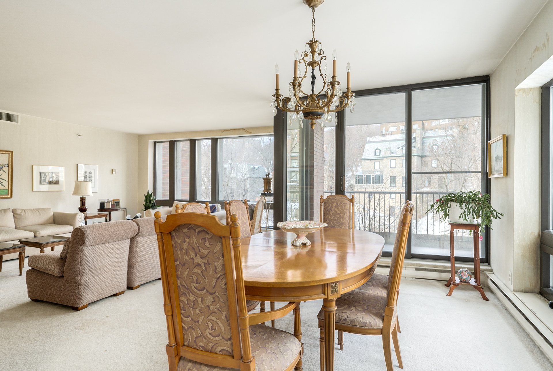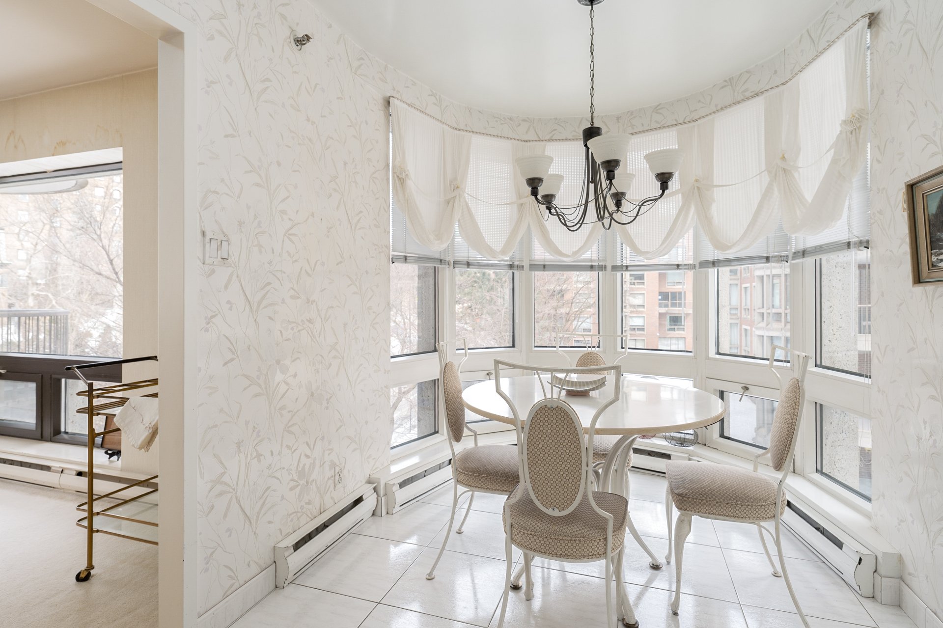 Perched on the 10th floor of the prestigious Le Fort de la Montagne, this expansive 1,977 sq.ft. unit offers generous proportions. A grand living and dining area opens to a balcony overlooking the treetops of Westmount and the Fort de la Montagne grounds. The layout features a spacious primary suite with walk-ins and ensuite, a second bedroom, family room and bright eat-in kitchen with bay window. Full-service building with exceptional amenities in one of Montreal's most sought-after locations, including two garage parking spaces.