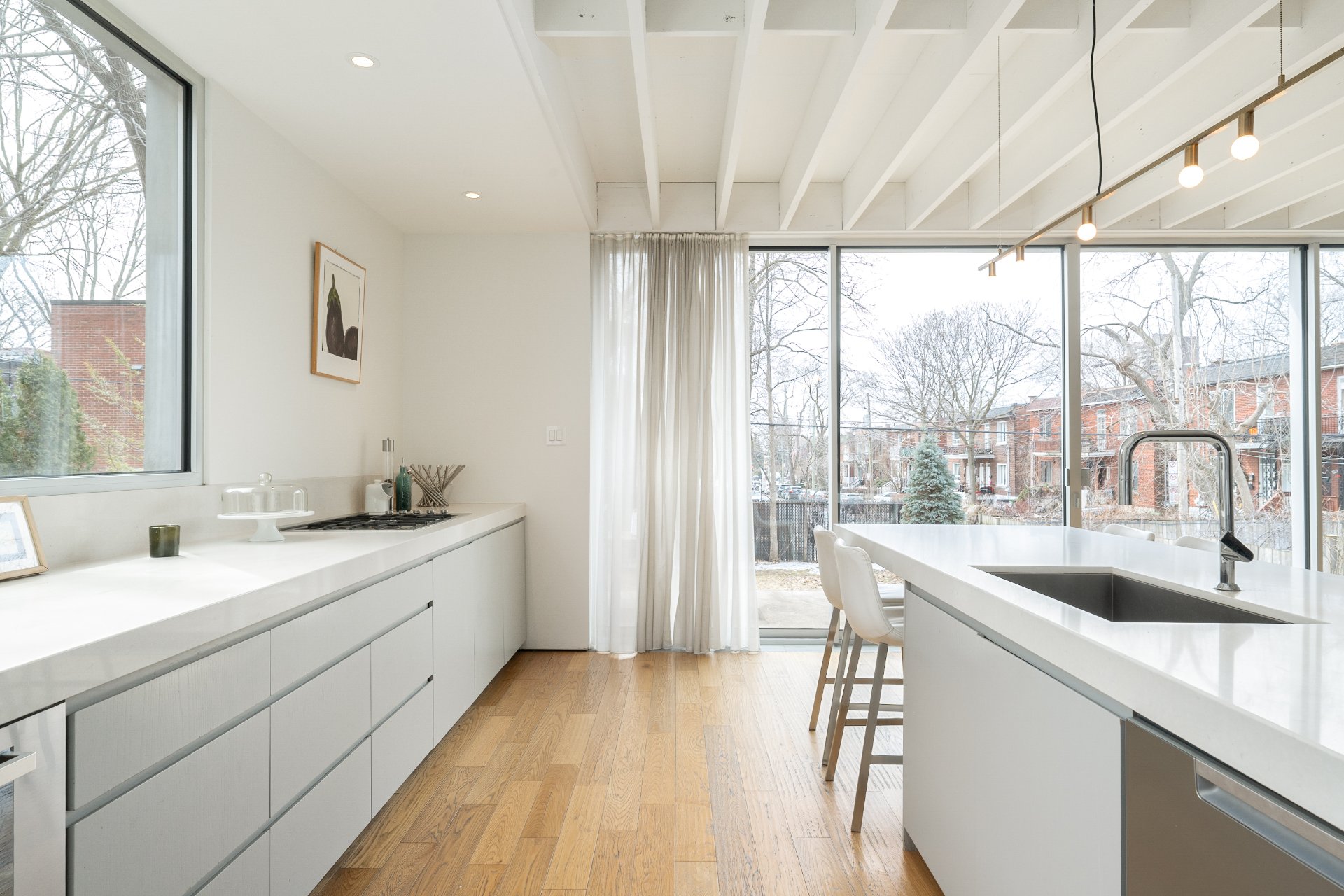 Set on a generous 6,900+ sq.ft. lot in Côte-des-Neiges, this detached home stands out with its striking rear extension and reworked layout designed for modern living. Expansive open-concept spaces, oversized windows and seamless access to the backyard define the main level, while 4+ bedrooms and a versatile lower-level offer flexibility for evolving needs. Garage and driveway parking add everyday convenience. A thoughtful blend of scale, light and upgrades, just minutes from Snowdon & Villa-Maria metros, parks, schools, Queen Mary and Côte-des-Neiges services, with quick access to downtown.