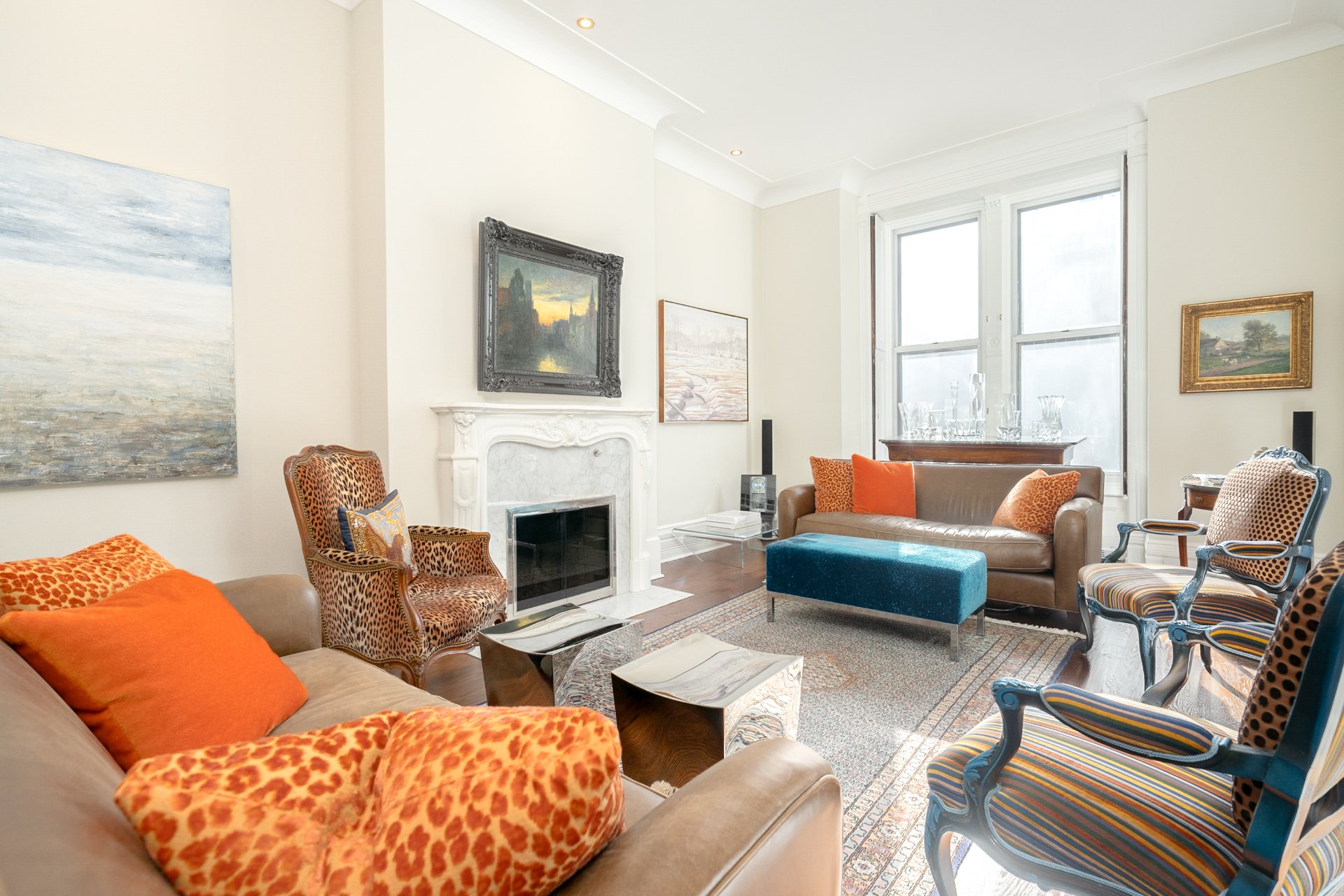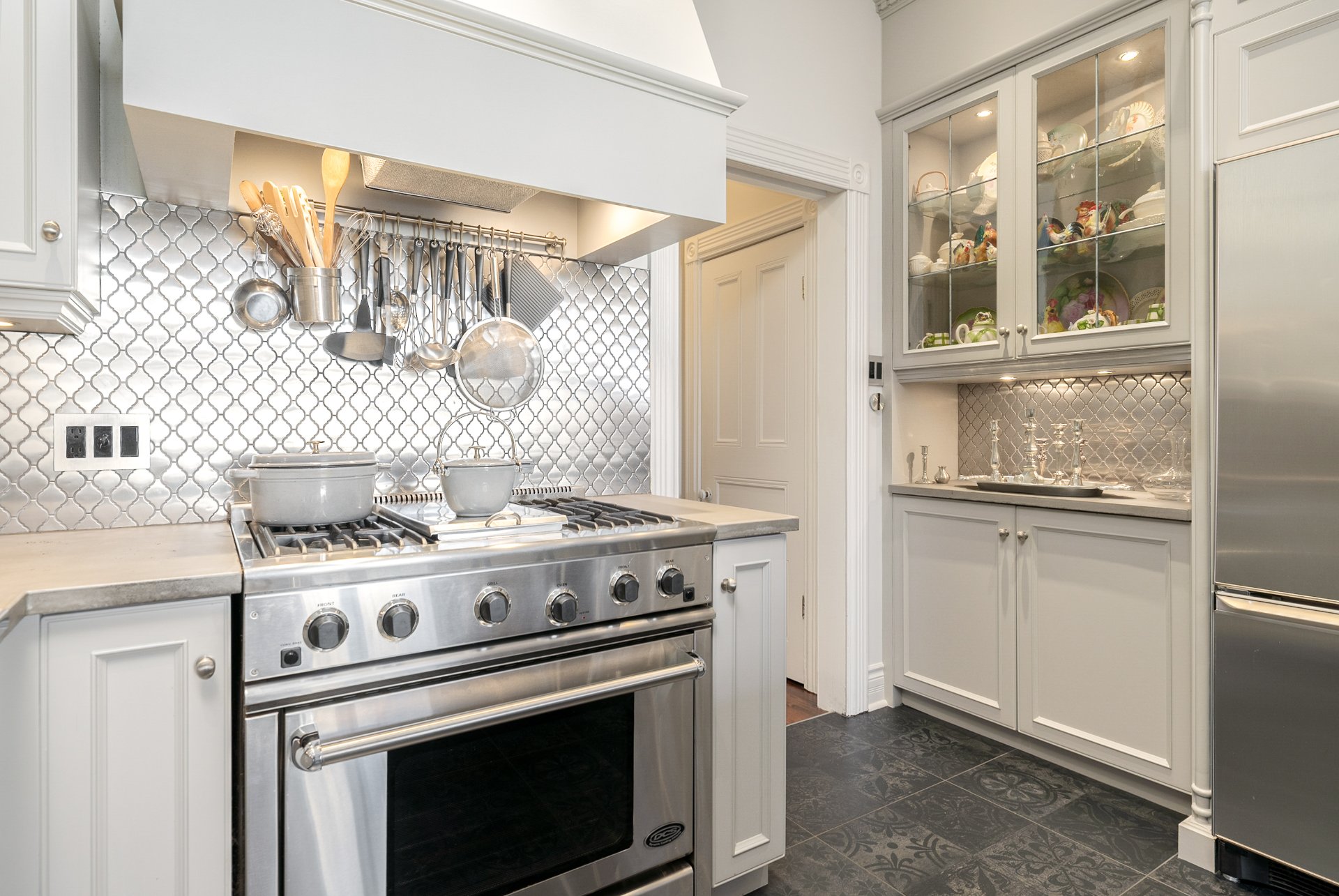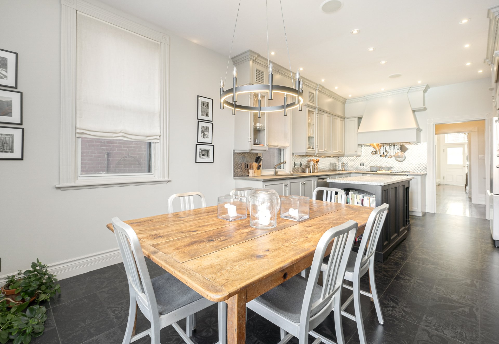 NOS 3 COUPS DE COEUR-Cuisine de chef avec armoires pleine hauteur, long îlot en marbre, dosseret en arabesque, coin repas et accès à la terrasse-Détails architecturaux remarquables du manteau de foyer en marbre sculpté à la rampe d'escalier ornementale, en passant par l'imposte en bois décoratif et les ogées détailées, à découvrir pleinement en visite-Stationnement privé double, rare dans ce secteur de Westmount