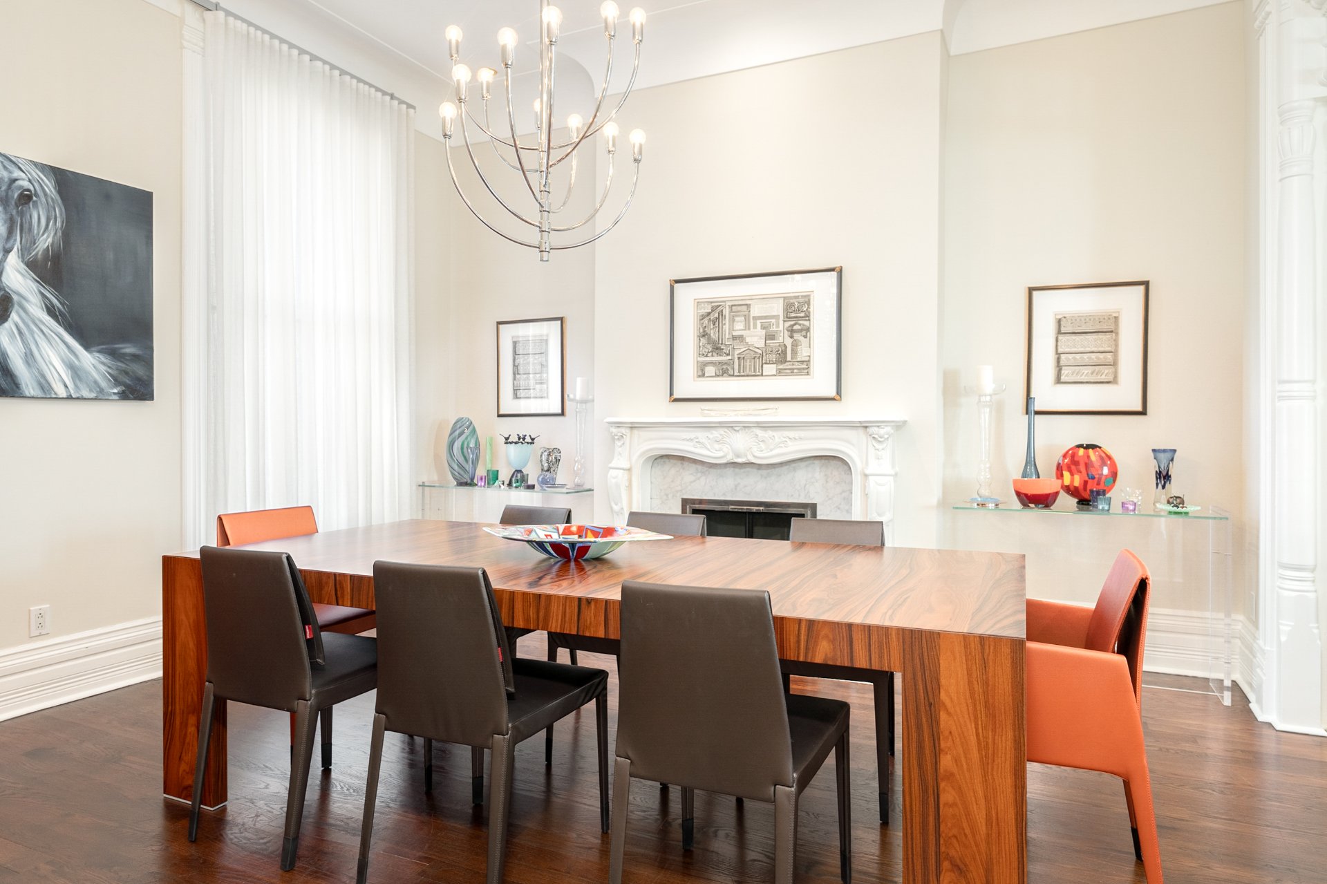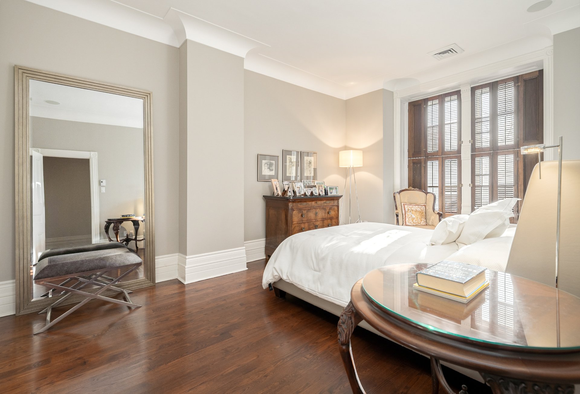 REZ-DE-CHAUSSÉE-Hall d'entrée formel avec plafonds de 10 pieds et superbe boiseries -Salon avec foyer en marbre, grandes fenêtres, moulures détaillées et éclairage encastré-Grande salle à manger mise en valeur par un imposte en bois préservée et des colonnes décoratives-Cuisine rénovée avec long îlot en marbre, armoires pleine hauteur, dosseret en arabesque et haut-parleurs intégrés au plafond-Coin repas avec accès à la terrasse-Salle d'eau