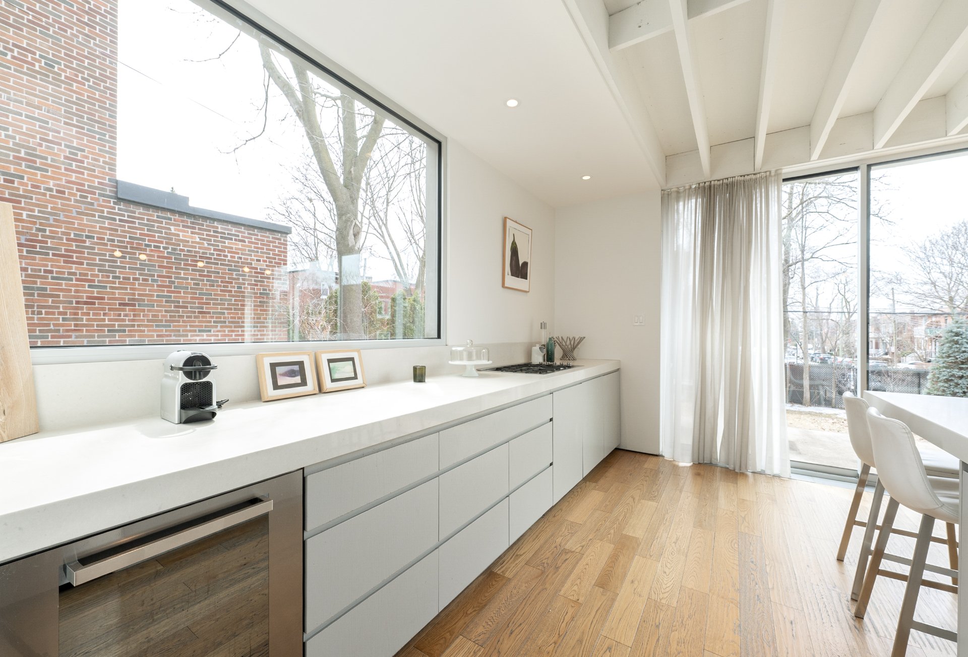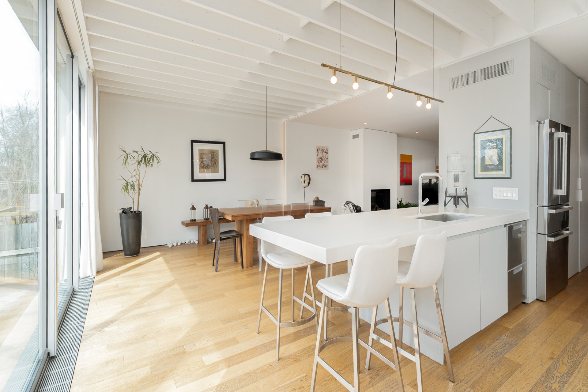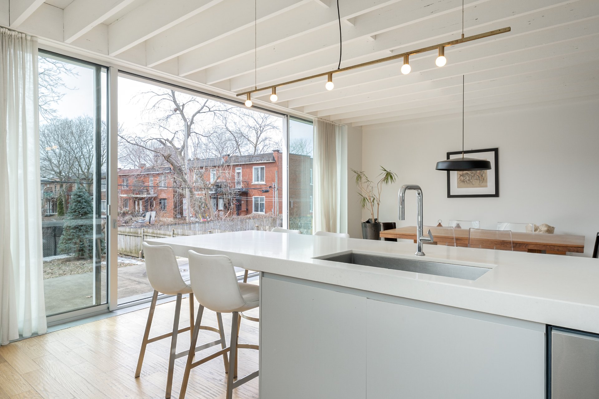 -Extension arrière remarquable: aire ouverte regroupant salon, salle à manger et cuisine, avec fenêtres pleine hauteur et connexion directe à la cour-arrière.