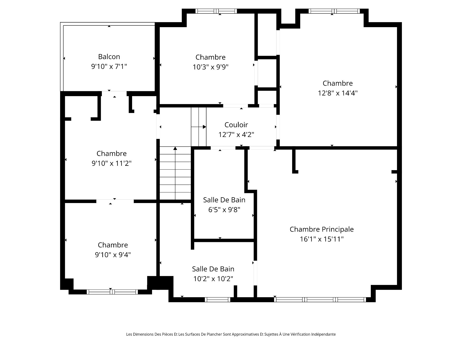 | Chambre à coucher | 9.10x11.2 P | Bois | Accès au balcon |