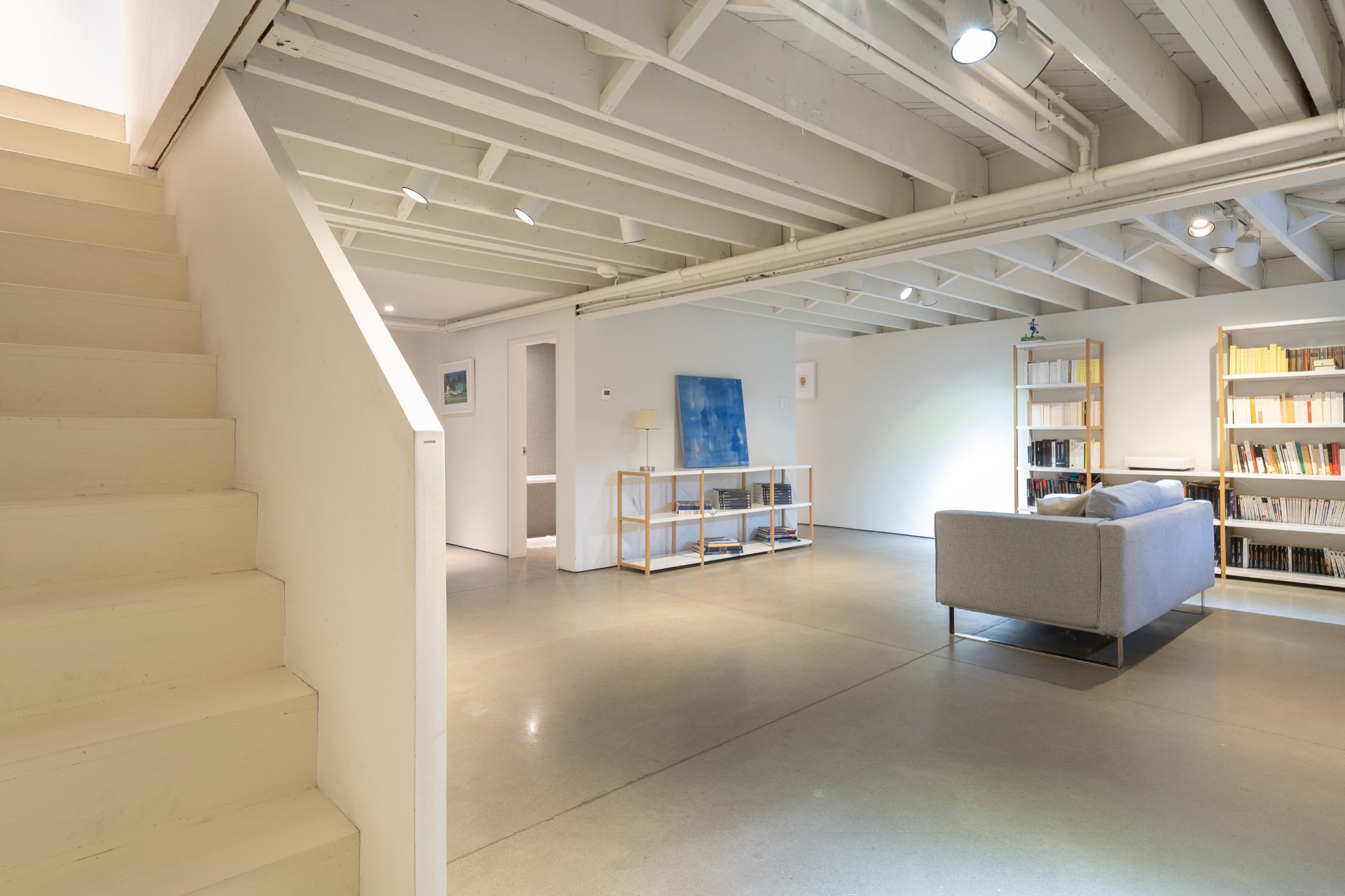 SOUS-SOL-Grande salle familiale / salle de jeux-Chambre supplémentaire et espaces de rangement-Salle de lavage et salle mécanique-Usage flexible pour gym, bureau ou espace détente