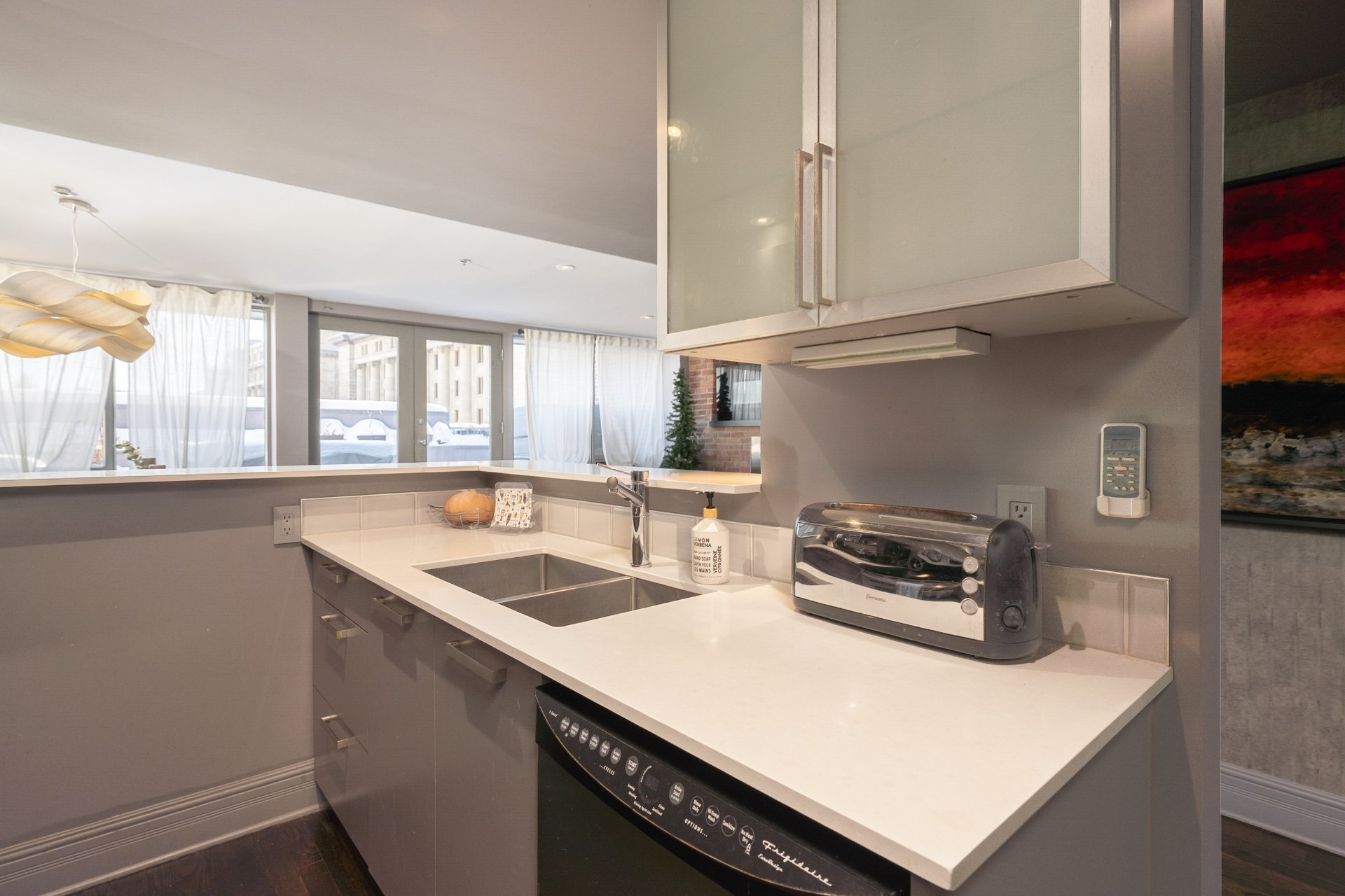 -Prime Old Montreal location: Steps to the Old Port, waterfront promenade, cafés, restaurants and galleries. Walking distance to Champ-de-Mars metro, with quick access to downtown, highways and bridges, one of the city's most sought-after lifestyle settings.