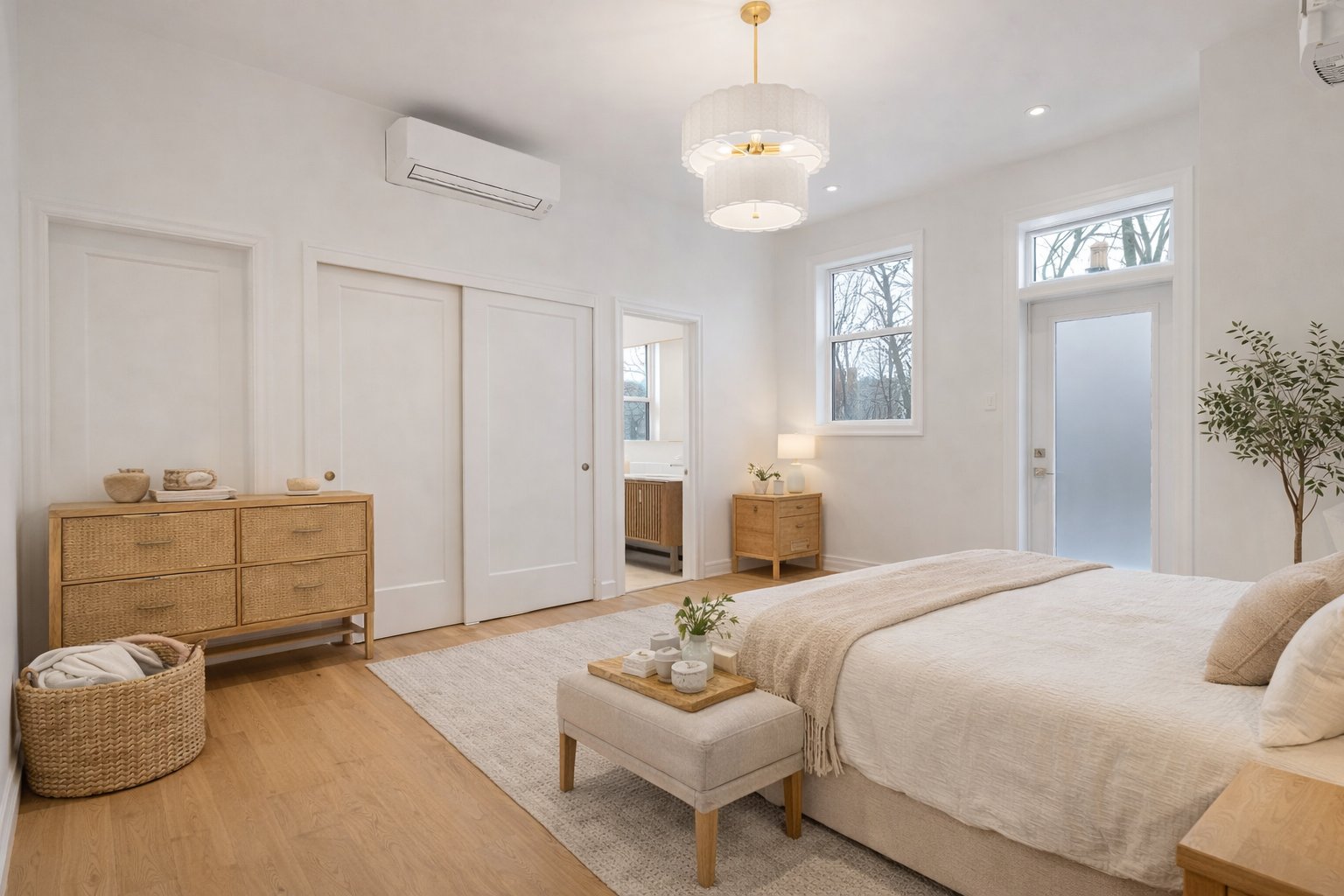 **Apartment fully refinished and repainted**New lighting throughout**New flooring throughout**New kitchen with new appliances and large island**New bathrooms with heated floors x 2**Three wall-mounted AC units
