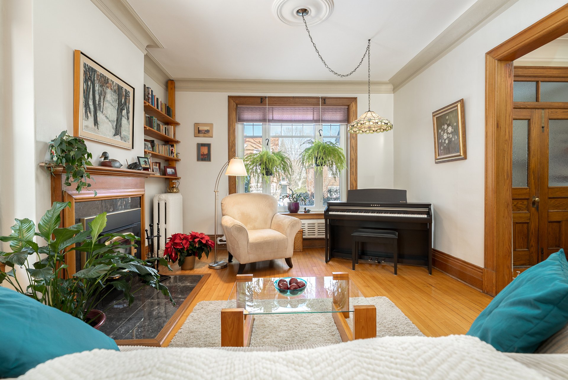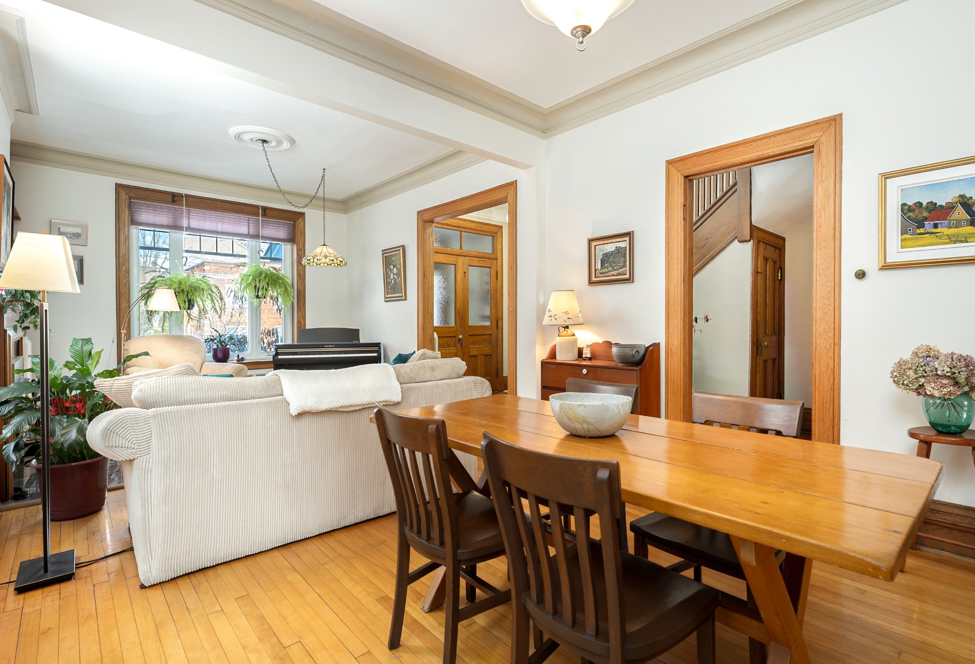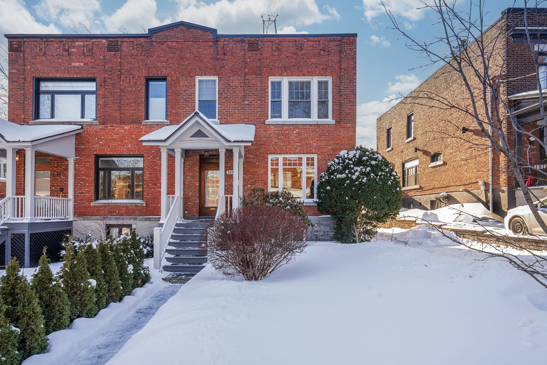Brick-clad residence on Grey Avenue offering classic character and a generous family layout with 5+1 bedrooms and 1+2 bathrooms. Original woodwork, hardwood floors, crown mouldings and a marble fireplace anchor the bright living and dining rooms, while the kitchen and dinette overlook the backyard. The upper level brings four bedrooms including a spacious primary with balcony access. Finished basement with family space and additional bedroom. Deep backyard with terrace and 2-car driveway parking in a Victoria Village, Westmount-adjacent setting.
