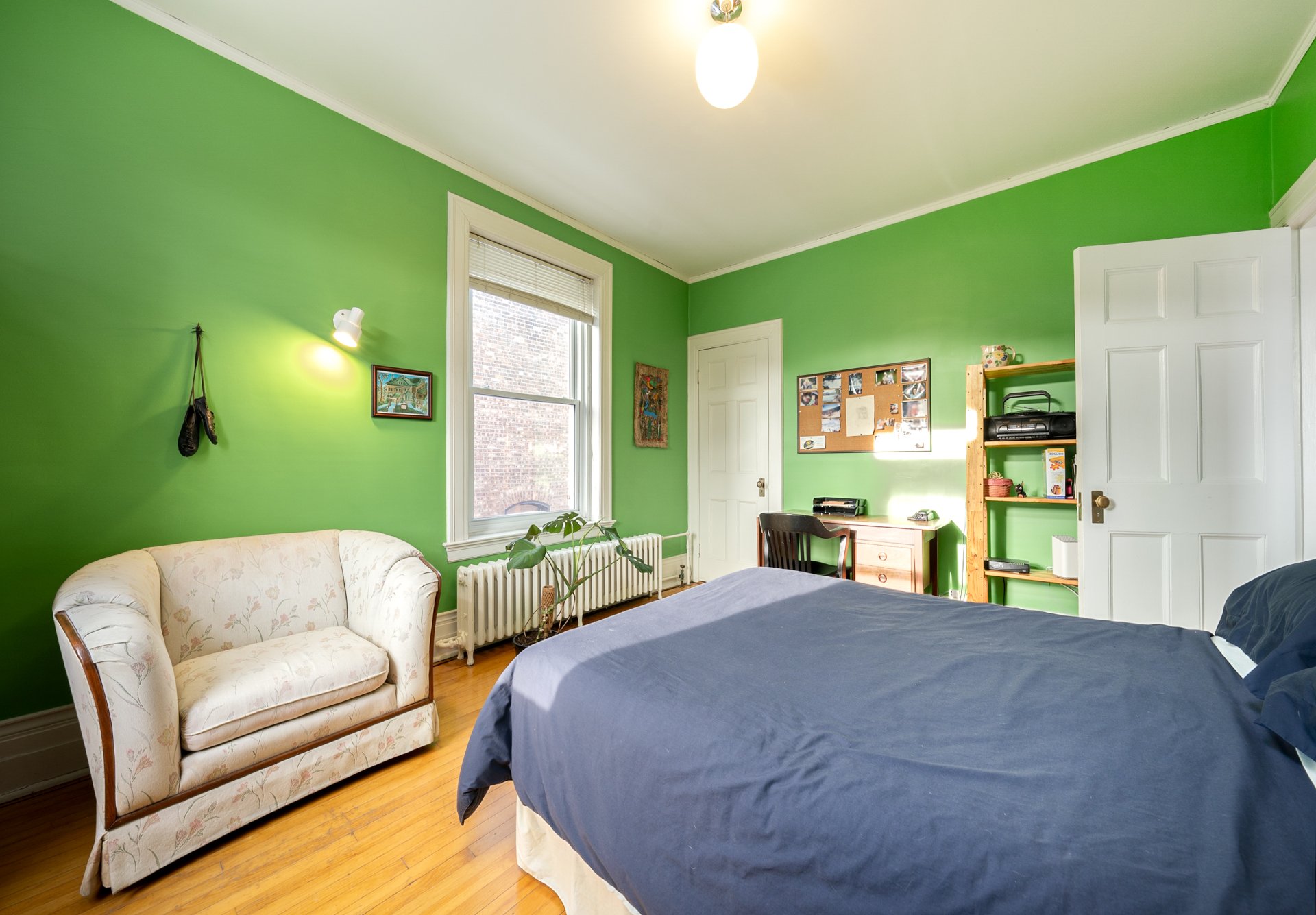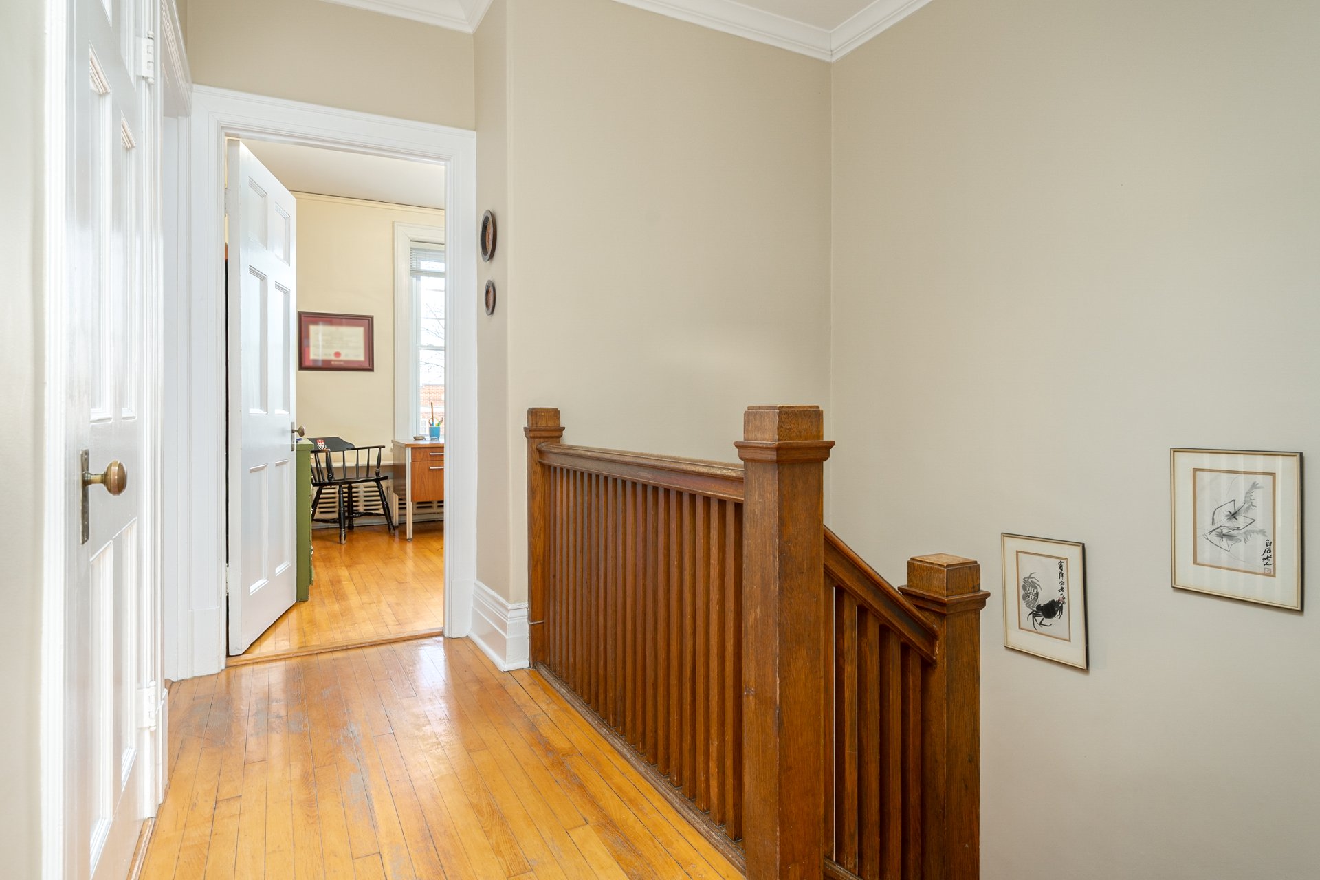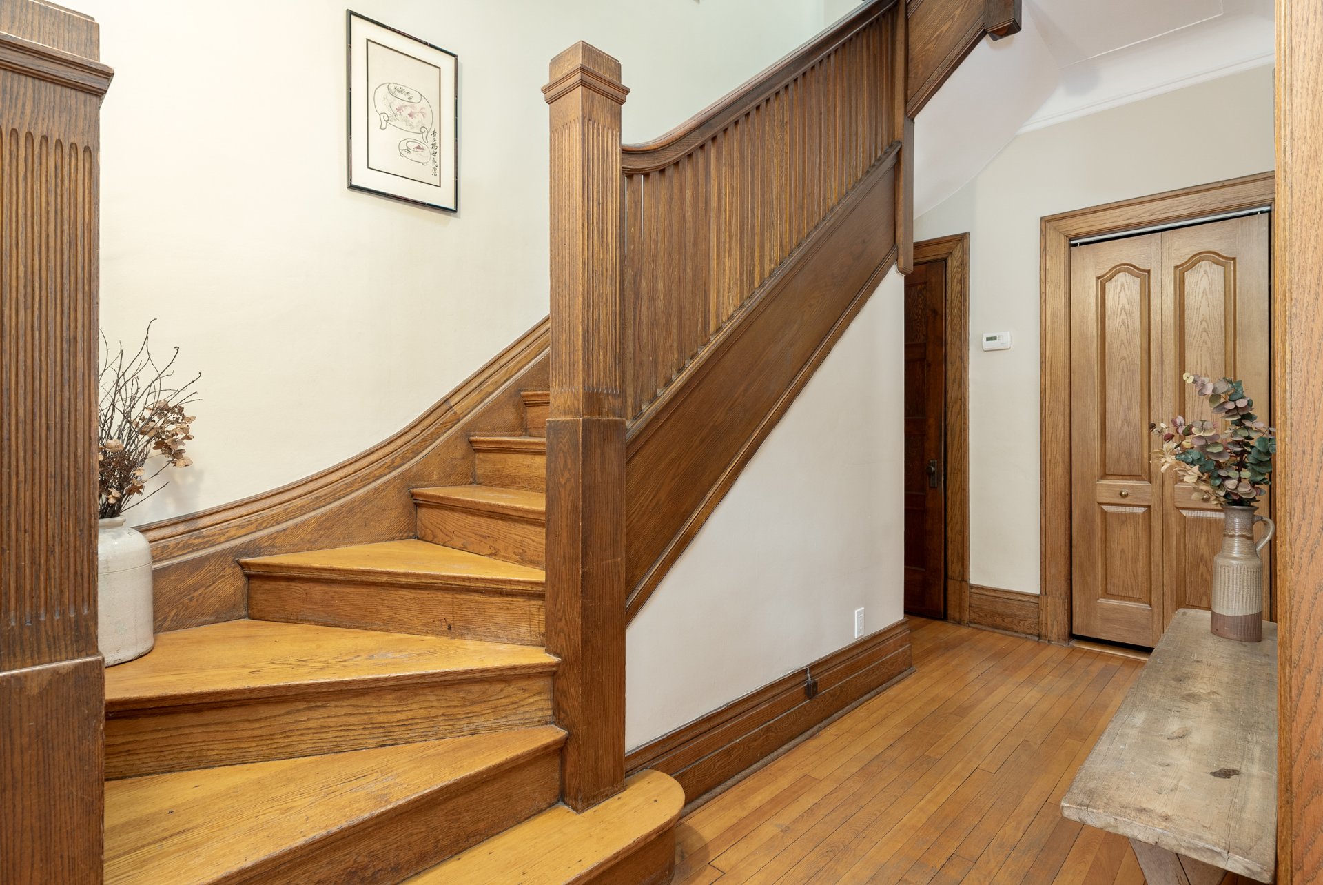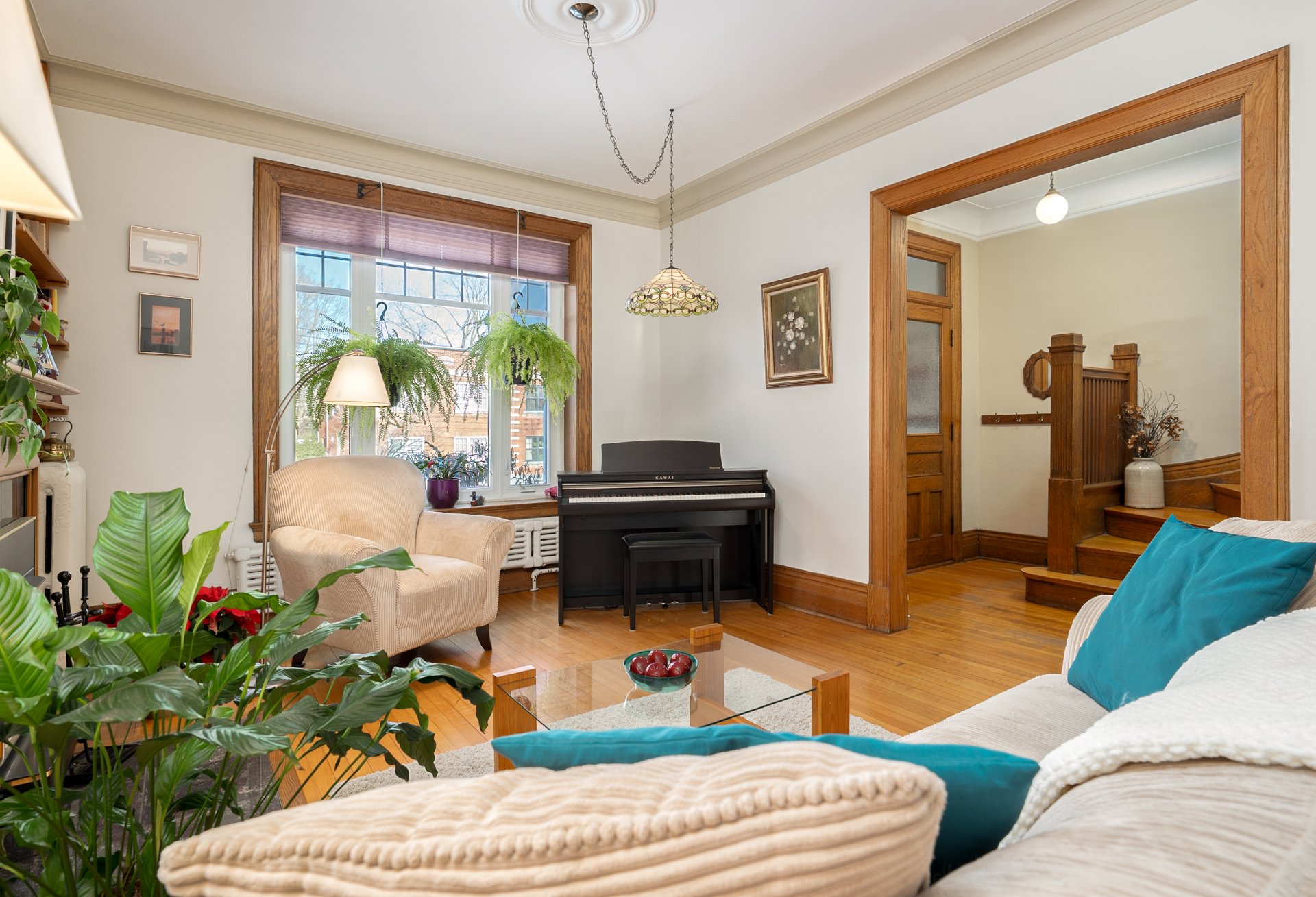 Brick-clad residence on Grey Avenue offering classic character and a generous family layout with 5+1 bedrooms and 1+2 bathrooms. Original woodwork, hardwood floors, crown mouldings and a marble fireplace anchor the bright living and dining rooms, while the kitchen and dinette overlook the backyard. The upper level brings four bedrooms including a spacious primary with balcony access. Finished basement with family space and additional bedroom. Deep backyard with terrace and 2-car driveway parking in a Victoria Village, Westmount-adjacent setting.