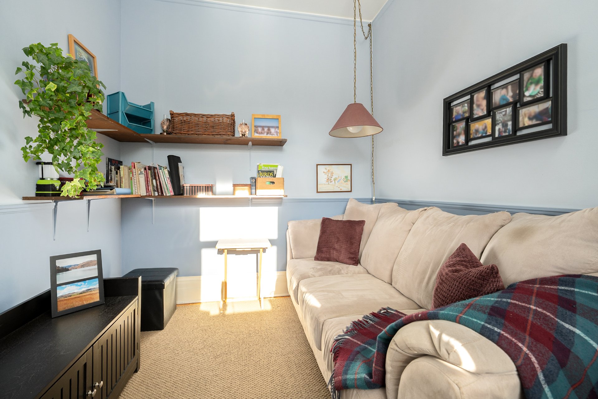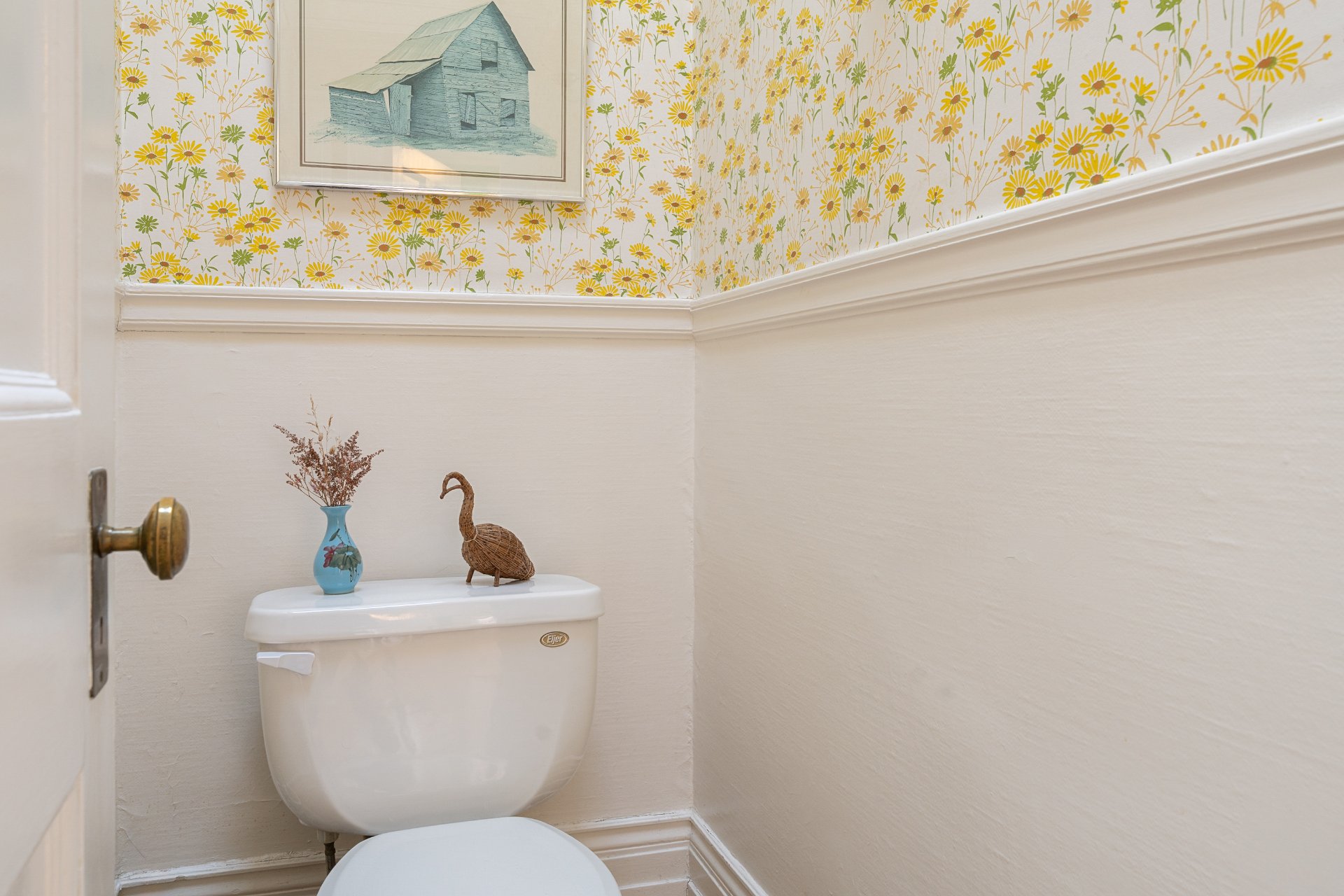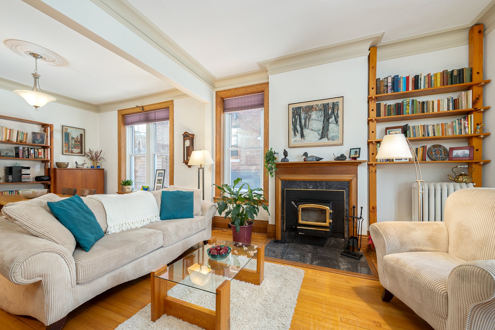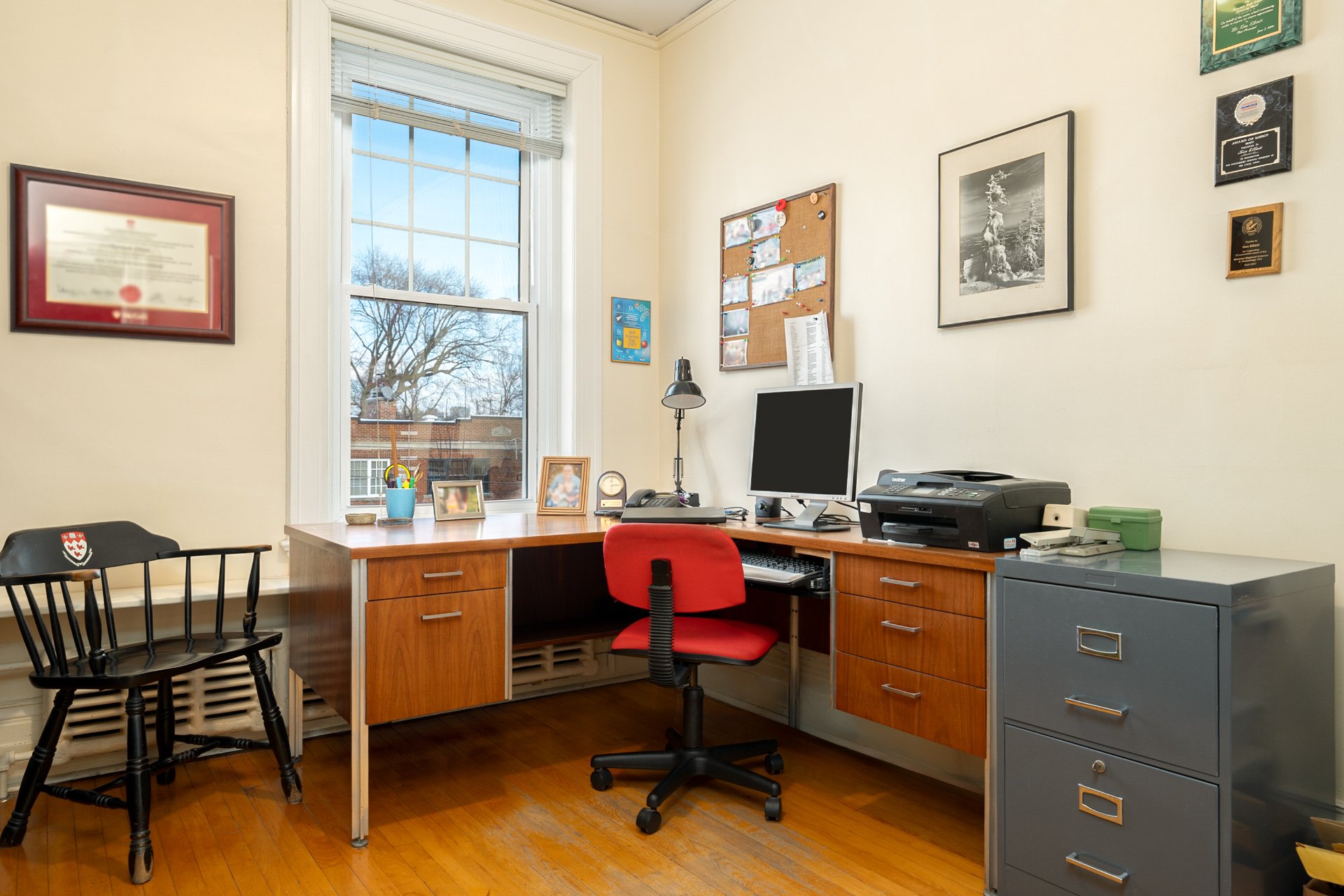 MAIN FLOOR -Bright living room with marble fireplace and large front window-Formal dining room open to the living area-Kitchen with adjacent dinette space overlooking the backyard -Flex space currently used as a den -Powder room-Rear access toward terrace and garden through a practical bedroom