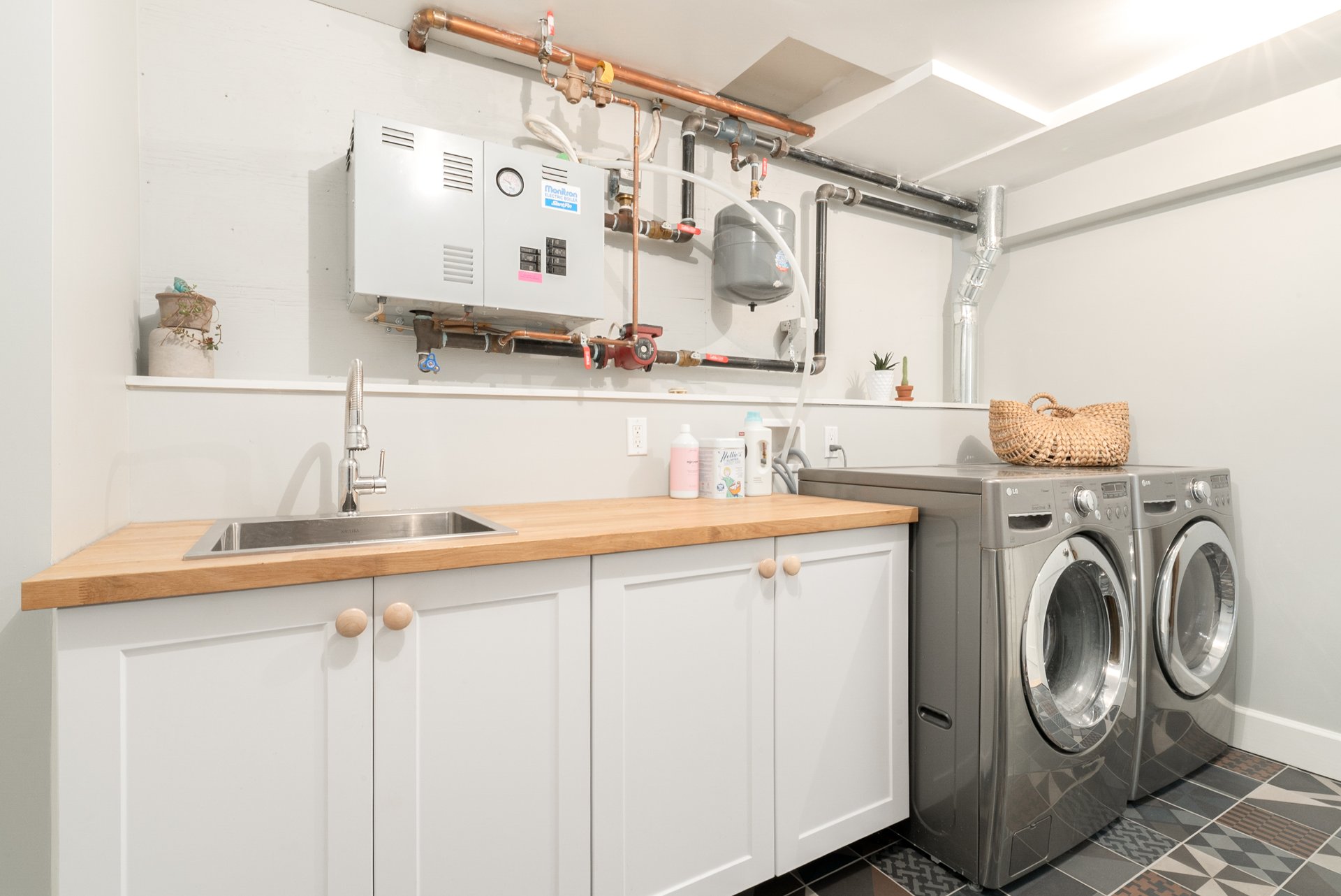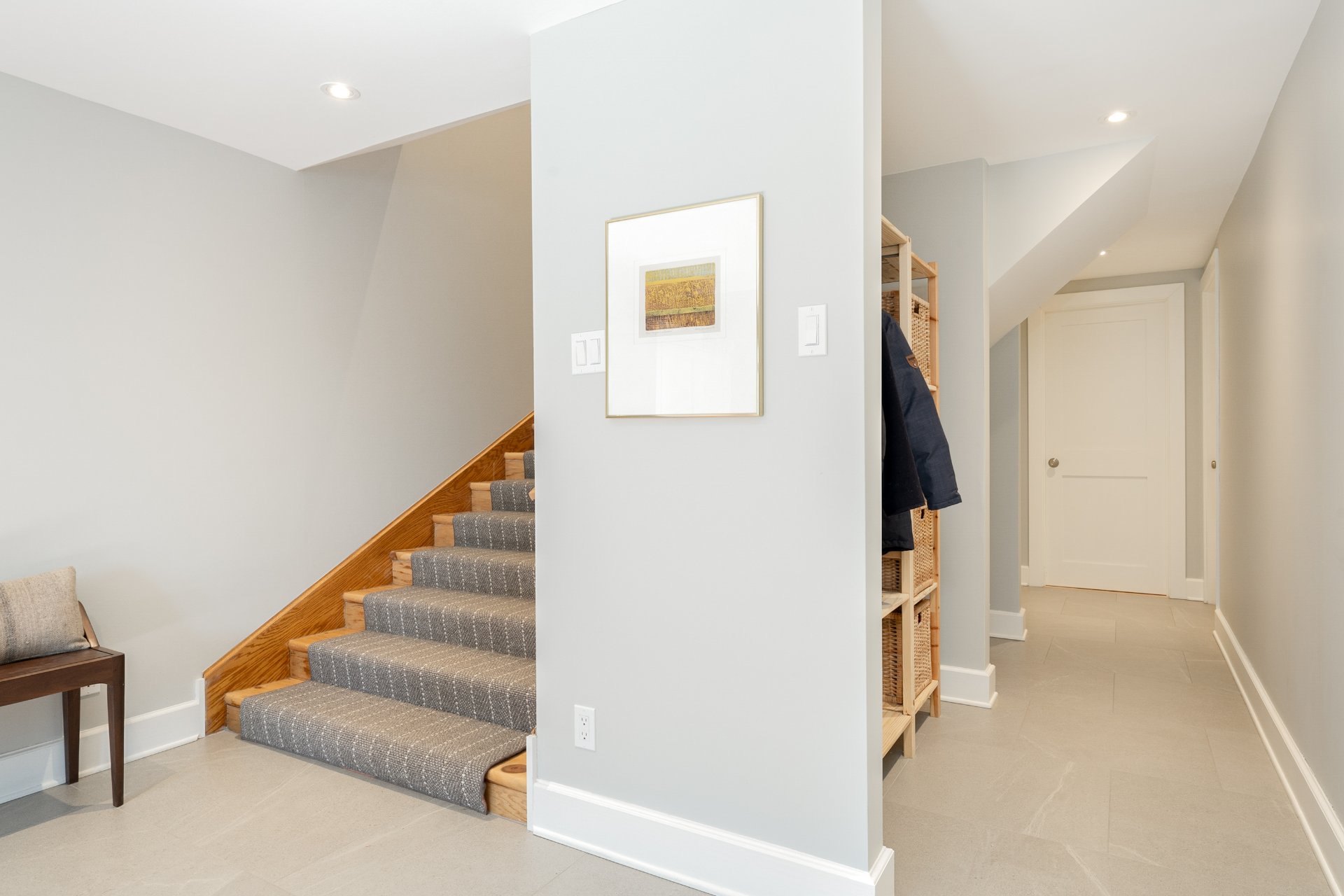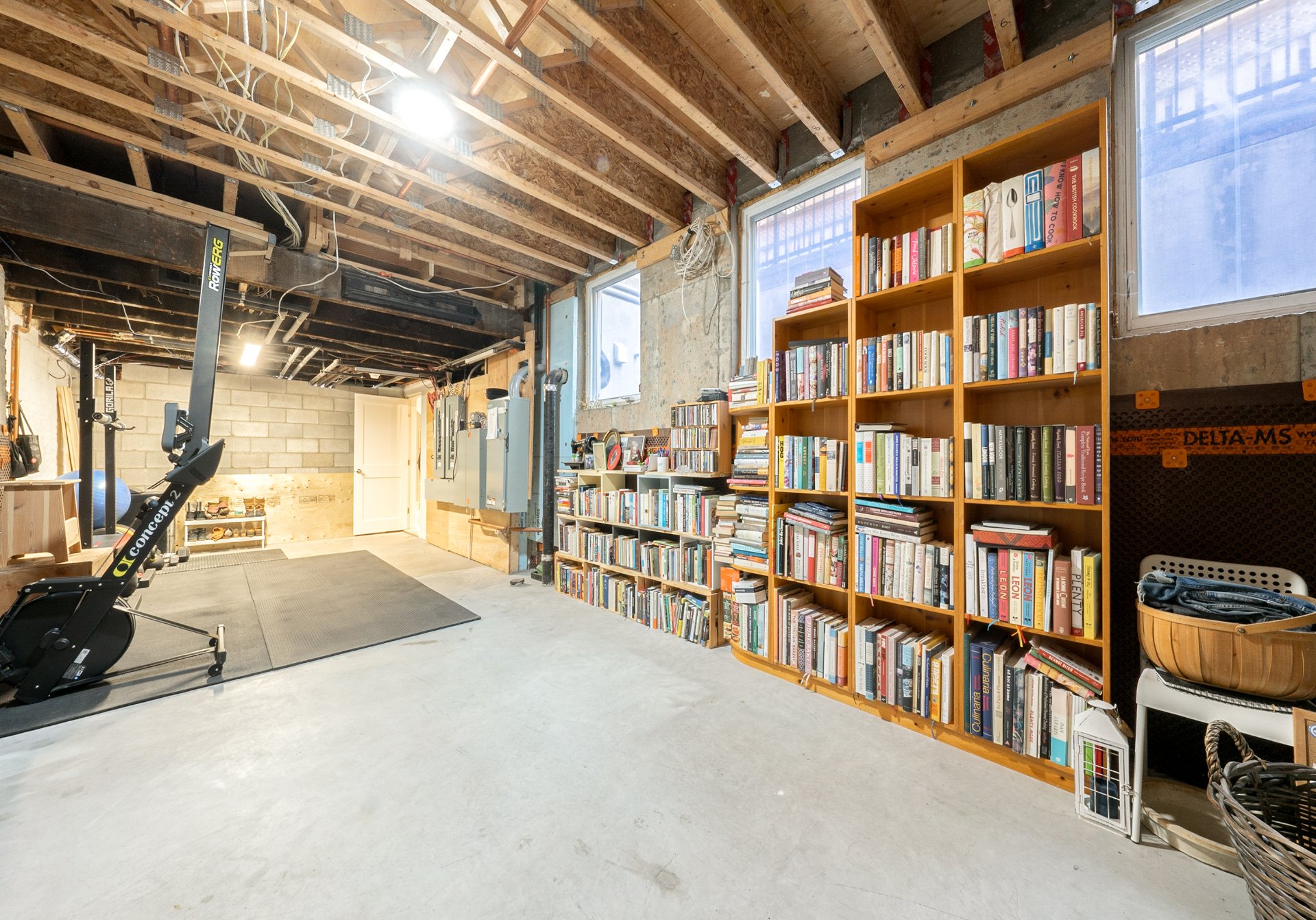 BASEMENT -Excavated and expanded footprint with insulated concrete floors and walls-Laundry room with updated finishes-Extensive storage and mechanical space-Large family room/gym plumbed for future kitchen and bathroom-Multiple drainage systems and sump pumps
