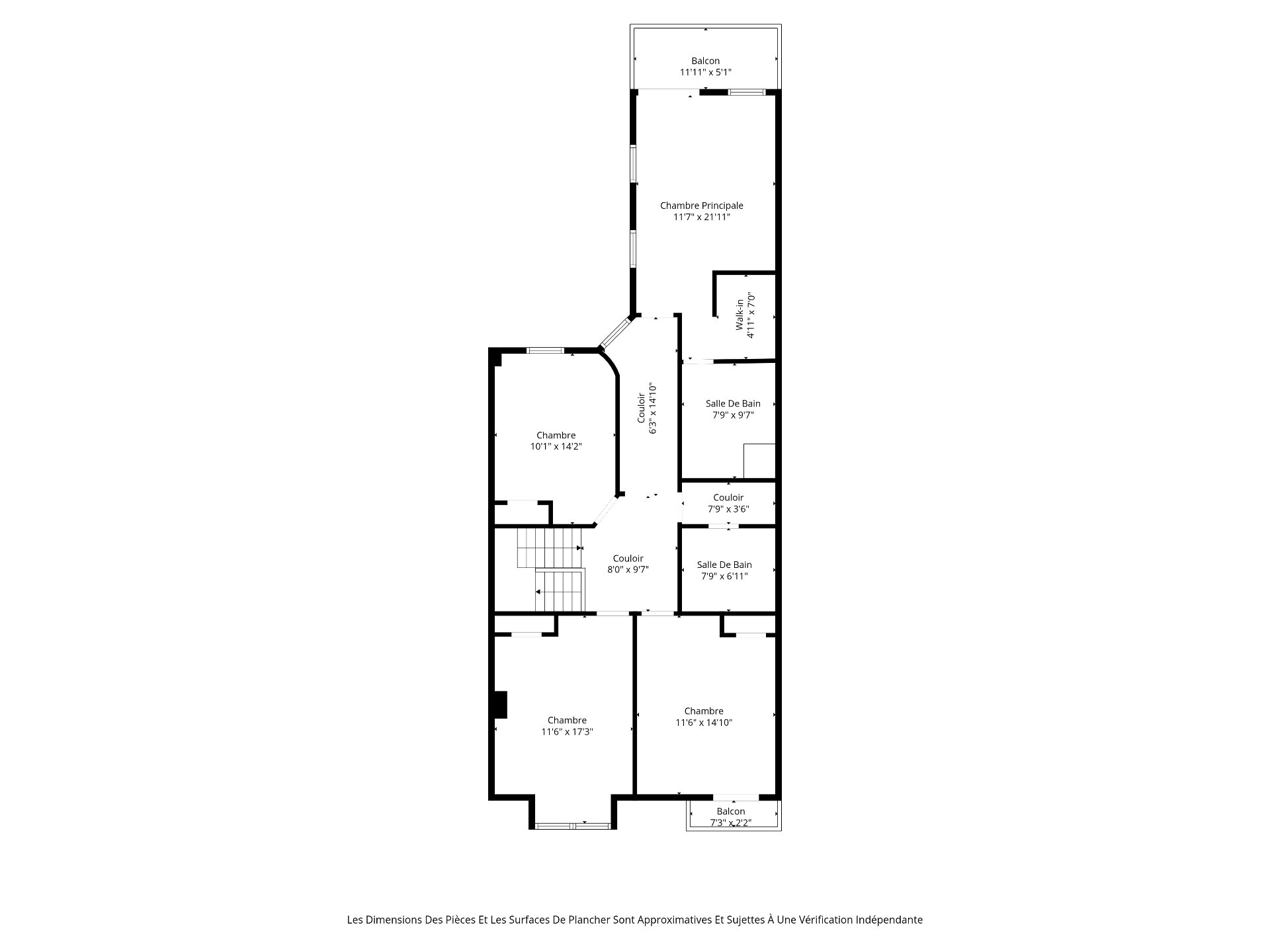 | Primary bedroom | 11.7x21.11 P | Wood | Rear balcony access |