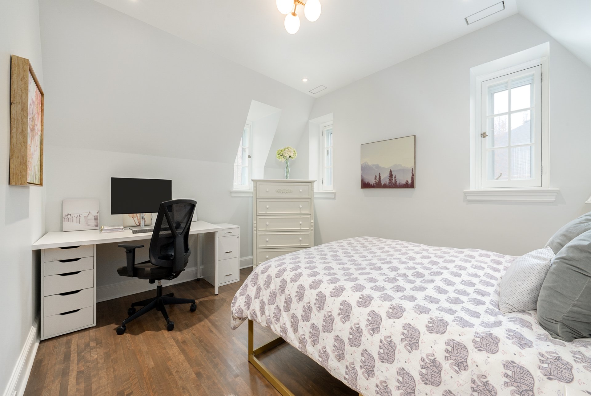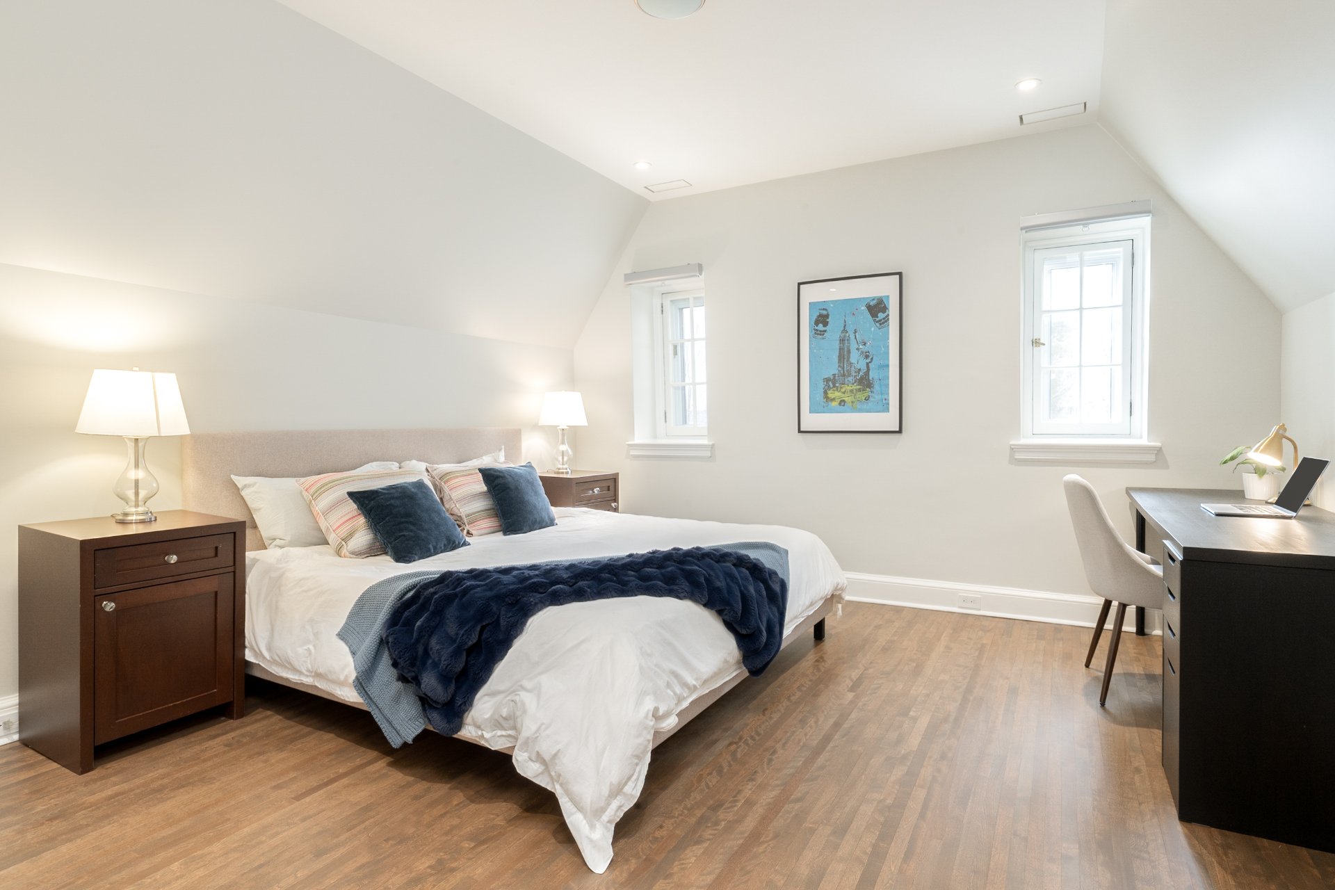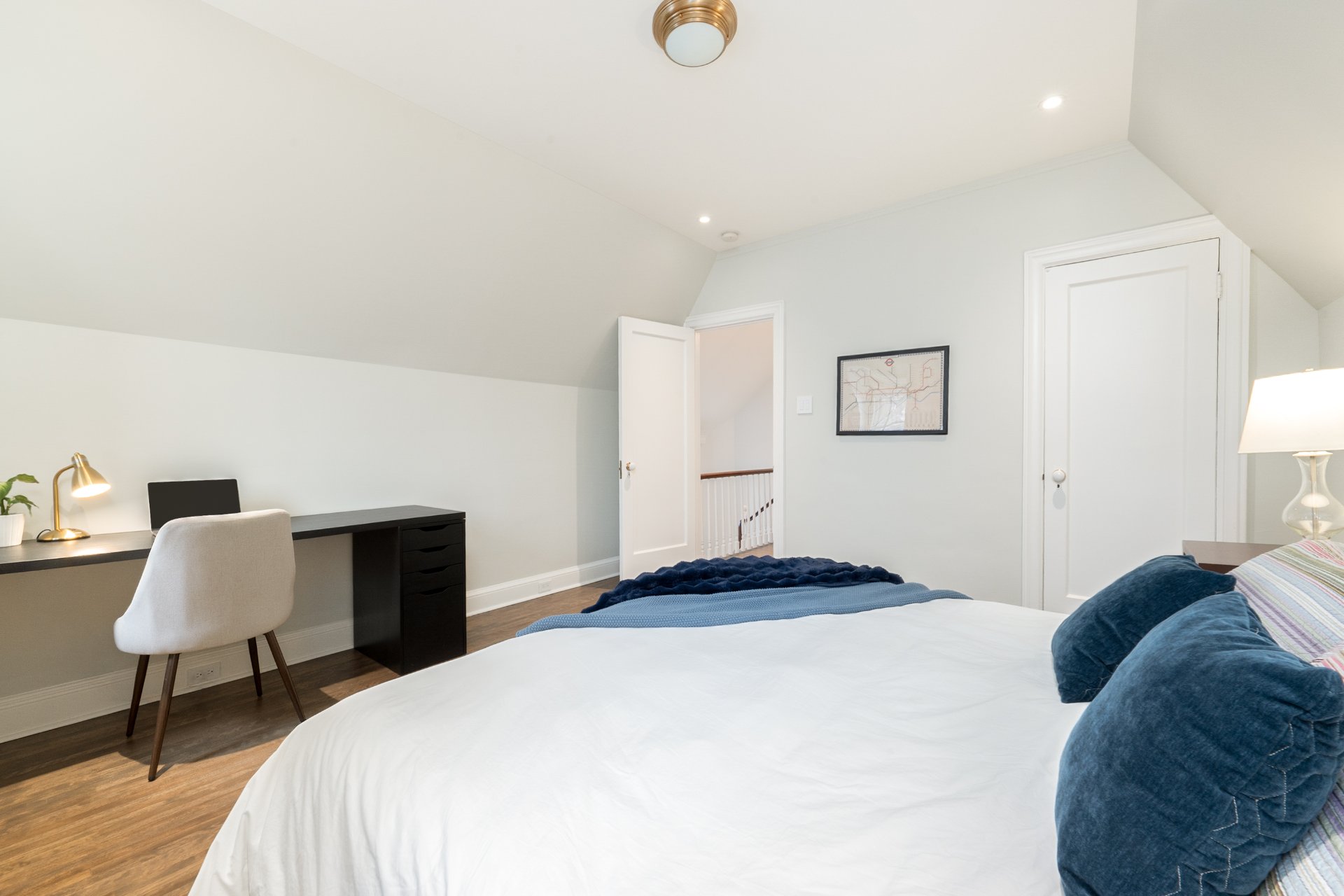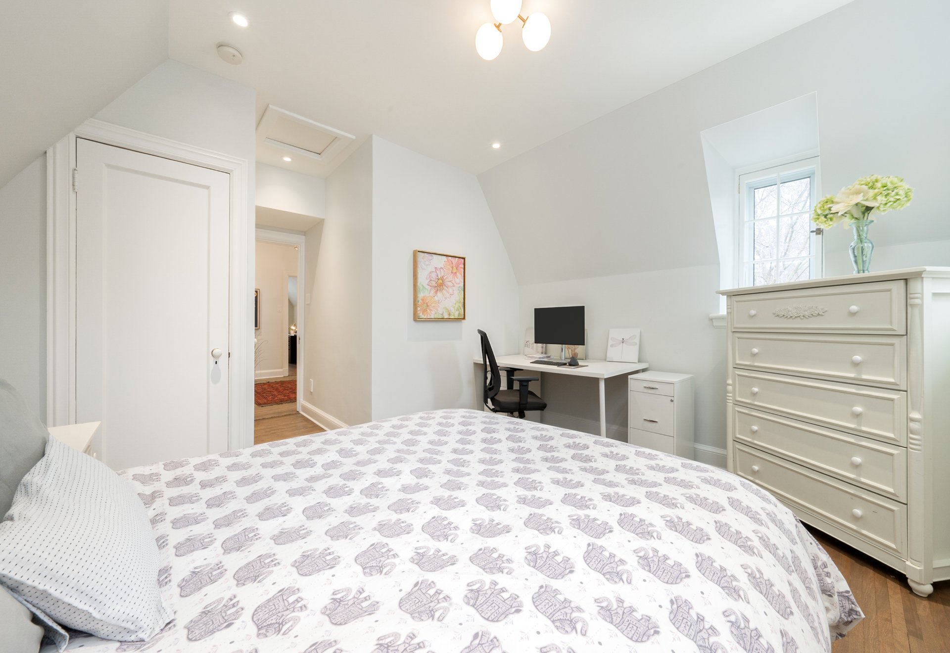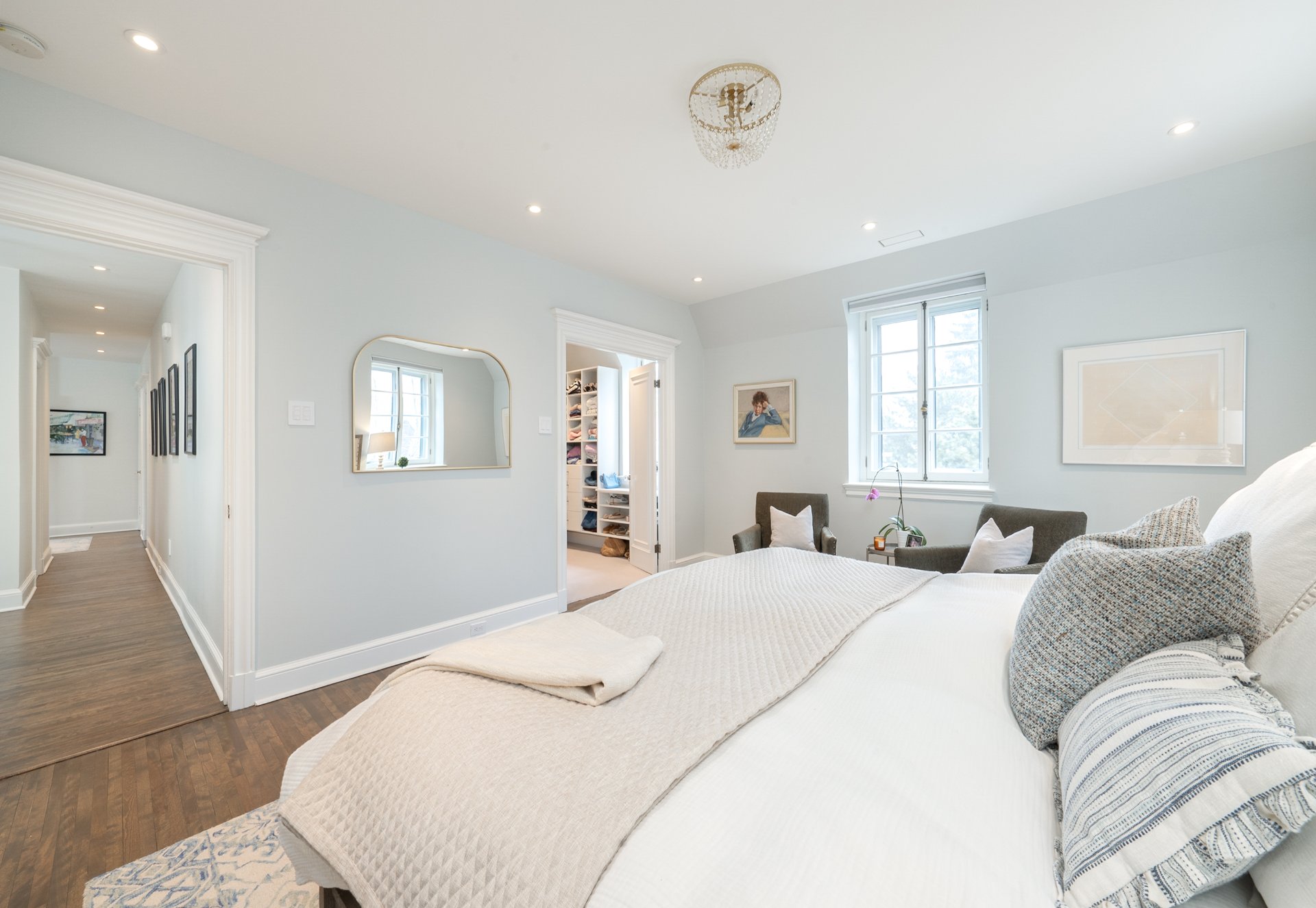 UPPER FLOOR-Spacious primary suite reconfigured to include a custom walk-in and ensuite with double vanity, tub and separate shower -Additional bedroom plus a distinct guest/teen zone with adjoining den -Open den and secondary living space offering flexibility for office or additional bedrooms -Access to a private balcony -Family bathroom with heated floors