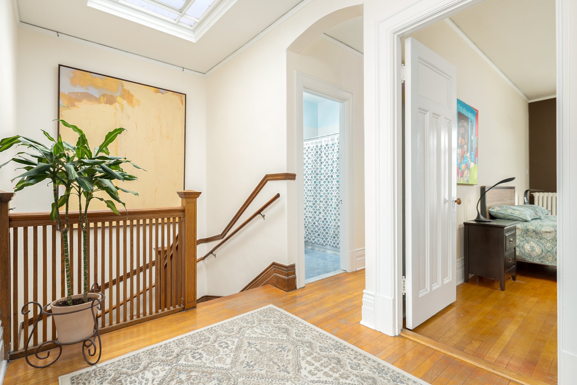 SECOND FLOOR (Ceiling height: 8'11")-Spacious primary bedroom -3 additional well-proportioned bedrooms-Skylight above staircase bringing natural light through the upper level-Full bathroom with additional skylight-Front and rear balconies