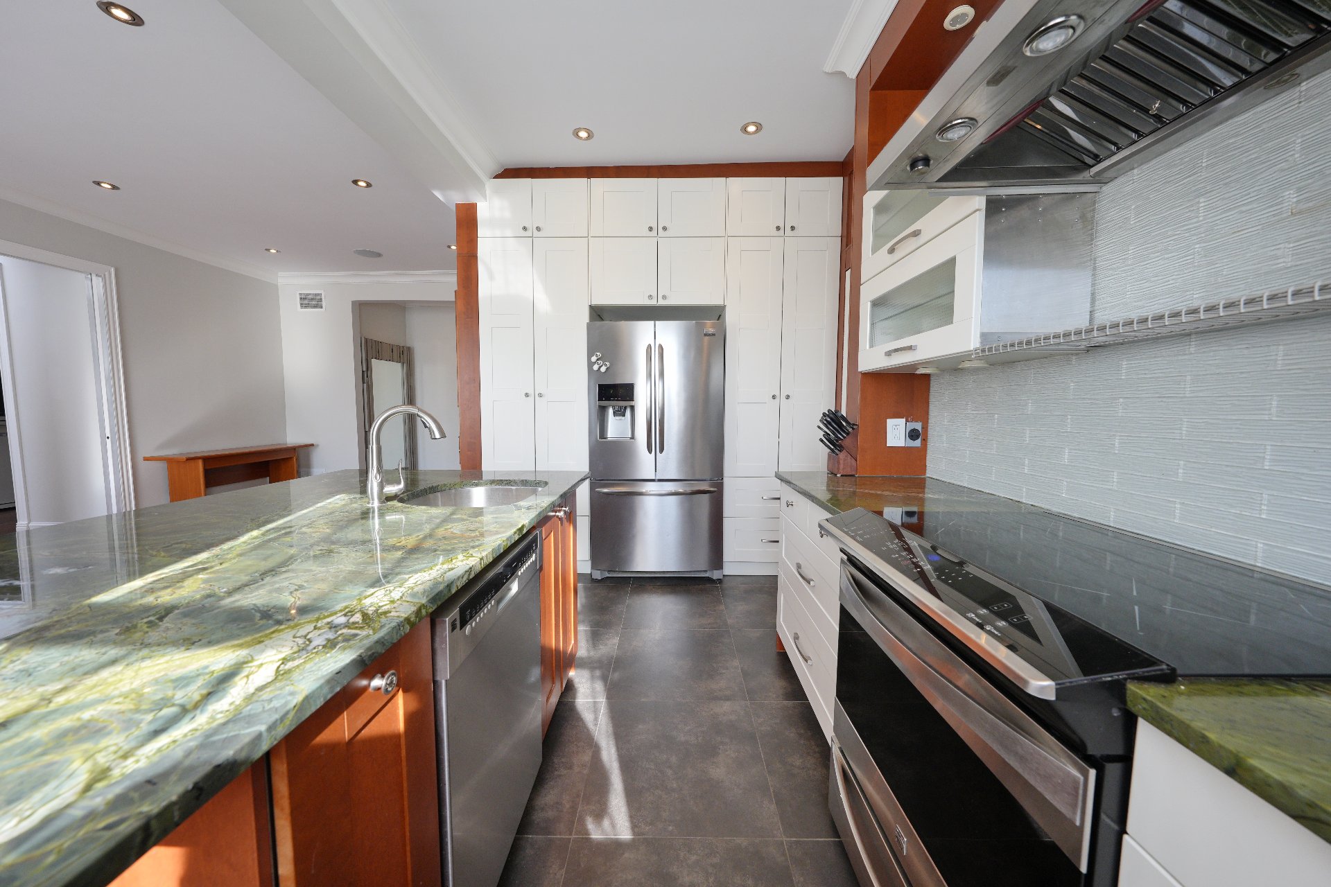 Elegant renovated condo in prime Westmount location offering 2 bedrooms, each with ensuite. Approx. 988 sq. ft. with high ceilings, Brazilian wood floors, open kitchen w/ heated floors, granite island & modern cabinetry. Sun-filled layout w/ skylight & SE exposure, spacious living/dining, flexible 3rd room. Central air circulation system with heating & AC capabilities. Exterior parking + locker, indoor garage available ($$). Well-maintained building with patio, updates & intercom. Steps to Greene Ave, cafés, metro, schools & downtown.