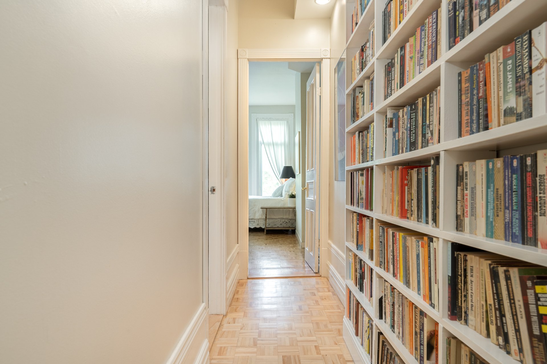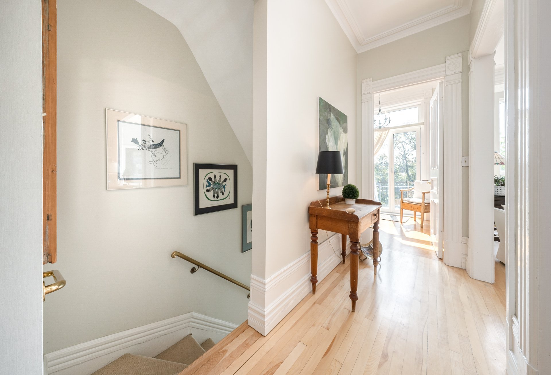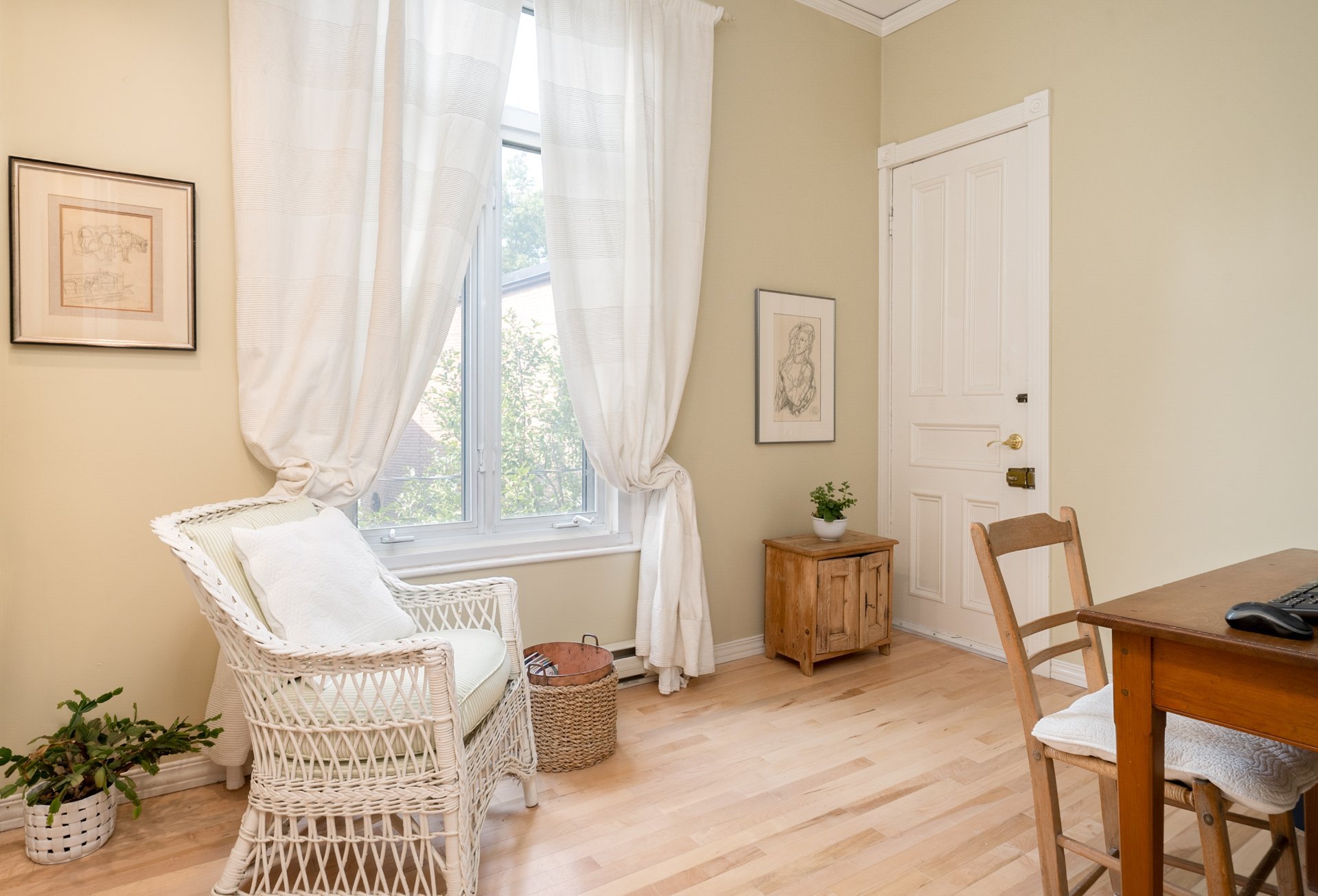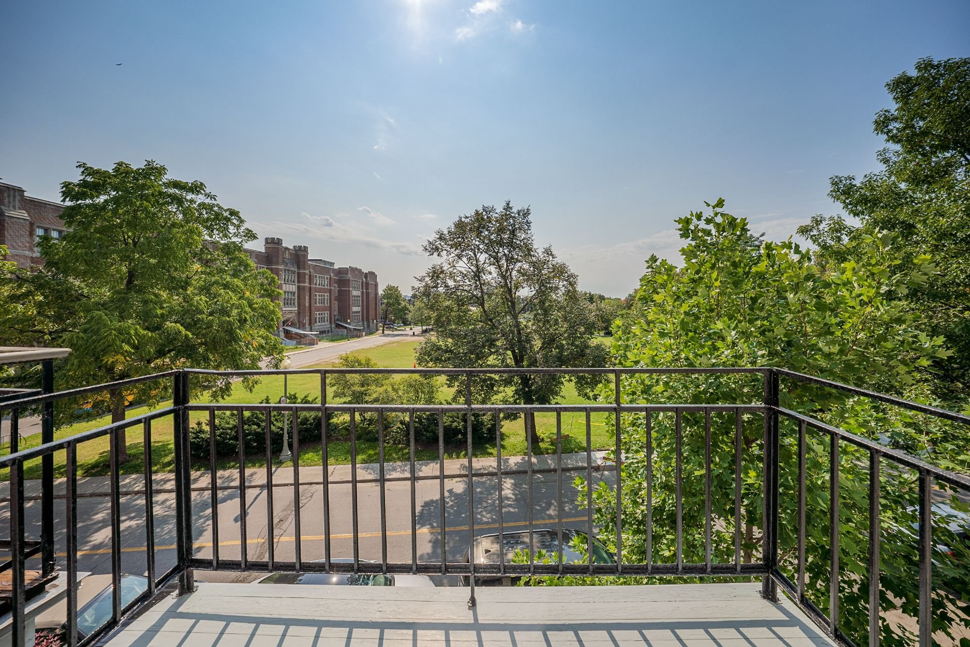 CONDO HIGHLIGHTS-1,651 SF of living space-Expansive main living area with two living rooms, featuring large windows, a fireplace, built-in bookshelves, crown moldings, and blond hardwood floors-Kitchen, adjacent to the living room, can be conveniently enclosed with French doors-Bright kitchen with a large window and charming breakfast nook-Dining room opens onto a side balcony-4 bedrooms, one with a private balcony overlooking the park-2 central bathrooms, one with a bathtub-Wall-mounted air conditioning -Condo fees: 203$/month