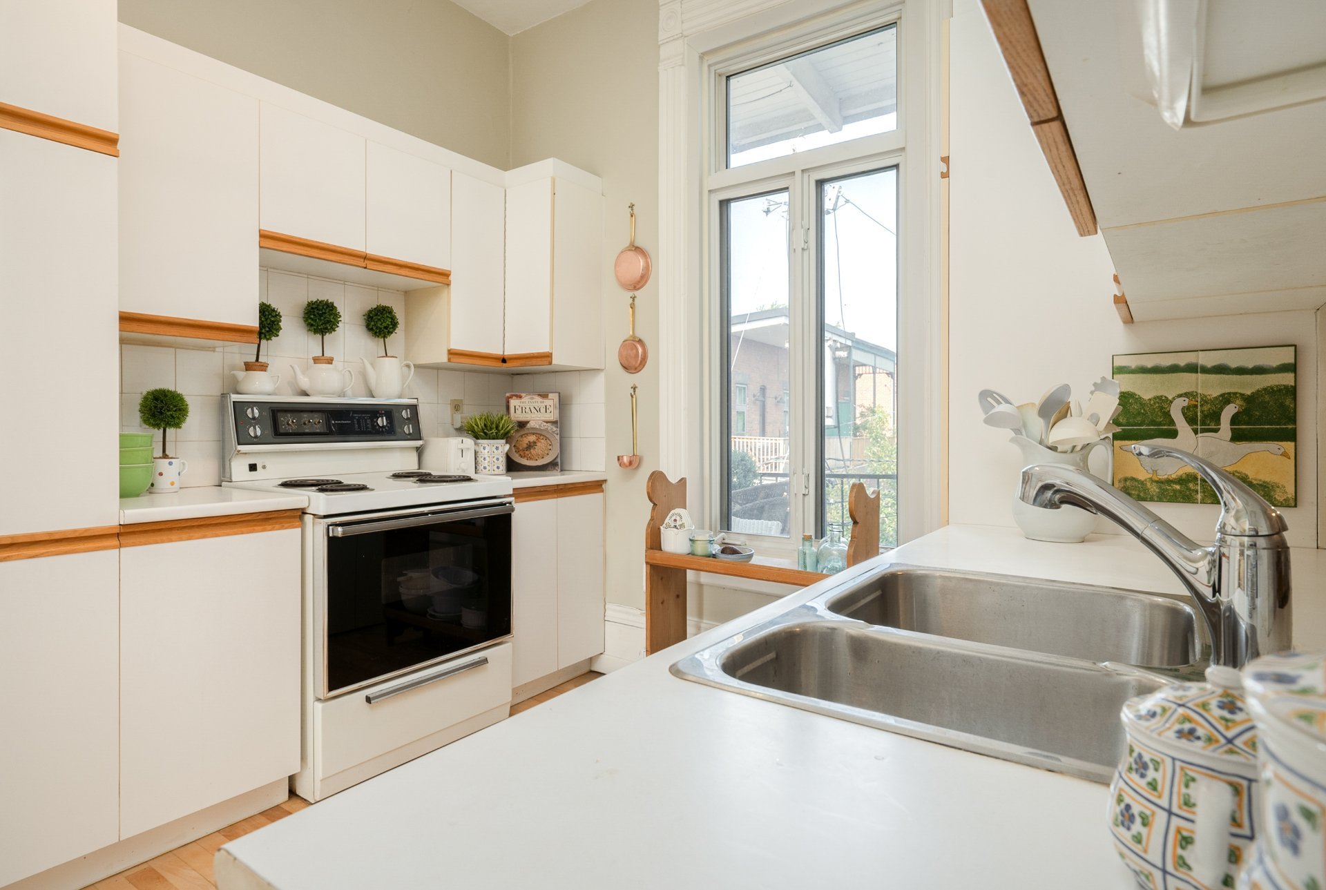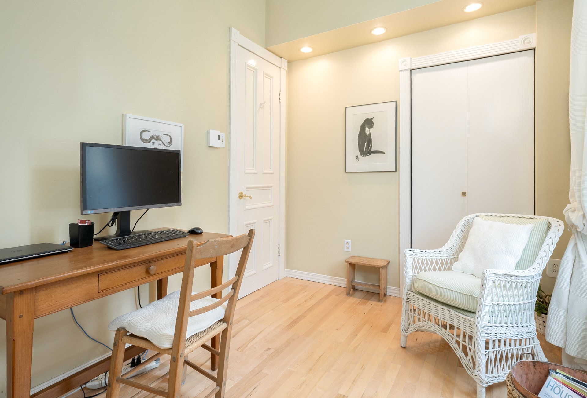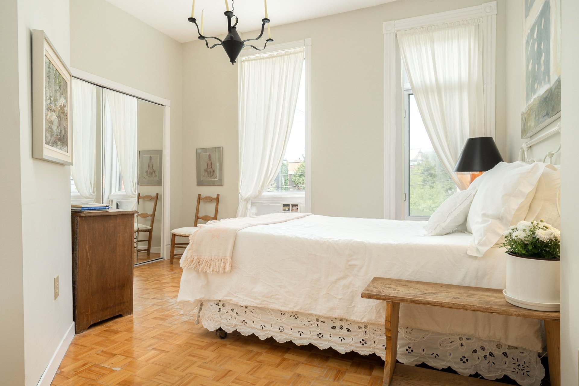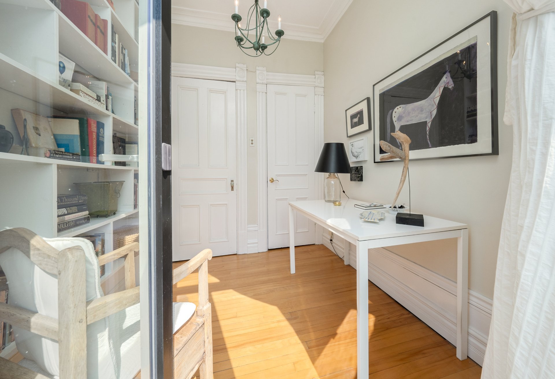 CONDO HIGHLIGHTS-1,651 SF of living space-Expansive main living area with two living rooms, featuring large windows, a fireplace, built-in bookshelves, crown moldings, and blond hardwood floors-Kitchen, adjacent to the living room, can be conveniently enclosed with French doors-Bright kitchen with a large window and charming breakfast nook-Dining room opens onto a side balcony-4 bedrooms, one with a private balcony overlooking the park-2 central bathrooms, one with a bathtub-Wall-mounted air conditioning -Condo fees: 203$/month