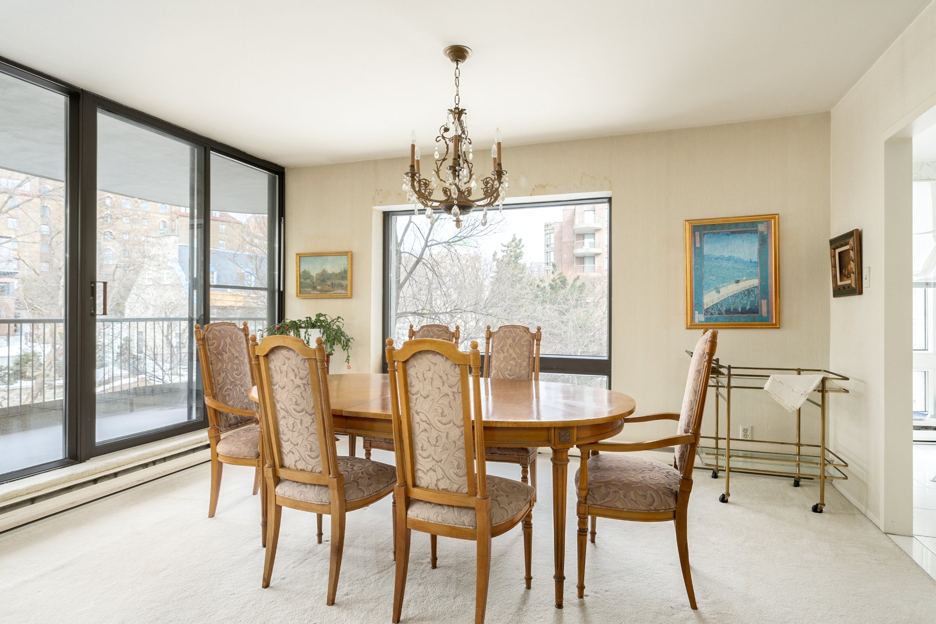 Perched on the 10th floor of the prestigious Le Fort de la Montagne, this expansive 1,977 sq.ft. unit offers generous proportions. A grand living and dining area opens to a balcony overlooking the treetops of Westmount and the Fort de la Montagne grounds. The layout features a spacious primary suite with walk-ins and ensuite, a second bedroom, family room and bright eat-in kitchen with bay window. Full-service building with exceptional amenities in one of Montreal's most sought-after locations, including two garage parking spaces.