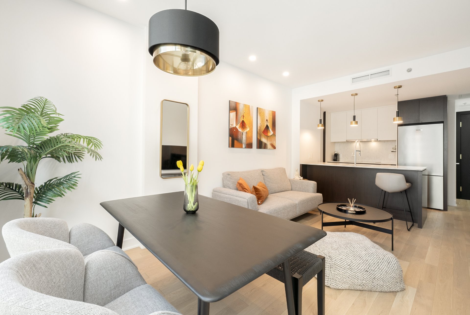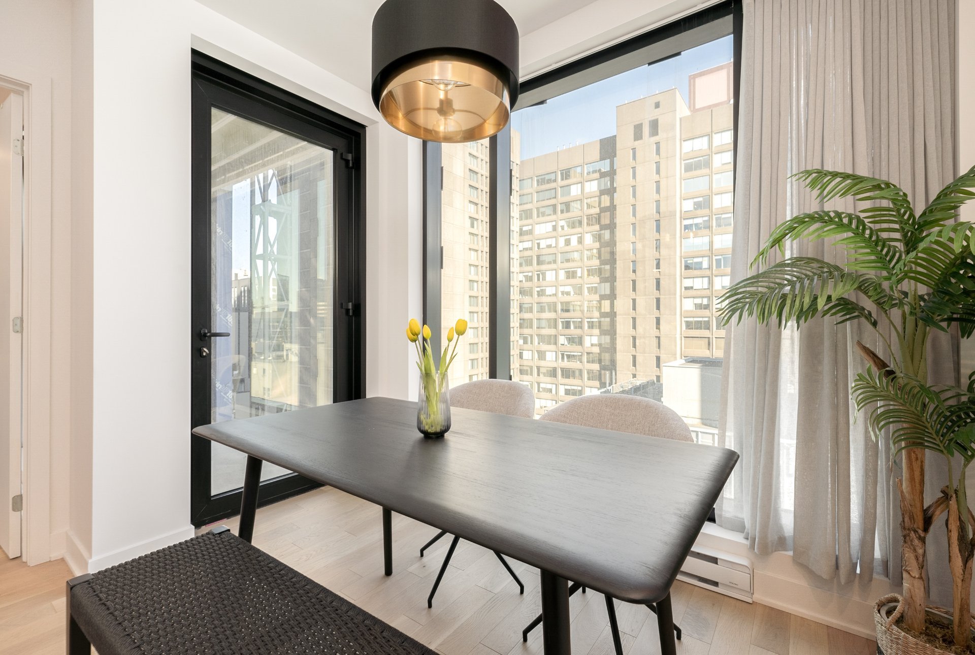 *Stylish 1-bedroom layout with an open-concept living and dining area, designed for comfort and elegance.*Newly furnished with tasteful décor, providing an elegant, move-in-ready living environment.*Access to a state-of-the-art fitness centre, perfect for maintaining an active lifestyle.*Located just steps away from Peel metro station, with easy access to the best of Montreal's shops, restaurants, and cultural institutions.