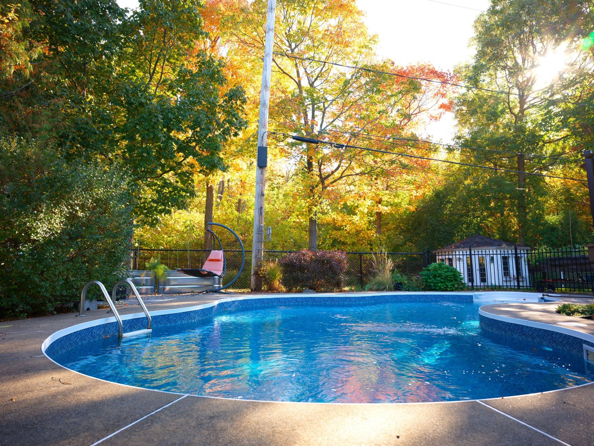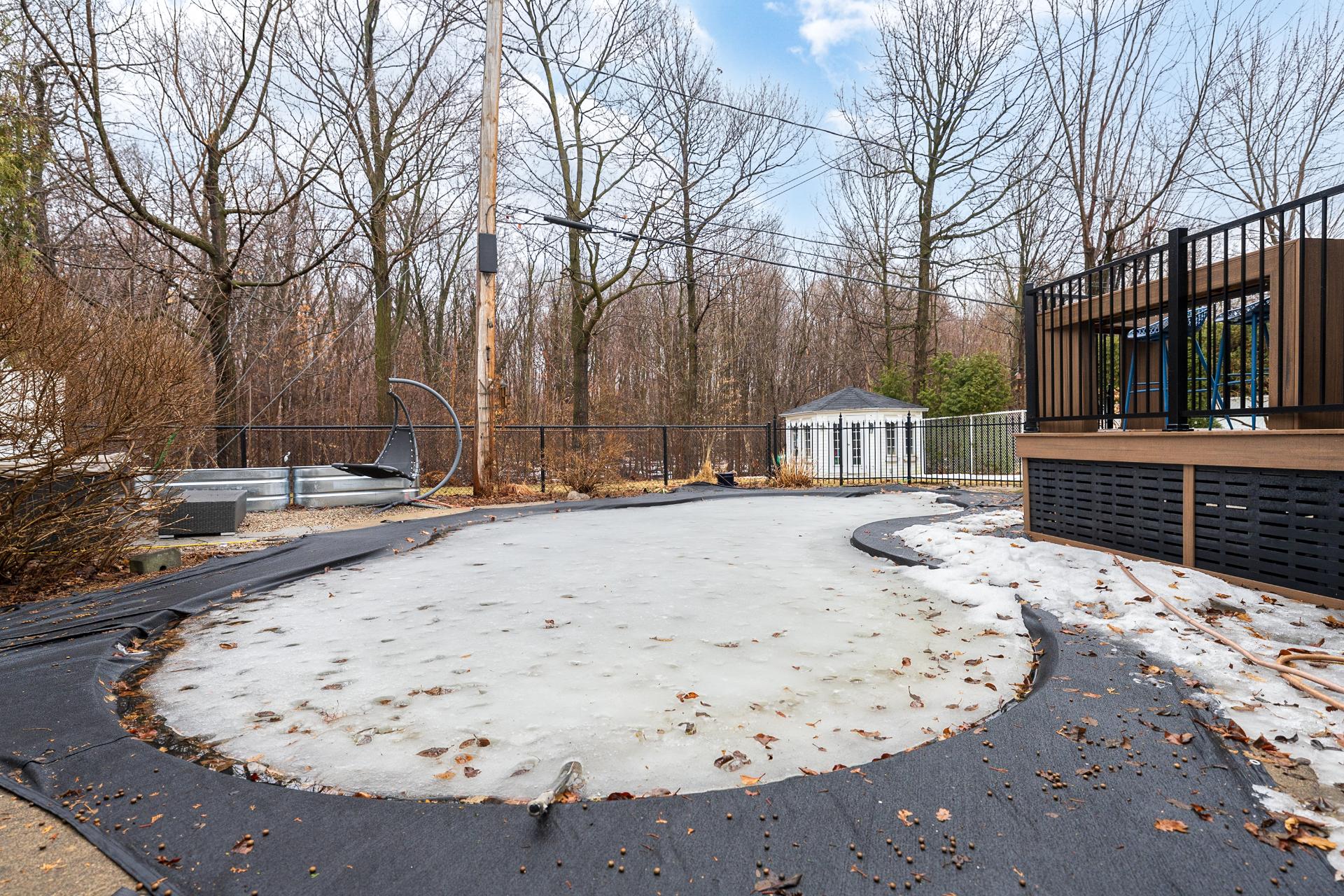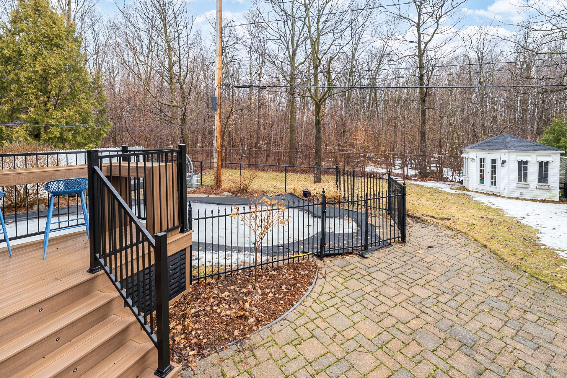 BACKYARD AND PARKING-Professionally landscaped backyard with in-ground pool-Expansive uni-stone terrace and composite deck, ideal for outdoor dining and entertaining-Private setting with no rear neighbour and no neighbour on one side-Expansion of the LAND through the acquisition of approximately 30 additional feet at the rear (2012), bordering the forest, further enhancing the sense of space and privacy-Driveway parking for multiple vehicles-Integrated garage with approx. 11'6" ceiling height, offering excellent storage or workspace potential