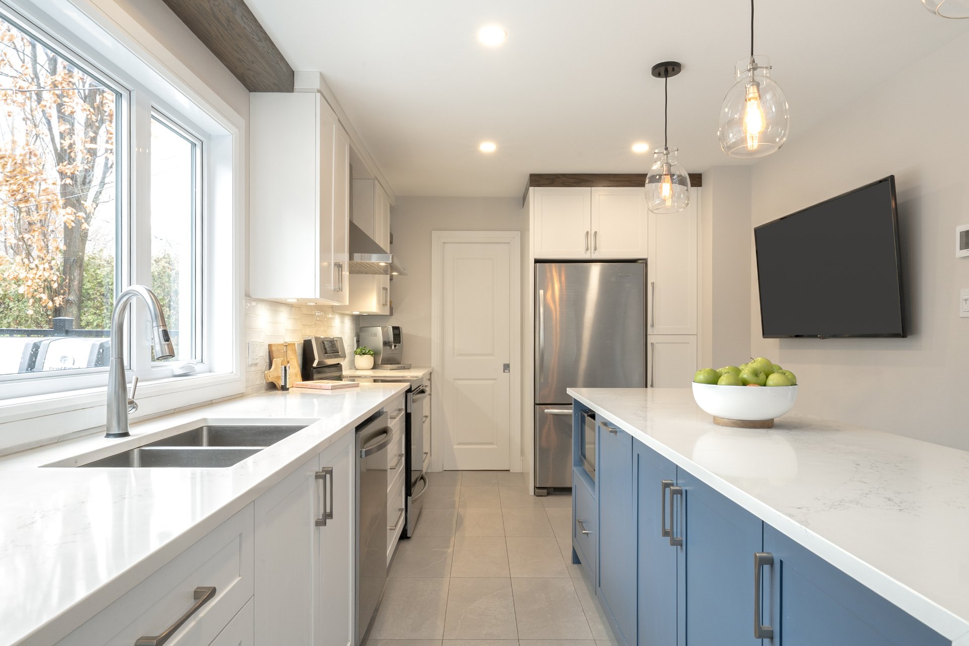 All furniture, TVs, artwork and personal belongings of the seller. BBQ, blue & white patio door curtains, outdoor table and four chairs with cushions, basement living room curtains (white and tan), wood framed mirror in upstairs bathroom, mirrored storage cabinet in garage, one large galvanized steel stock tank for gardenNeighbourhood: Laval (Sainte-Rose)