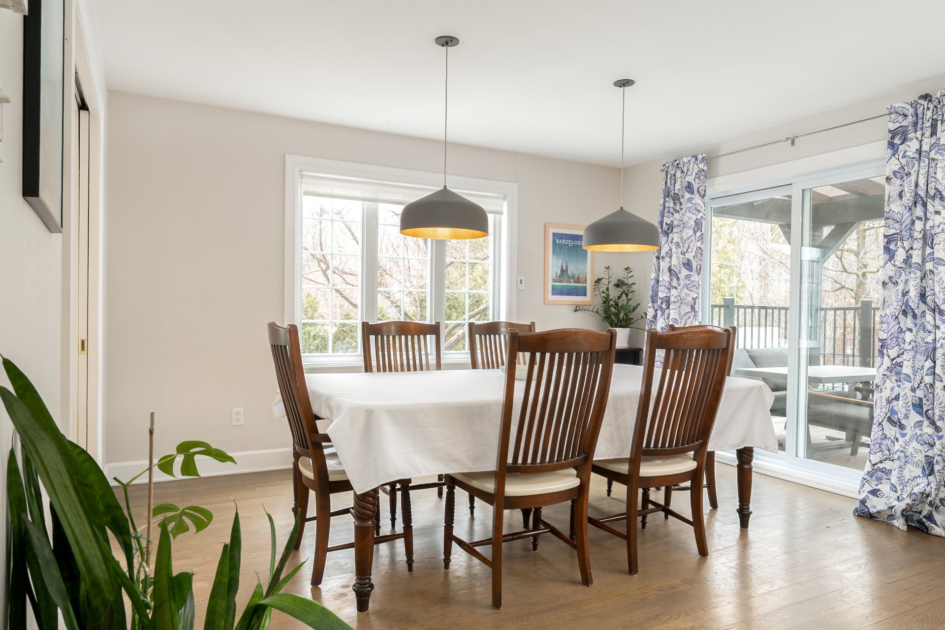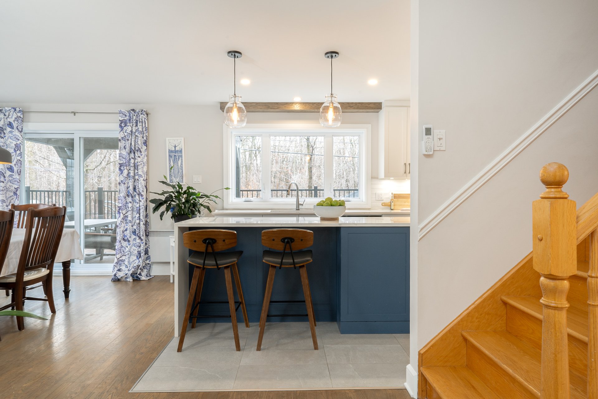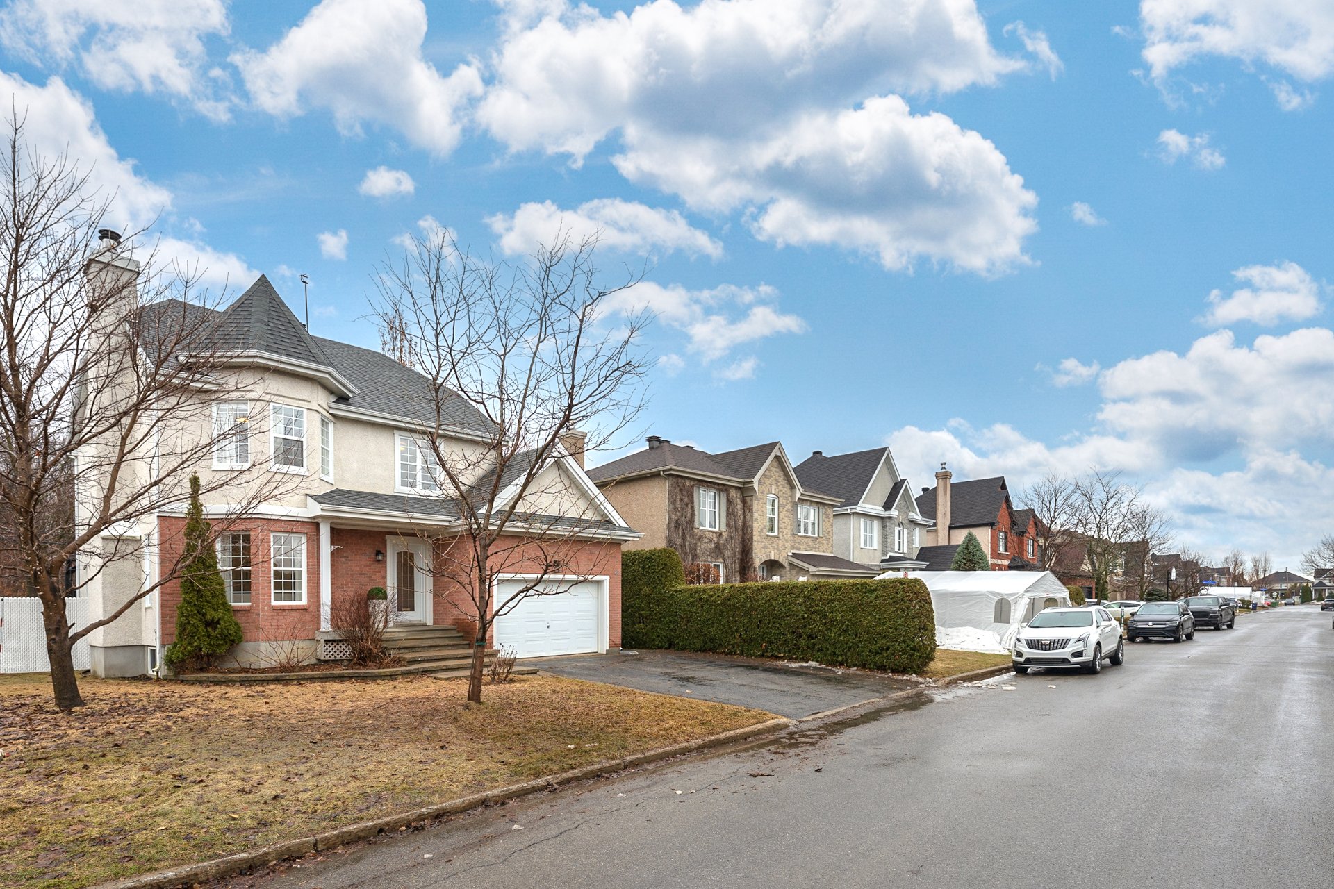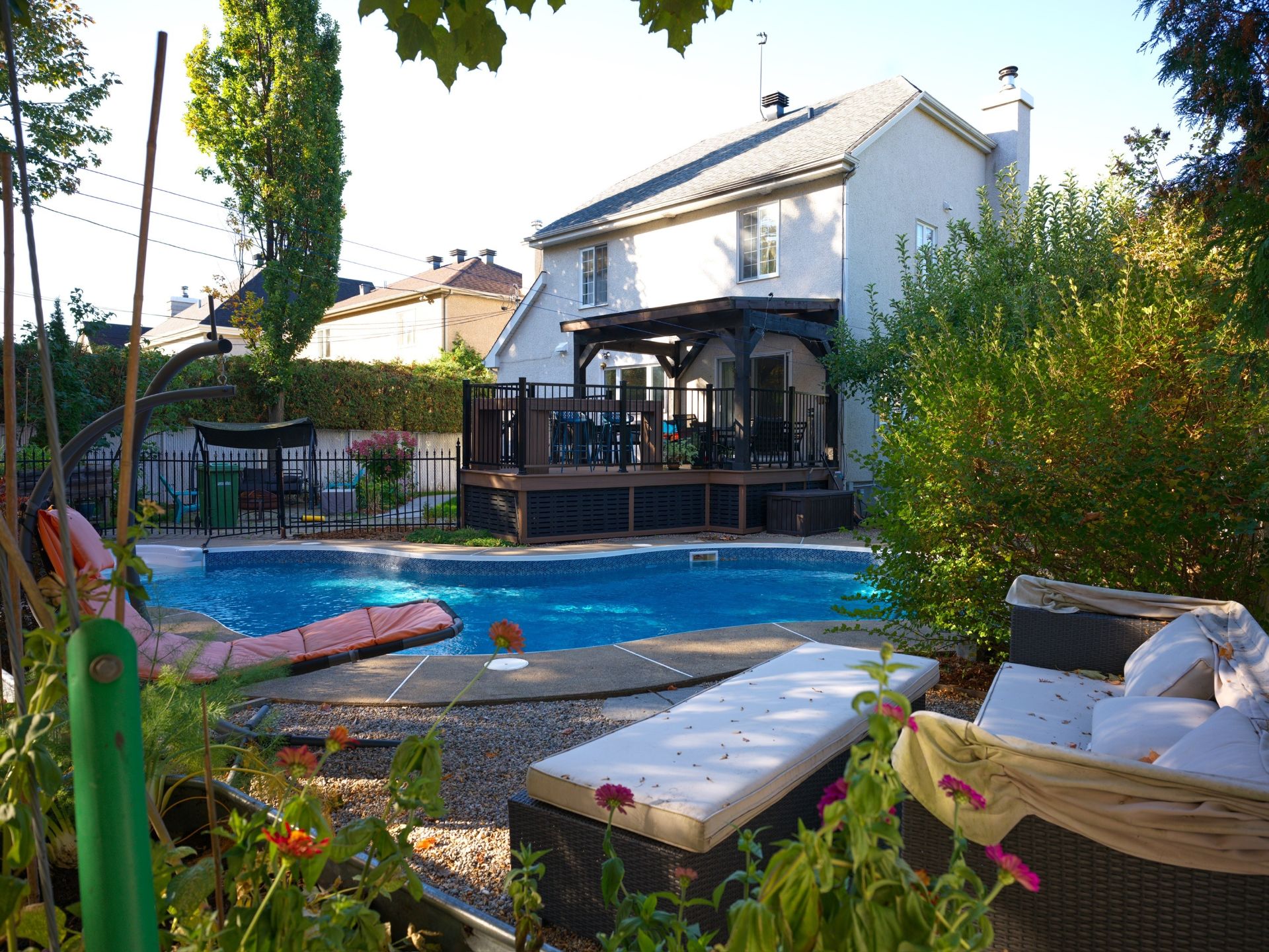 Set on a quiet street in Laval's sought-after Champfleury sector, this detached home offers a rare level of privacy with no rear neighbour and no neighbour on one side, both bordered by protected green space. The renovated kitchen anchors bright, functional living areas, while the upper floor features three bedrooms, including a spacious primary bedroom and a large family bathroom with soaker tub and separate shower. Finished basement with family room and 2 additional bedrooms. Landscaped backyard with inground heated salt water pool and expansive terrace. Minimal traffic enhances the peaceful setting.